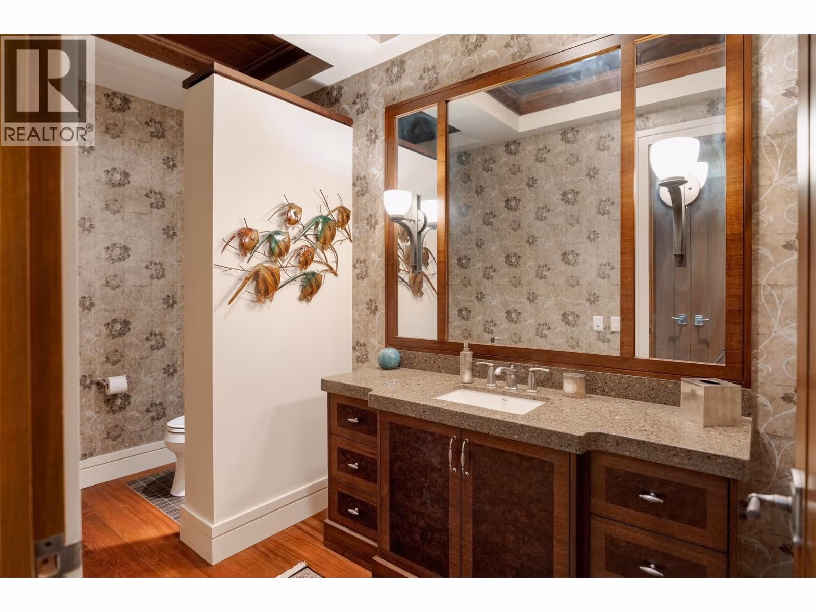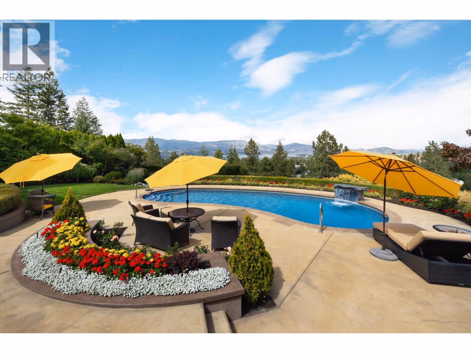 rchitectural masterpiece in the sought-after Upper Mission, where luxury meets nature in a tranquil, gated setting. This spectacular 1.2-acre property is a landmark residence seamlessly blending into its mature, park-like surroundings. With breathtaking views of the city and lake, this home offers timeless sophistication & serenity. From the moment you step inside, you’ll be captivated by the grand elegance. Soaring ceilings, from 20 to 22 ft, and expansive windows bathe the interior in natural light, highlighting the craftsmanship. The custom wood and rock detailing on the exterior is carried into the interior, creating a seamless connection. Inside, every detail has been meticulously crafted, from the Brazilian cherry hardwood floors & Italian porcelain tile to the wool carpets and walnut cabinetry. The gourmet kitchen is a chef’s dream, featuring 3 islands, professional appliances, and ample space for entertaining. The main floor primary retreat is a sanctuary of luxury, with an opulent ensuite & 2 walk-in closets. 3 add’l beds offer comfort and privacy for family & guests. This home is designed for entertainment and relaxation, boasting amenities such as a temp-controlled wine cellar, home theatre, expansive rec room, and a home gym. Outside, the resort-style backyard is a true oasis, featuring a tiered landscaping, a saltwater pool w/ a water feature, seating areas, a BBQ area, grassy play spaces, fenced dog run, and private courtyards. This residence is a rare find. (id:58842)