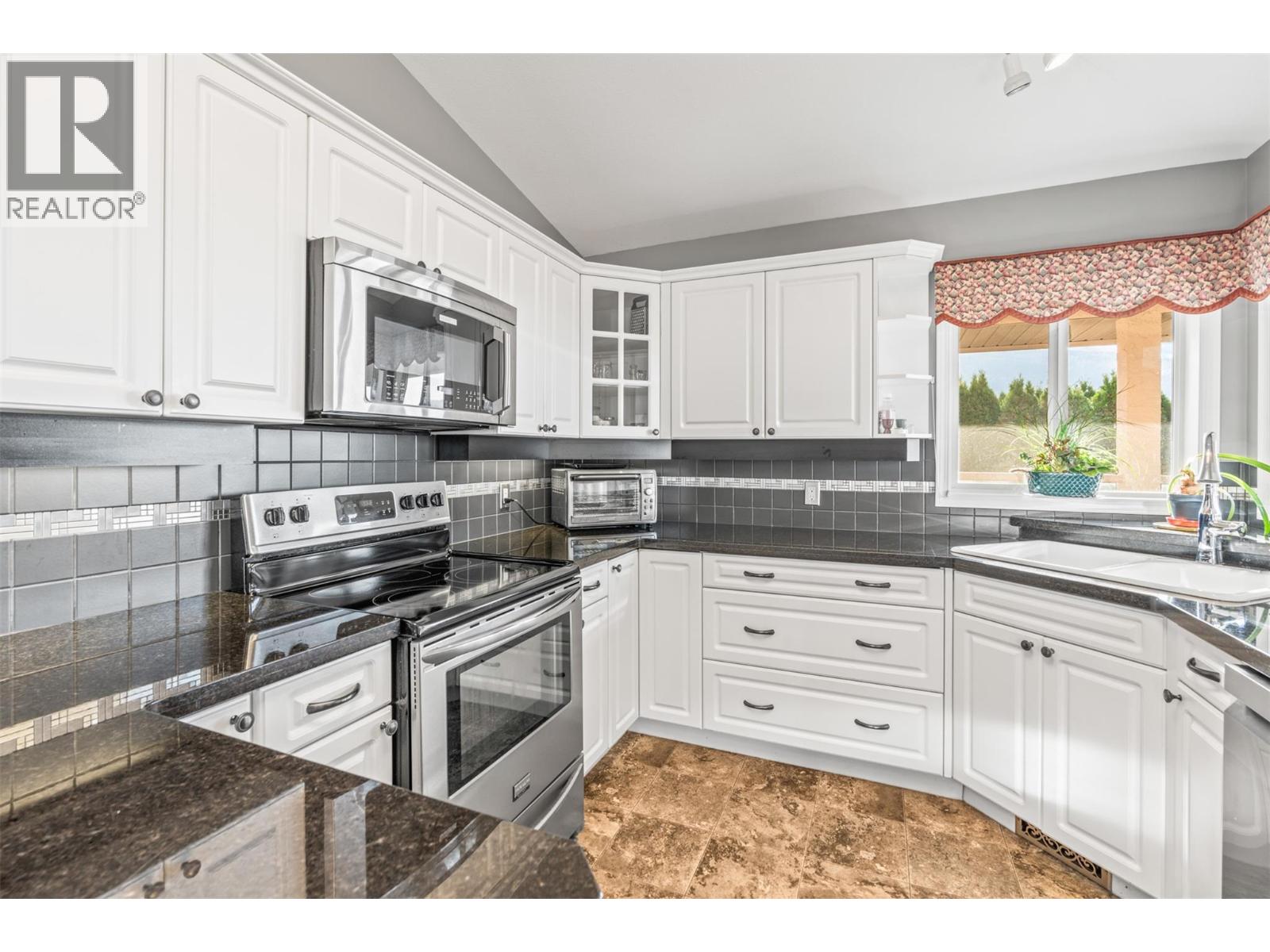 Tucked away on a peaceful cul-de-sac in the highly sought-after Foothills, this beautifully cared-for 3-bedroom, 3-bathroom home captures the essence of Okanagan living with breathtaking, panoramic views stretching over rolling farmland, the city lights, and both Okanagan and Kalamalka Lakes in the distance. Step inside and experience effortless one-level living with an open-concept main floor that frames those incredible views from the kitchen, dining, and living areas or enjoy them from the spacious covered deck. The inviting primary suite offers a touch of luxury with its jetted tub and walk-in closet. A second bedroom, full bath, laundry, and double garage complete the main level. Downstairs, the bright walkout basement has endless possibilities: a huge recreation room with a cozy fireplace, perfect for movie nights, a pool table, or family gatherings, along with a guest bedroom, full bath, and large hobby room that can easily serve as a fourth bedroom without compromising your hobby space. Three storage rooms and ample level parking including space for your RV or boat add to the home’s practicality. Enjoy the best of Okanagan living with SilverStar Ski Resort just 20 minutes away, Vernon’s amenities only 10 minutes down the road, and nearby access to Grey Canal & BX Creek Trails for hiking. Families will appreciate the proximity to BX Elementary. Discover where scenic beauty meets everyday convenience and make this Foothills gem your forever home. Furnace 2025, HWT 2020 (id:58842)