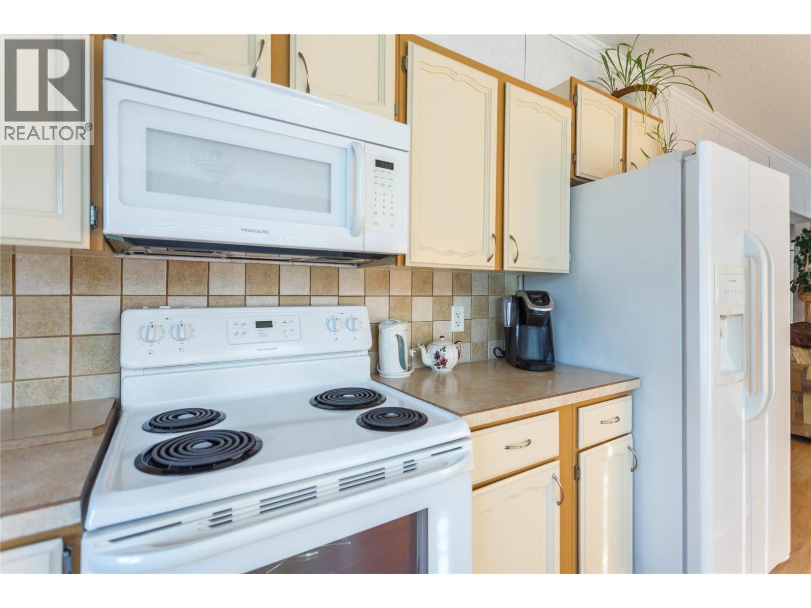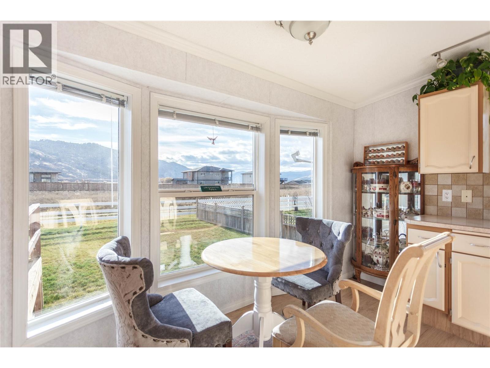 Welcome to Country Lakeshore Estates — a rare double-wide manufactured home that’s turned the other way compared to most in the park, facing the mountains instead of your neighbour’s window. Step outside (or just peek through the windows) and take in wide, unobstructed hillside views — entirely yours to enjoy. Inside, the bright open-plan living space makes every morning feel like a spotlight on the mountains. The kitchen? Tons of cupboards — finally, room for all your kitchen gadgets and maybe even that collection of “just-in-case” coffee mugs. The primary bedroom boasts hillside views, a walk-in closet, and a private door straight onto the deck — coffee in hand, shoes optional. The second bedroom has a generous double closet, and the spacious den is all yours to make an office, craft cave, or guest room. Laundry and storage are conveniently off the entry — because functional spaces can be smart and satisfying. Outdoors, the large deck is your launchpad for morning coffee, sunset BBQs, or simply staring at the mountains like it’s a full-time hobby. And Okanagan Lake? Just a very short walk — or an even shorter jog — away. Quick dips, long swims, or spontaneous paddleboarding are all on the menu. Parking? Tons. Extra space between homes? Check. Room for trucks, toys, and visiting friends? Absolutely. Mountain views, space to breathe, lake access within a minute’s notice, and a layout that just makes sense. This is the one that stands out — in the right direction. (id:58842)