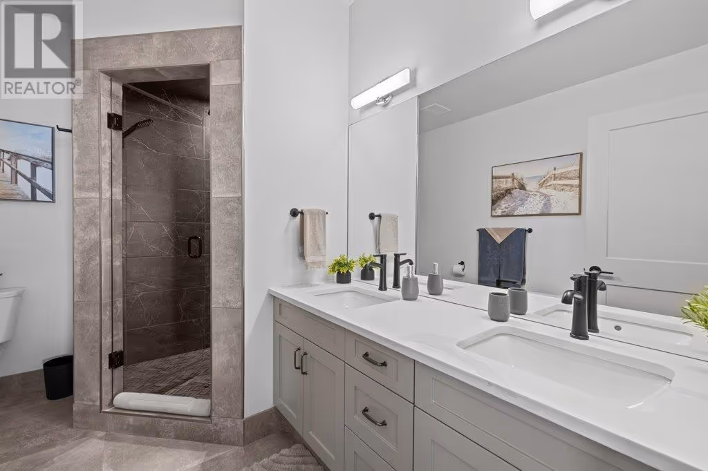 Spacious 3,420 sq. ft. grade-level entry home with a 1-bedroom legal suite, oversized garage and room in the backyard for a pool. The main floor features an open-concept living room with a cozy gas fireplace and access to a covered patio off the large, family-friendly kitchen with a work island and plenty of storage.. The primary bedroom includes a walk-in closet and 5-piece ensuite with double vanity, soaker tub, and separate shower. Two more bedrooms and a full bathroom, a convenient powder room and laundry area complete the main living space. Downstairs offers a rec room, additional bedroom, and full bath for the main house, plus an 845 sq. ft. legal suite with its own laundry and entrance—ideal for rental income or extended family. (id:58842)