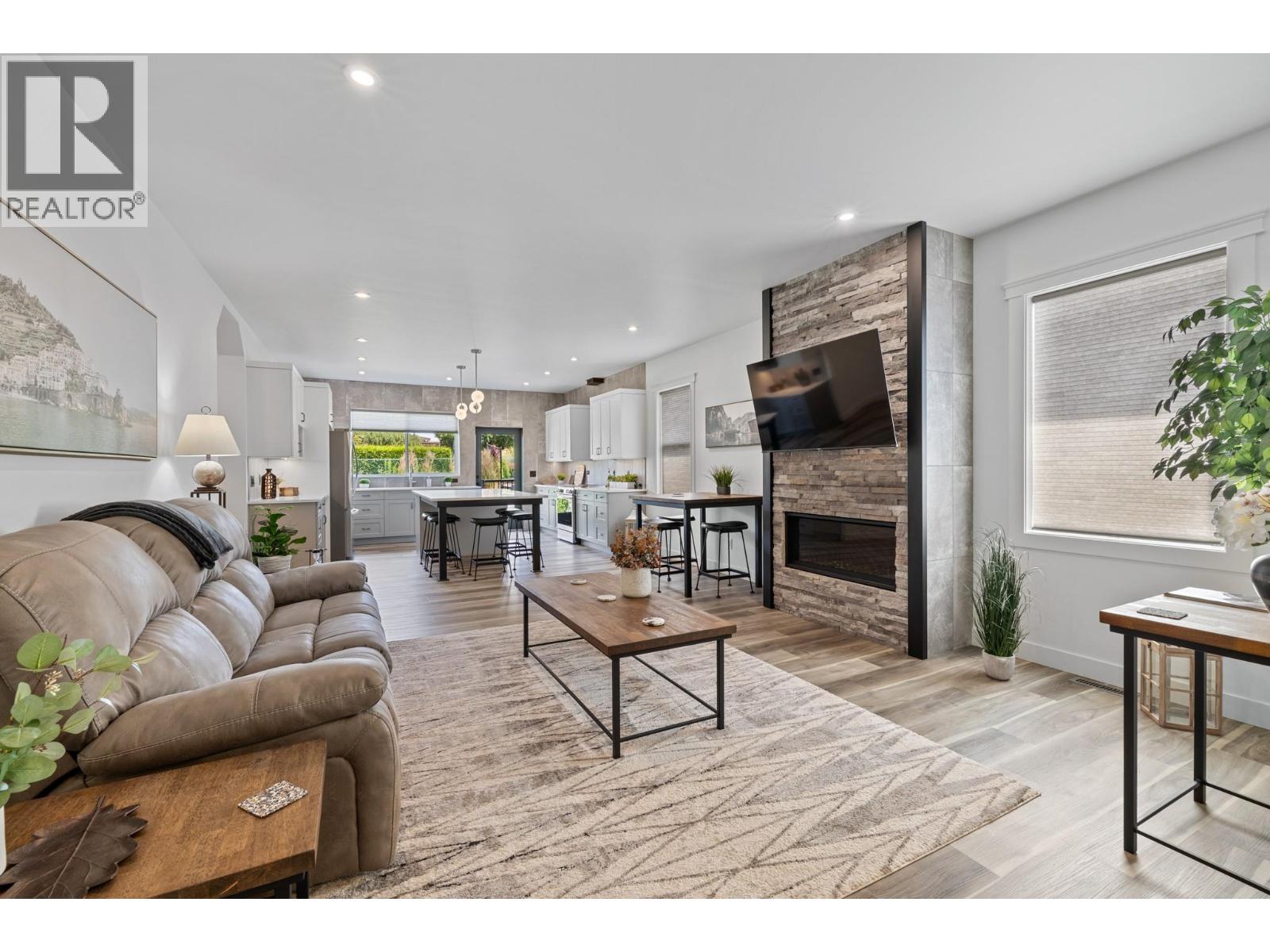 Perched in the highly sought-after Lakeview Heights neighbourhood, this home offers an elevated position with beautiful lake views, quick access to town & exceptional garage space—an ideal combination for modern Okanagan living. With 3,420 sq. ft. of thoughtfully designed space, this home delivers outstanding versatility, including a 1-bedroom legal suite, an oversized garage & a backyard with room for a pool. The main level is bright & welcoming, featuring an open-concept living area anchored by a cozy gas fireplace & seamless access to the backyard & covered patio—perfect for indoor-outdoor entertaining. The spacious, family-friendly kitchen is designed for gathering, complete with a large work island, ample cabinetry & generous storage. The primary bedroom offers a private retreat with a walk-in closet & a luxurious 5-piece ensuite showcasing a double vanity, soaker tub & separate tiled shower. Two additional bedrooms, a full bathroom, a convenient powder room & laundry complete the main floor. Downstairs, the lower level includes a rec room, an additional bedroom & a full bathroom for the main home, along with a self-contained 845 sq. ft. legal suite featuring its own entrance & laundry—ideal for extended family or excellent rental income potential. Set in a prime Lakeview Heights location just minutes to shopping, schools, wineries, beaches and downtown West Kelowna, this home delivers elevated views, everyday convenience and space to grow—all in one exceptional package. (id:58842)