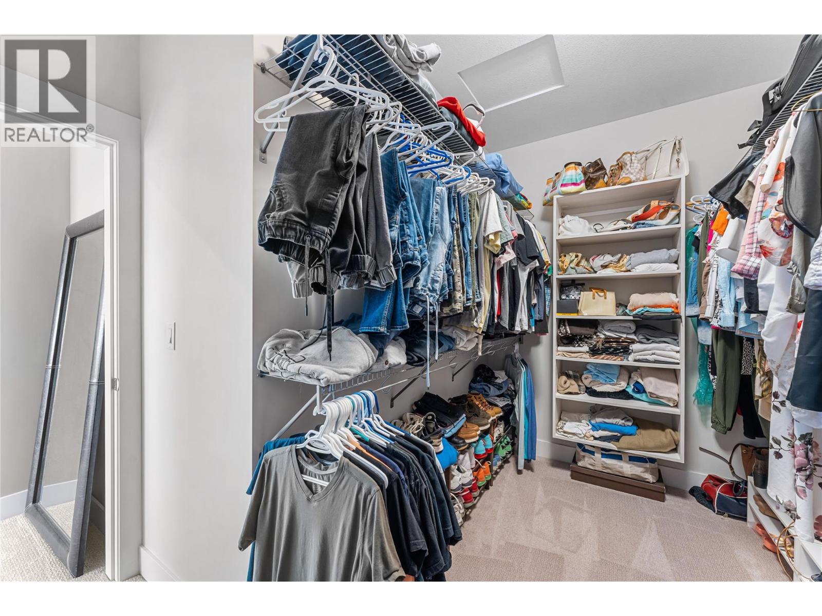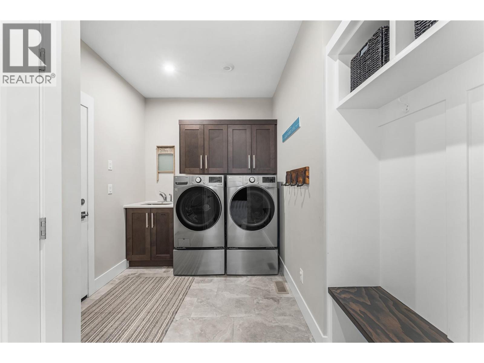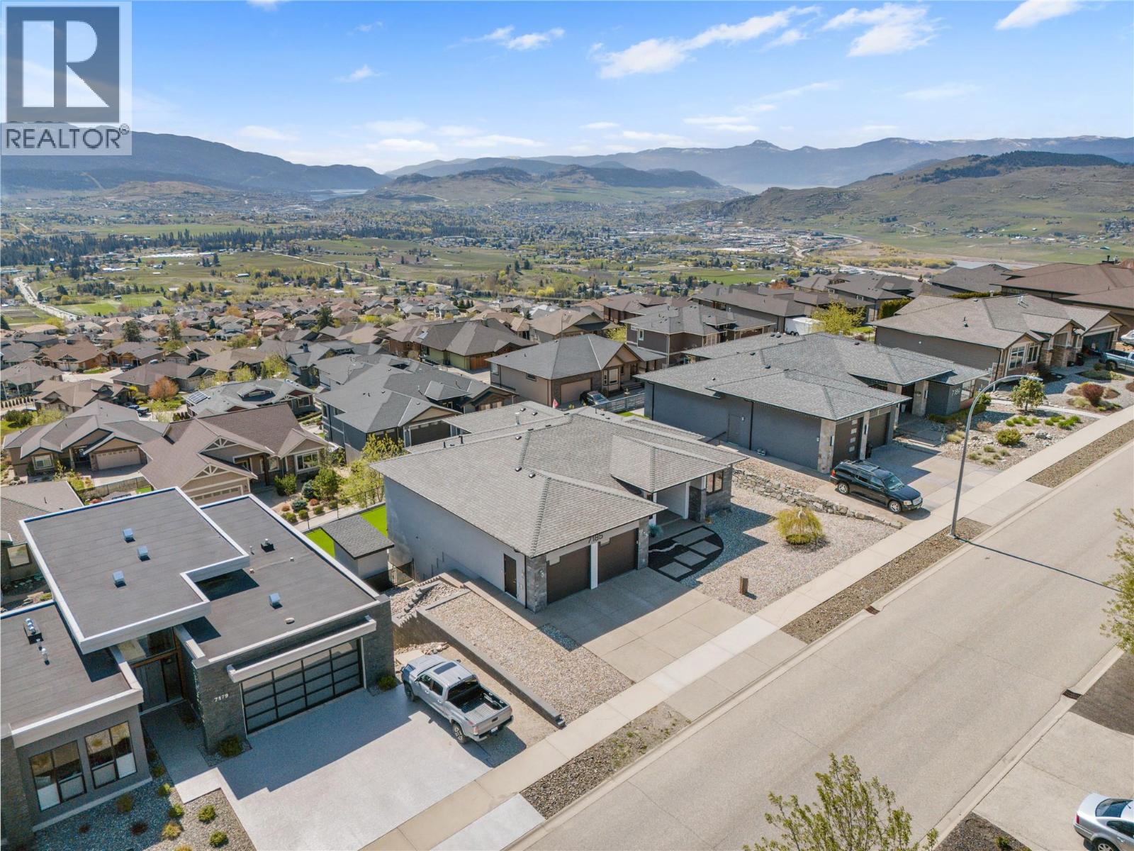 What most people envision for their dream Okanagan lifestyle; this contemporary home is designed to take full advantage of its elevated setting, with striking views of the surrounding mountains, lakes, and valley. The main floor features an open, airy layout with 11-foot ceilings, expansive windows, and direct access to a large covered deck ideal for morning coffee or maybe an evening glass of wine from a local Okanagan winery. The kitchen blends form and function with quartz countertops, stainless steel appliances, and clean-lined maple cabinetry. The primary bedroom offers a peaceful retreat with a walk-in closet and ensuite, complete with a freestanding soaker tub and custom tiled shower. An oversized second bedroom, a versatile den or third bedroom, and a well-appointed laundry room with built-in bench and storage round out the main level. Downstairs, the walk-out lower level with 10-foot ceilings provides exceptional flexibility, featuring a media room, games area, gym, wet bar, additional bedroom and spa inspired full bathroom. Outdoors, the fully automated saltwater pool with new liner and safety cover is paired with low-maintenance Synlawn turf and a custom storage shed. An oversized double garage and generous extra parking accommodate vehicles, trailers, boats, or RVs. You can be on the ski hill, hiking trails, golf course or lake all within a short drive from home. (id:58842)