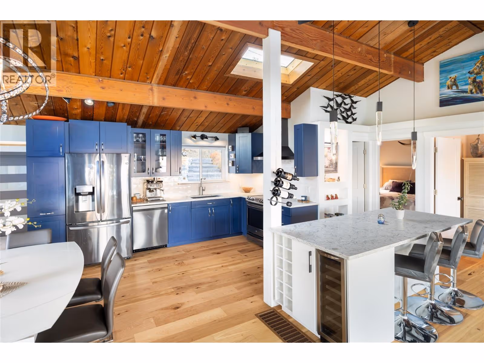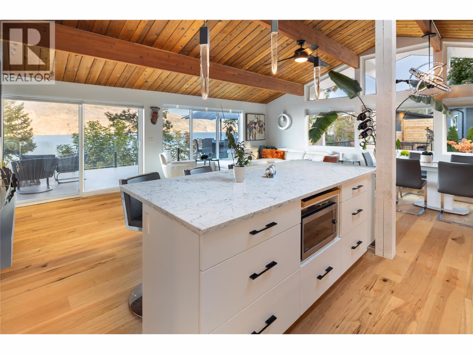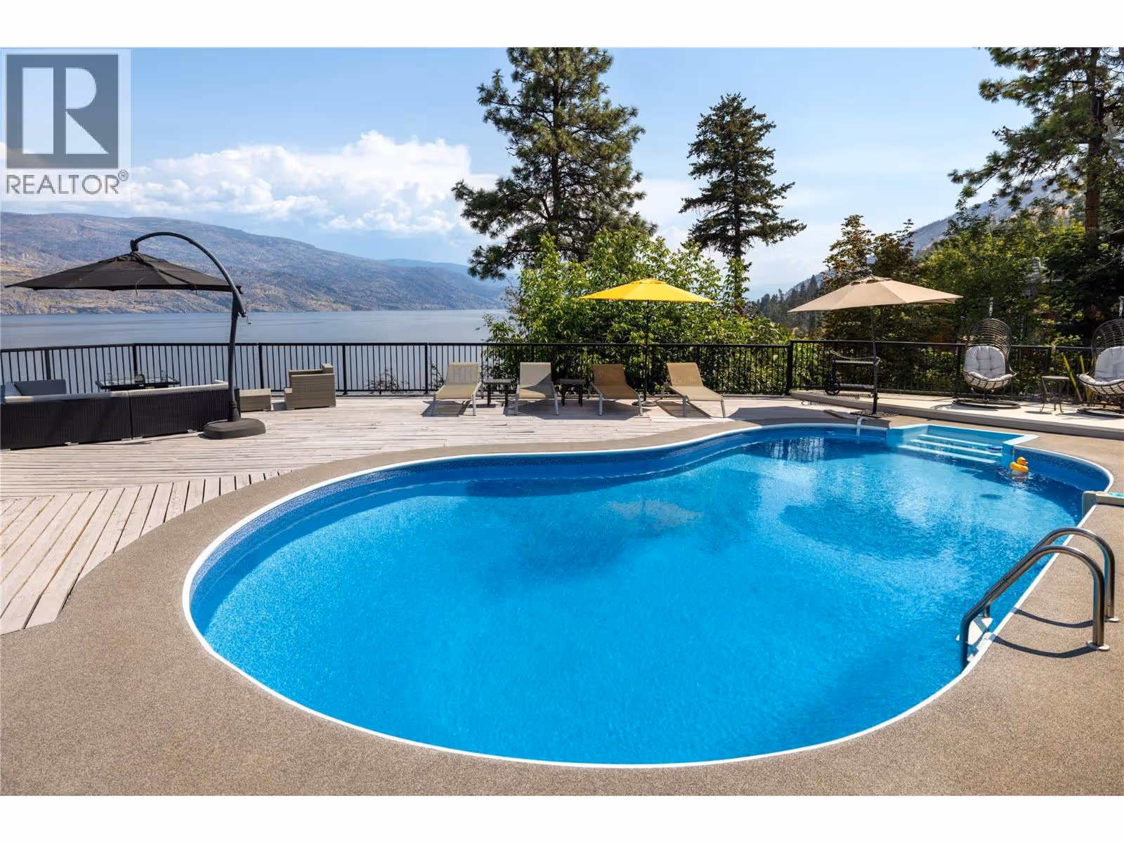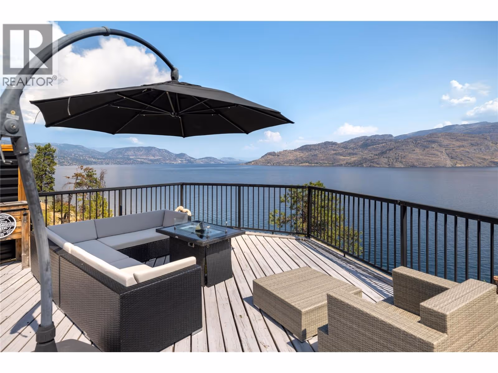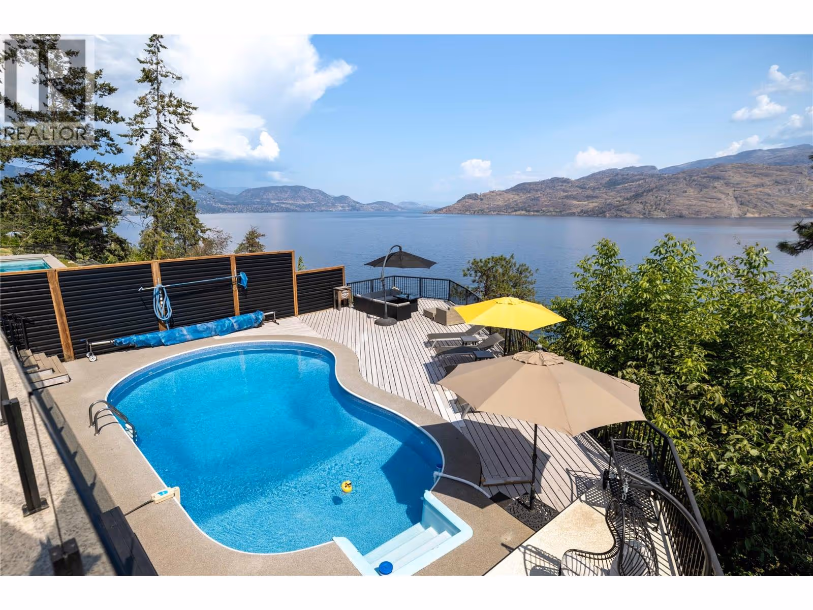 This exquisite lakeshore home offers approximately 66 feet of prime waterfront, delivering the perfect blend of serenity & luxury. Thoughtfully renovated to the highest standard, this residence captures the essence of the Okanagan lifestyle with unmatched lake views, multiple outdoor living spaces & a private tram providing effortless access to the water and brand new dock. Inside, an open-concept floor plan is bathed in natural light from expansive windows, highlighting vaulted ceilings, exposed wood beams & high-end finishes. The converted garage has transformed this home into a 3-bedroom retreat, ensuring ample space for family & guests. The primary suite is a true sanctuary, featuring a spacious closet, a private ensuite & direct access to the upper deck, offering panoramic lake views. Step outside & enjoy two expansive decks designed for entertaining, a sparkling pool overlooking the water & a beautifully landscaped setting that enhances the home's natural surroundings. Whether you're lounging in the sun, taking a refreshing dip, or enjoying a quiet evening under the stars, this property offers a lifestyle of pure relaxation & indulgence. Despite its peaceful, out-of-town feel, this exceptional home is just a 4-minute drive to the heart of Peachland, ensuring the perfect balance of privacy & convenience. Whether you're looking for a year-round residence or a luxury vacation retreat, this lakeshore property is a rare opportunity to own a piece of Okanagan paradise. (id:58842)