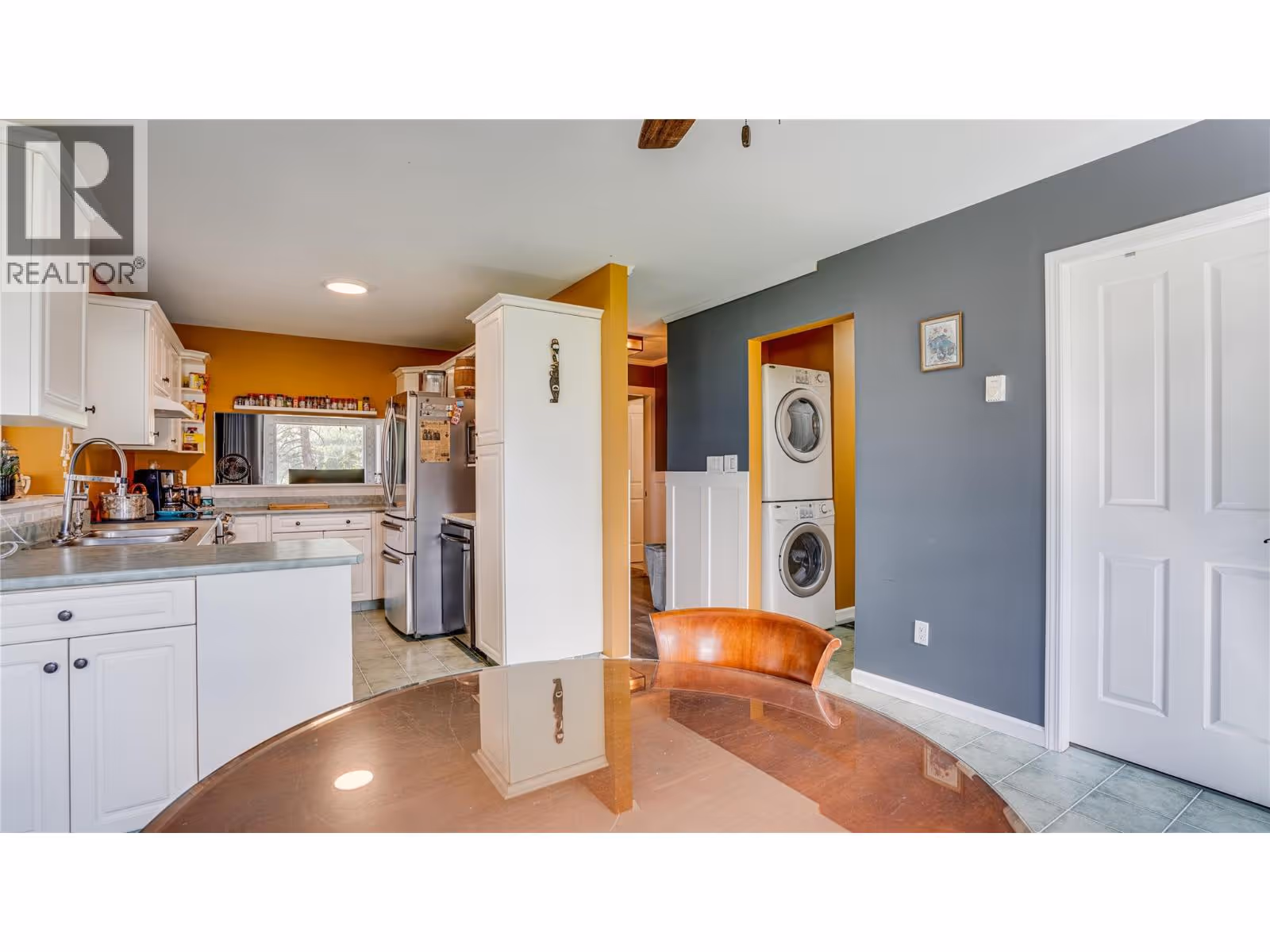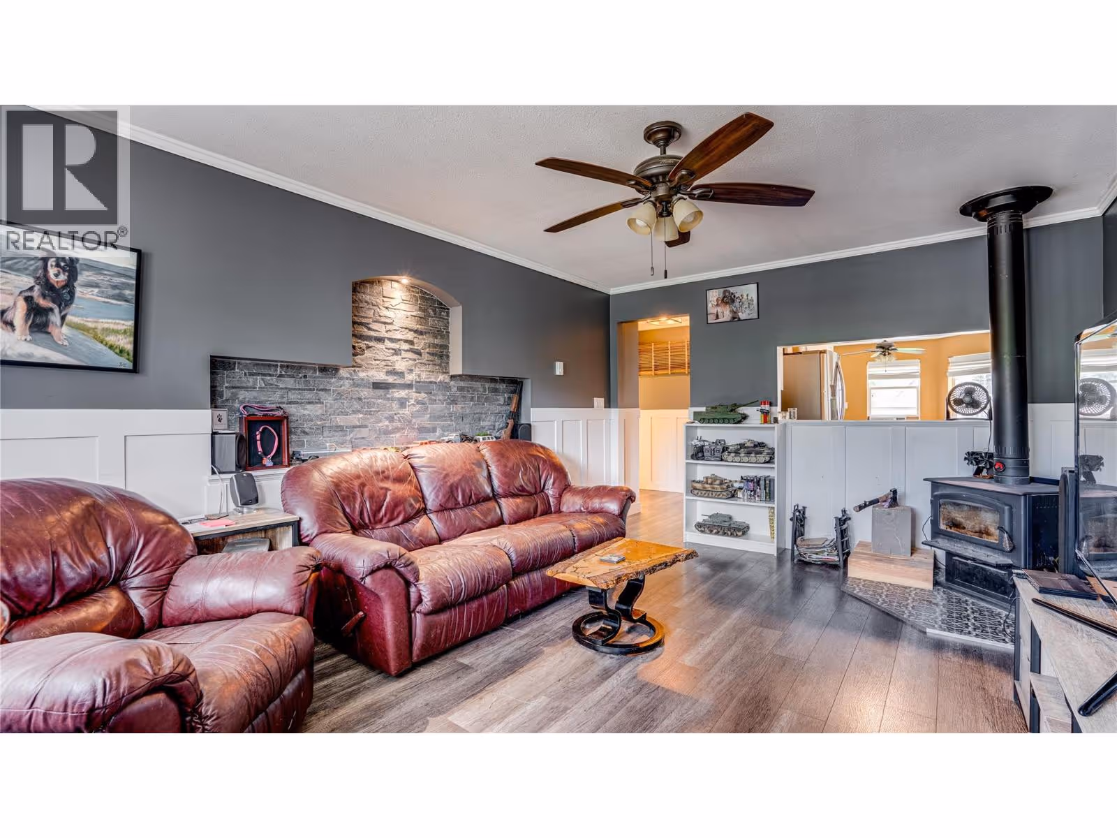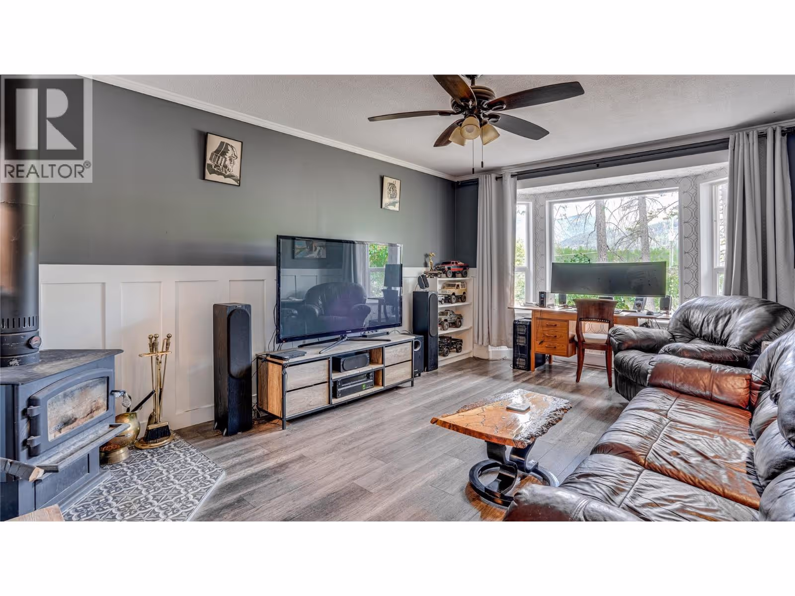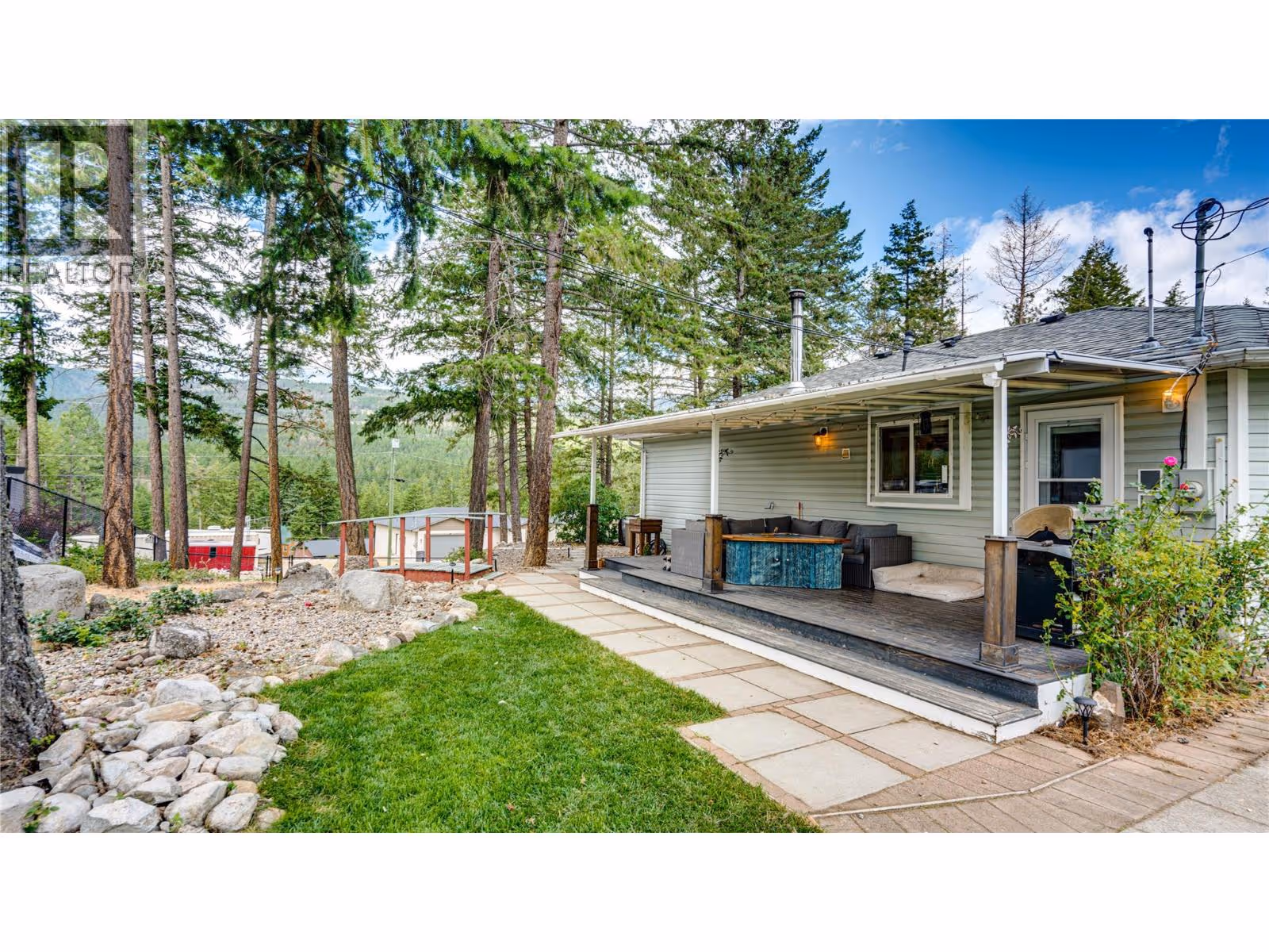HUGE SHOP! If that got your attention, then this rancher style home with 21’x34’ detached shop located in Fintry is for you. Escape the hustle and settle into nature with this 2 bedroom, 2 bathroom home tucked away on .33 of an acre of fully fenced treed land, offering 1,242 sq ft of comfortable living space and stunning views overlooking the lake and surrounding wilderness. Perfectly positioned for privacy and tranquility, this property is ideal for those who crave a quieter, more connected lifestyle. The open concept layout inside feels bright and welcoming, with large windows that bring the outdoors in and frame the peaceful, lake and forest views. The kitchen hosts newer stainless steel appliances and a specious breakfast nook, with peek-a-boo window into the cozy livingroom that features a beautiful wood burning stove. Both bedrooms are well-sized, and the primary features its own recently updated bathroom with steam shower for added comfort. Outside, you'll find plenty of space to roam in your fully fenced yard to play, relax, or garden under a canopy of mature trees. The detached shop with 240v power provides tons of room for parking, projects, storage, or outdoor gear, and the driveway offers ample RV and extra parking for all your vehicles, toys, or visiting friends. Whether you're looking for a full-time home in the woods or a weekend getaway surrounded by nature, this property is one you have to see in person to fully appreciate! (id:58842)