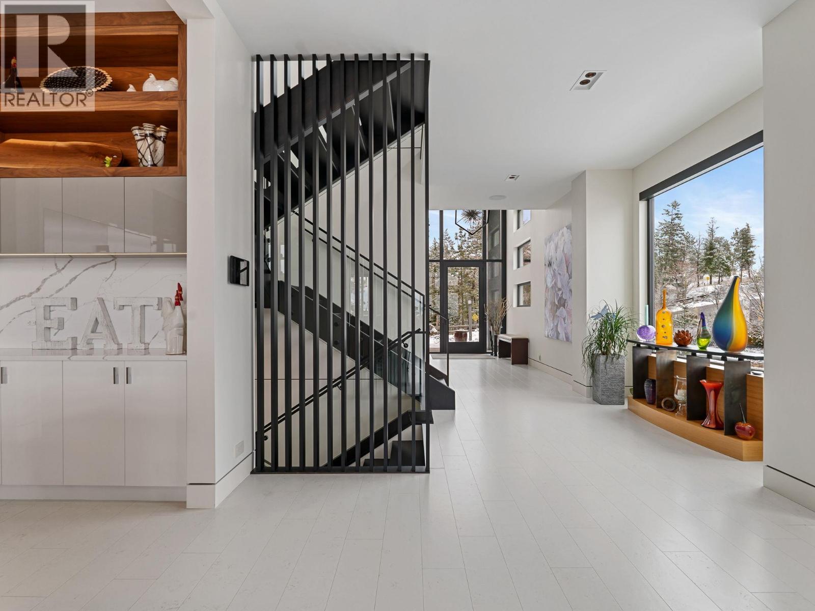 Nestled in the prestigious Highpointe community of Kelowna, this architectural masterpiece redefines modern luxury with views of the city, Okanagan Lake and surrounding mountains. This home is a visual showpiece, with striking geometric lines, floor-to-ceiling windows and meticulous landscaping. The interior boasts an impressive design, double-height ceilings, and seamless negative baseboards that exude elegance. The open-concept living space centers around a stunning linear fireplace, while the gourmet kitchen is a chef’s dream with high-end appliances, a waterfall-edge island, and a butler’s pantry for effortless entertaining. A custom elevator provides convenient access to all levels, and two separate garages accommodate up to 9 vehicles, perfect for car enthusiasts. Each bedroom is a private retreat with designer finishes and spa-like ensuites, including the luxurious primary suite with a walk-in closet and private outdoor access. The professionally landscaped exterior features a dazzling pool, an outdoor kitchen, and multi-tiered terraces, ideal for entertaining or relaxation. SMART home technology ensures convenience, and the property’s location offers both privacy and proximity to downtown Kelowna, world-class wineries, golf courses and recreational trails. This home is a statement of sophistication and lifestyle. (id:58842)