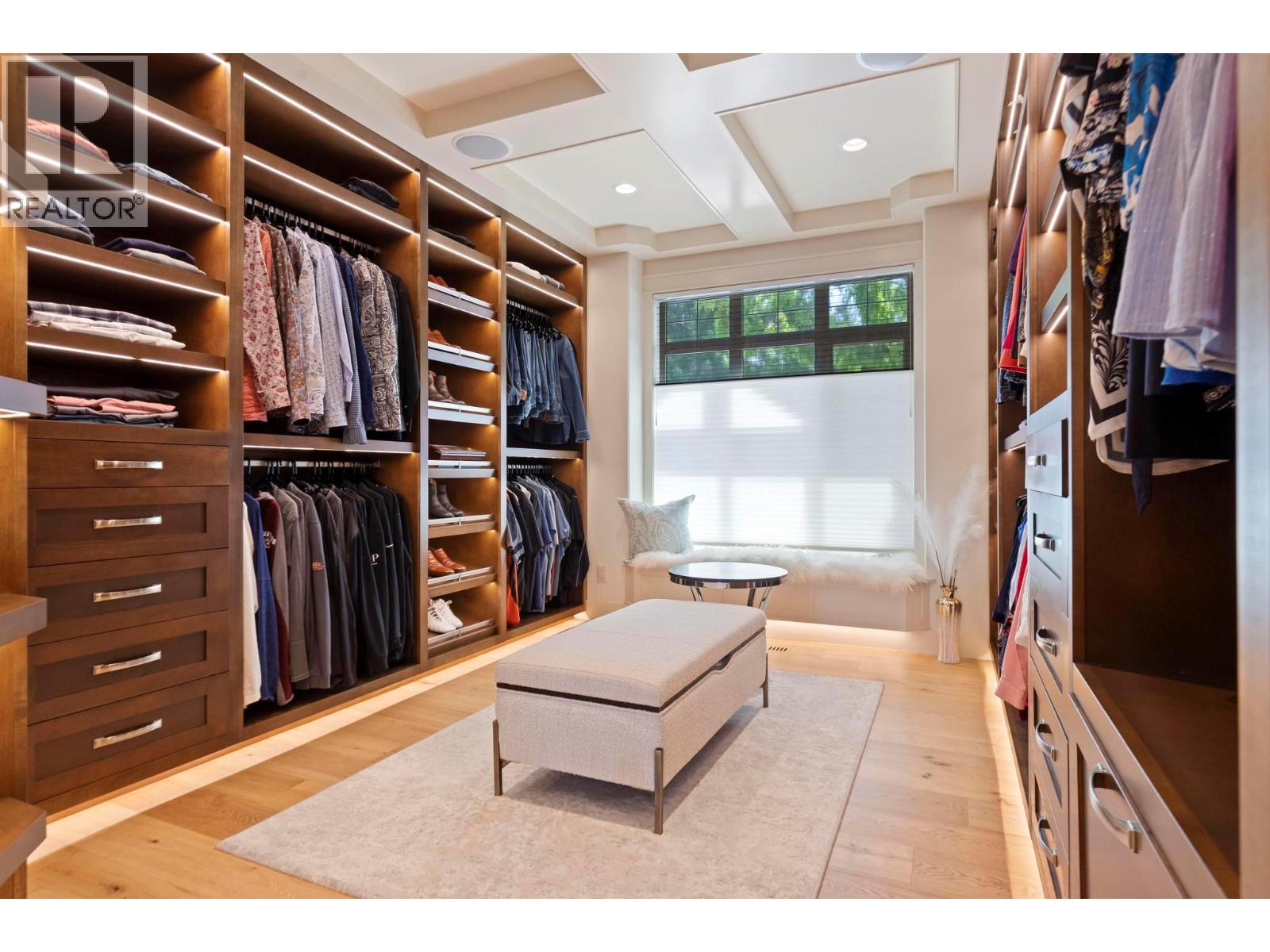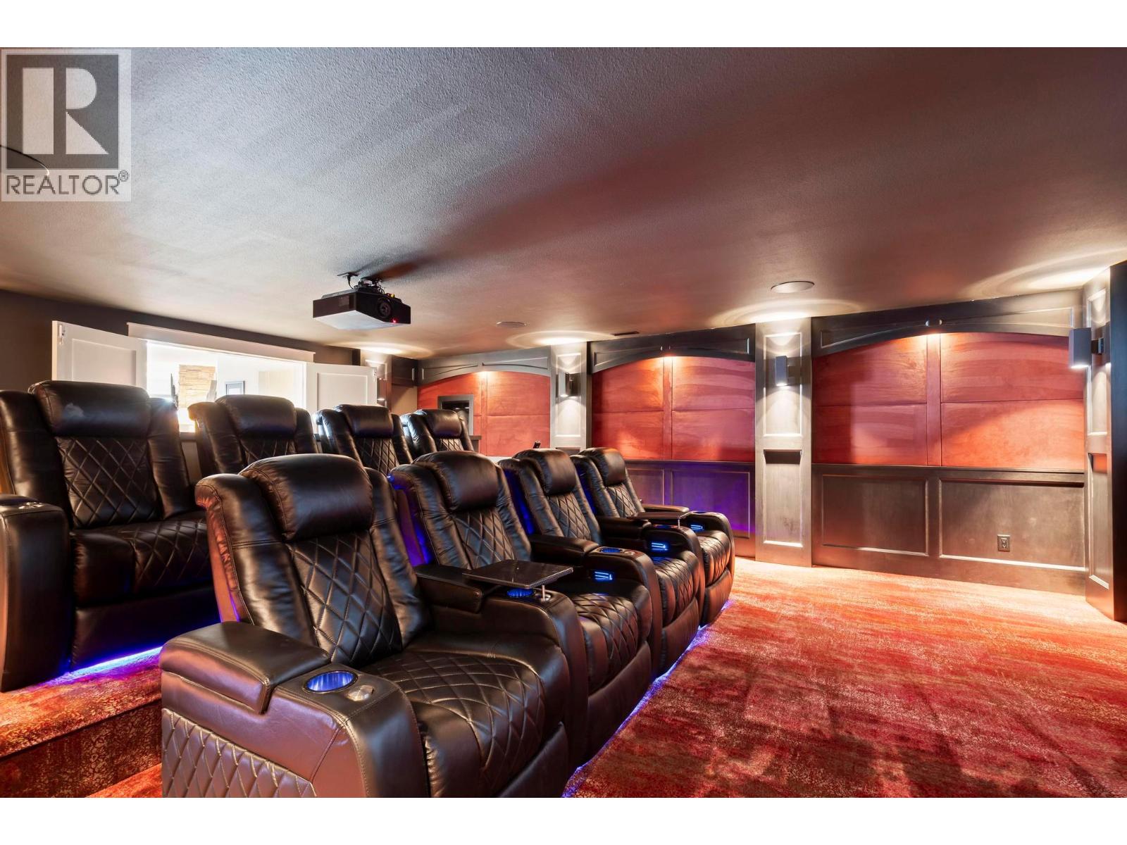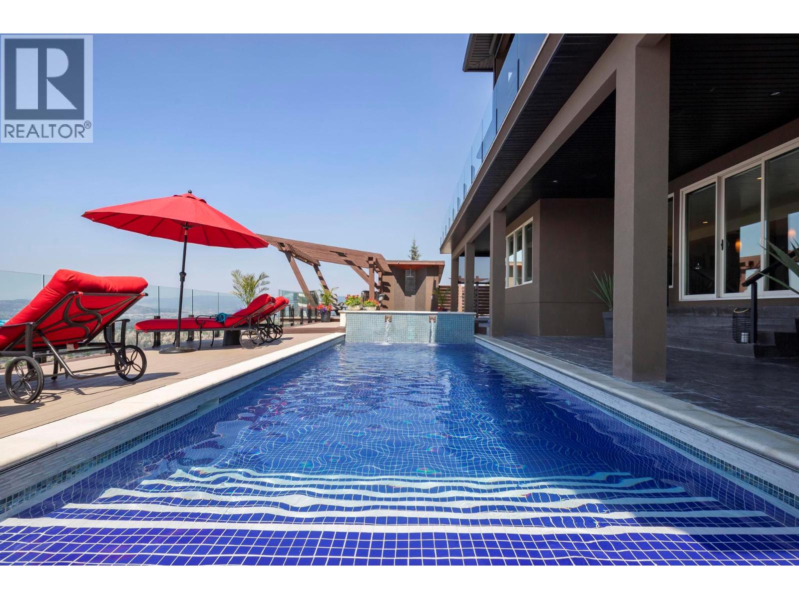 Perched in the prestigious Upper Mission this exceptional luxury residence showcases breathtaking panoramic views of Okanagan Lake, the city, and surrounding mountains. Offering over 5,100 sq.ft. of curated living space, this four-bedroom, five-bathroom residence seamlessly blends technology and lifestyle. Entry through the stunning oversized Walnut pivot door leads to the main level, featuring soaring coffered ceilings, rich hardwood flooring, and expansive windows that frame stunning views and lead to a deck spanning the entire main level. The gourmet kitchen is equipped with new professional appliances, a large island, and 2 walk-in pantries—perfect for both everyday living and entertaining. Another amazing standout feature of this home is a custom built primary closet that will take your breath away. The lower level is designed for recreation and relaxation, complete with; a full wet bar and featuring an amazing; two-tiered theatre room that has been professionally developed. To add to your ultimate comfort, the home is equipped with 2 indoor fireplaces and 3 steam showers, one in each of the ensuites. Outdoors, the showstopper awaits. The backyard featuring a dramatic cantilevered deck with tiled pool and spa, outdoor pool shower, extended fireplace deck & waterfall wall create a striking architectural focal point that complete the nearly 2000 sf of outdoor living space . For ease of maintenance and storage of pool equipment, there is a fully enclosed equipment room containing a newly upgraded Hayward control system managing the pool, spa, water features & lighting. Extensively updated, this home features new flooring, refreshed interior paint, lighting, water softener system, motorized Hunter Douglas blinds; two motorized Phantom sun screens; new glass panel garage door; epoxy garage floors; hardwired EV charger and a fully integrated security system with cameras. Please inquire for a list of comprehensive upgrades. (id:58842)