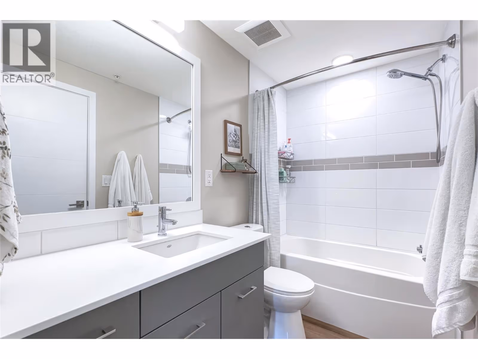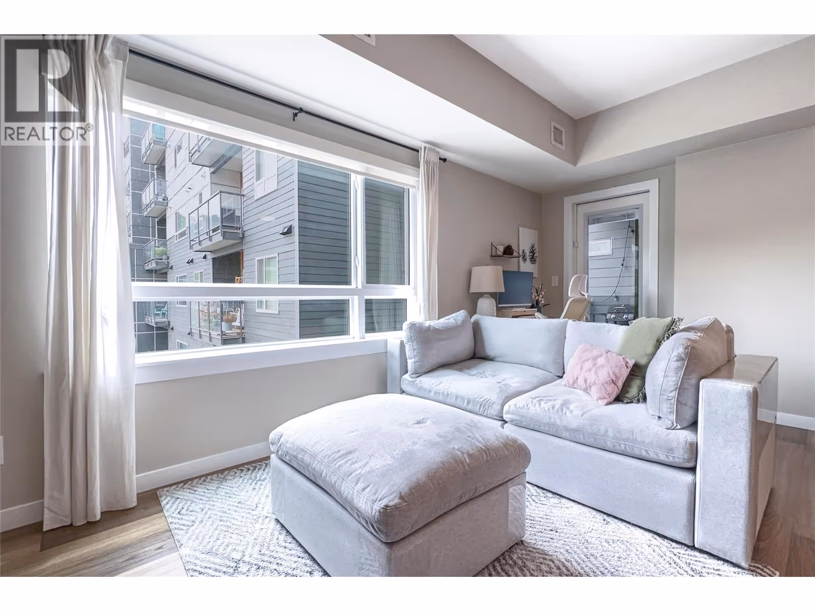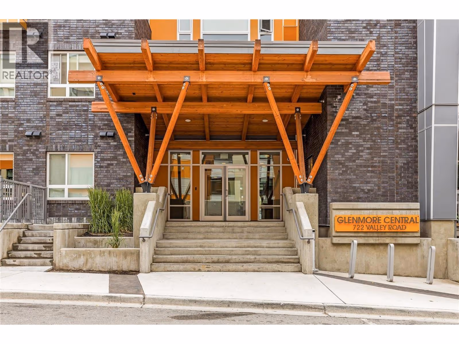 This bright and modern 2-bedroom, 1-bathroom condo offers the perfect blend of comfort, convenience, and lifestyle in one of Kelowna’s most central neighbourhoods. Ideally situated just minutes from Downtown, UBCO, and the beach, with restaurants, shops, and everyday amenities all within walking distance. Inside, you’ll find a contemporary kitchen featuring quartz countertops, a peninsula with bar seating, and a rich, warm, luxury vinyl plank flooring throughout. The open-concept layout is spacious and functional, with in-suite laundry and a thoughtfully designed bathroom that serves as both an ensuite and a guest bath. This East-facing residence is bathed in morning sunlight, while the private balcony provides mountain views and a peaceful spot to unwind in the late afternoon shade. The building's rooftop garden patio is perfect for entertaining with a BBQ and a fire pit, dining tables, and casual seating, while the large gathering room with kitchen and lounge offers the opportunity to host social events many condo owners can only dream about. Additional highlights include central heating and cooling, 1 outdoor parking stall, electric fireplace, and a dedicated bike and dog wash station — Glenmore Central welcomes residents with up to two pets, dogs or cats, with no size restrictions! If you don't know the area well, enjoy a tour around the building from the sky included in the properties virtual tour. Contact the listing agent to learn more! (id:58842)