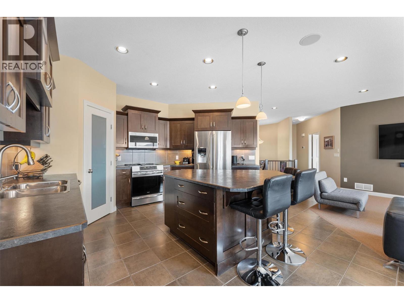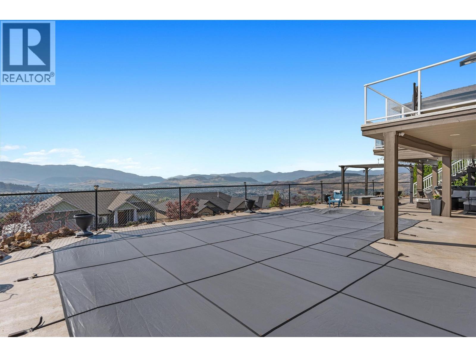 Perched in Vernon's Foothills with sweeping views of Kalamalka, Okanagan & Swan Lakes, mountains, city lights, & the entire valley. Original owners of this refined residence that blends comfort, entertainment & family living & less then 15 minutes from Silver Star Resort or Kalamalka Lake. Main level offers open-concept living with a chef’s kitchen featuring a massive island, pantry, & premium appliances. The dining & living areas extend seamlessly to a full-length deck with glass railings, panoramic vistas, & walk-down access to the pool. A stone-surround fireplace anchors the living room, while the primary suite showcases breathtaking views, a walk-in closet, and a spa-inspired ensuite. A second bedroom, 5-piece bath, & laundry with garage access complete this level. A true cinematic experience in this home with better than theatre sound! This home has a custom-built home theatre with professional acoustic treatments; 13.2 Dolby Atmos surround sound, 4K projector, over 10ft. screen & tiered recliner seating. The lower level is designed for relaxation & entertainment with a stylish bar, office, 2 guest bedrooms, a 3-piece bath, & easy access to the pool. Outside enjoy a resort-style retreat with an app-controlled saltwater pool with slide, hot tub, covered lounge, & cedar privacy screening. Double garage includes an EV charger & built-in shelving. HVAC include central vac, a WaterFurnace Synergy system, Nest thermostat, water filtration, & geothermal heating/cooling. (id:58842)