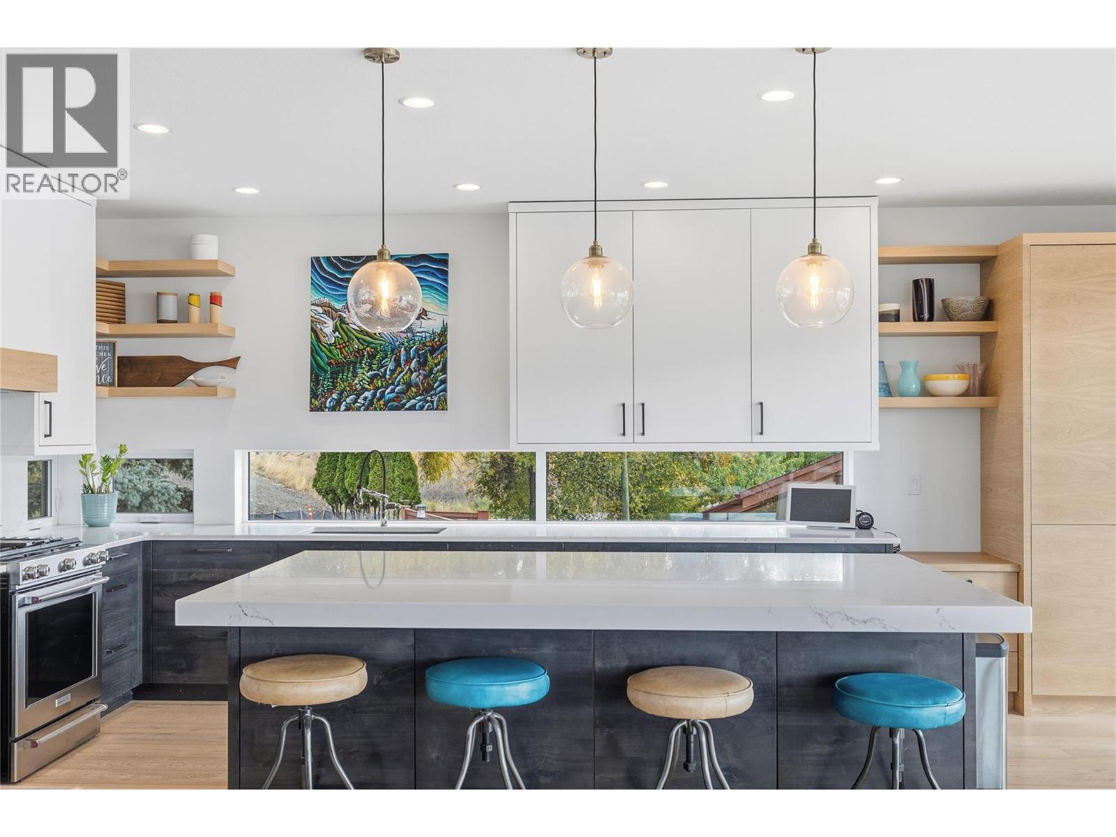 Stunning contemporary home on Okanagan Lake! Architecturally designed by MQN and built by Richbuilt Homes, this 4 bedroom, 3.5 bath home has quality finishings from top to bottom. An elevator provides easy access to all 4 levels, including a spacious rooftop patio with an outdoor kitchen, hot tub and gorgeous views of the lake. Inside, the home is bright and open, with tall windows for an abundance of natural light and enjoyment of the views. The property features private boat lift, shared water frontage and dock with the adjacent property. Double garage. Extensive retaining systems and landscaping. (id:58842)