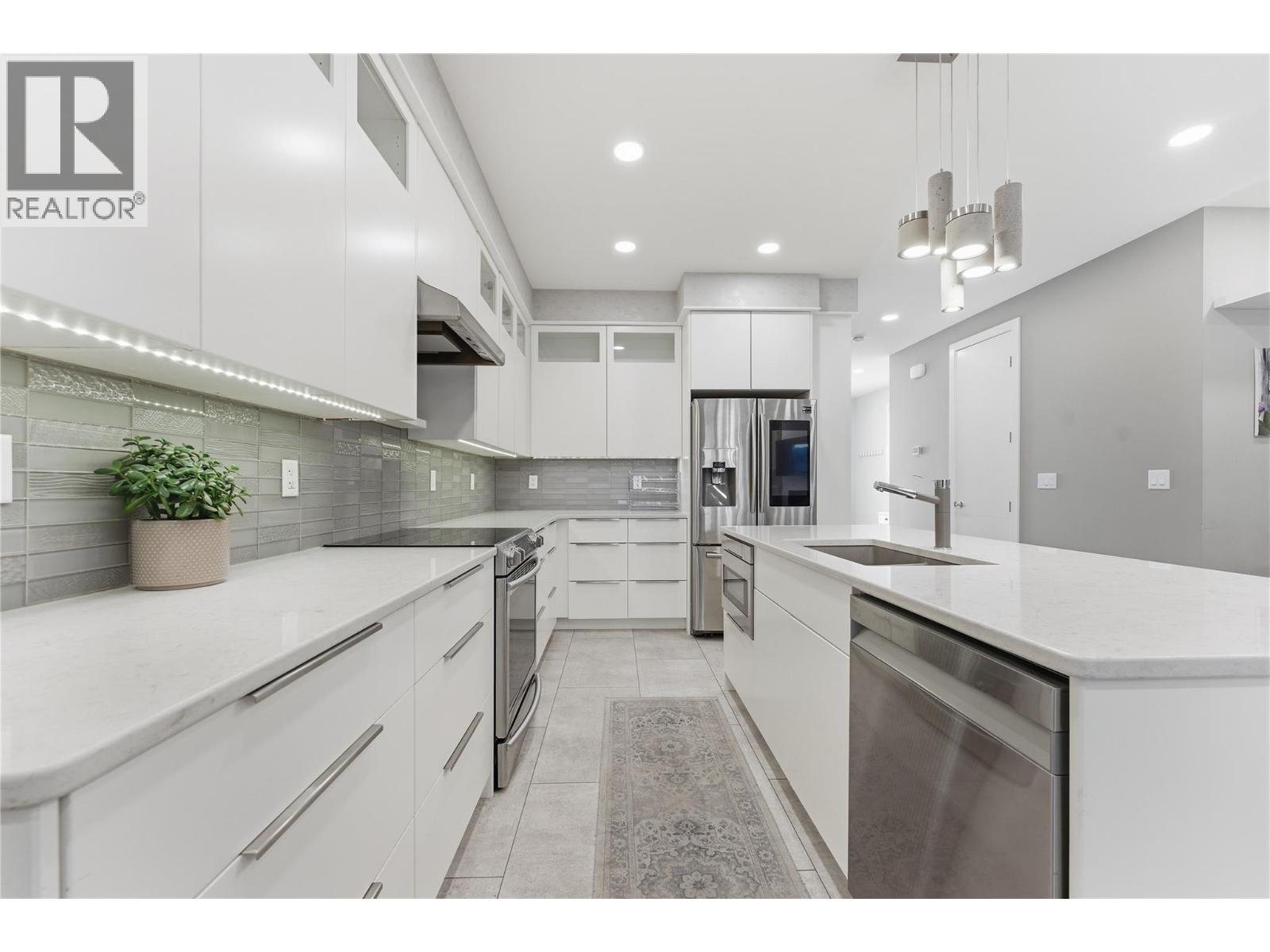 Welcome to your turnkey Okanagan escape in the heart of Vernon. This exceptional 2,800+ sq. ft. lakefront townhouse offers the perfect blend of luxury, space, and effortless ownership—ideal for buyers seeking a premium summer retreat. Set within an exclusive gated community of just 18 units, this 5-bedroom, 4-bathroom home delivers resort-style living on the shores of Okanagan Lake. Enjoy access to a private dock, sandy beach, sparkling pool, and beautifully maintained green space—all managed by the strata for true lock-and-leave convenience. Inside, the thoughtfully designed layout features expansive open-concept living on the main floor, perfect for entertaining or relaxing after a day on the water. Upstairs offers three generous bedrooms, two full bathrooms and laundry, while the lower level provides another two bedrooms, a spacious family room, full bathroom, and a dedicated gym or storage area—plenty of room for family and guests. This home comes fully furnished, allowing for immediate enjoyment from day one. Simply arrive and start making memories. A private garage adds convenience, while the included boat slip ensures seamless access to lake life. Whether you're looking for a seasonal getaway or a low-maintenance luxury investment, this rare offering combines location, lifestyle, and ease in one of Vernon’s most desirable waterfront communities. (id:58842)