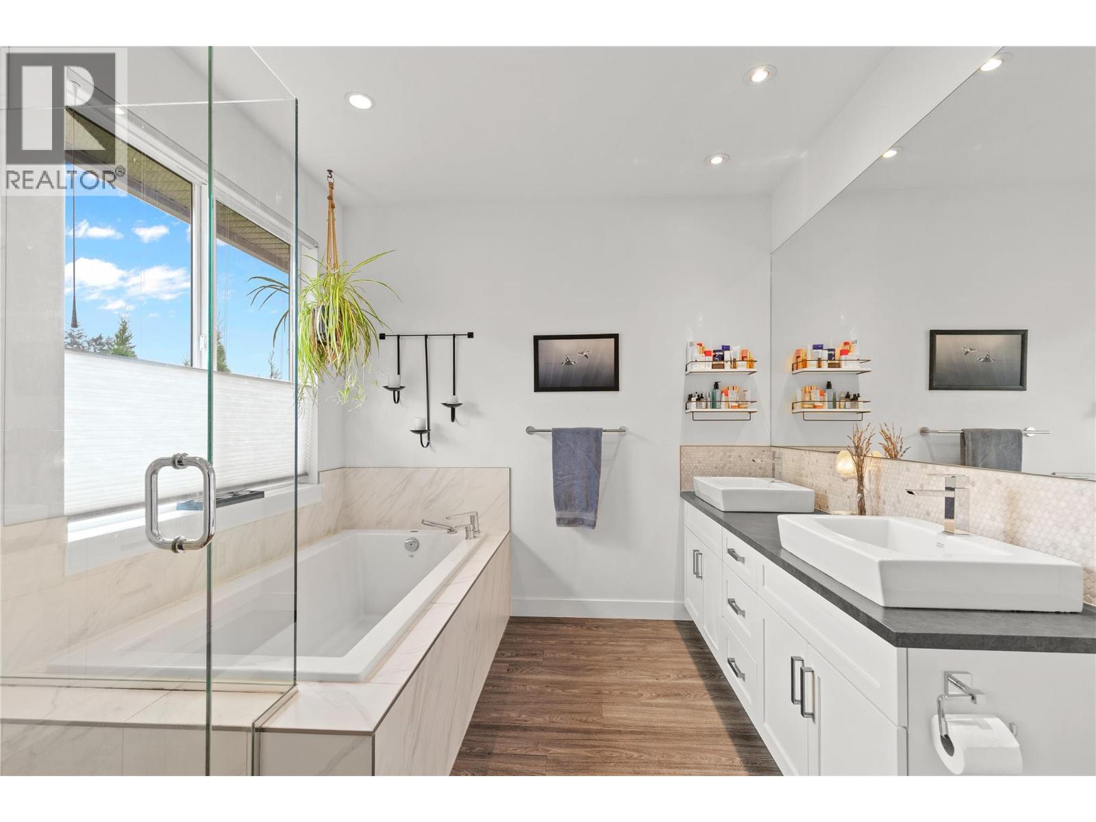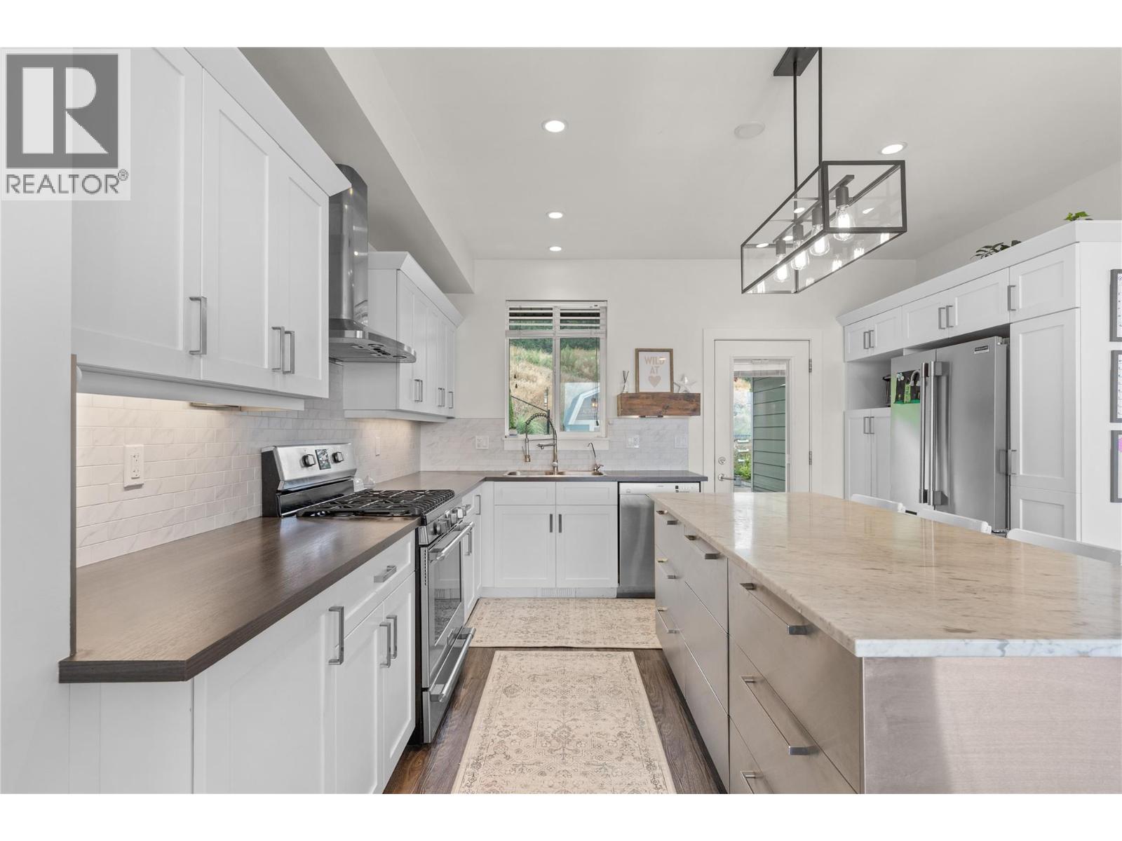 Welcome to this immaculate executive home in Vernon’s desirable Foothills, perfectly blending modern country design with functionality & breathtaking Okanagan views. This spacious 3-bed, 2-bath home offers an open-concept layout with 9-ft ceilings, a chef-inspired kitchen featuring a 7-ft granite island, high-end SS appliances, the spacious living & dining areas flow seamlessly toward a view-filled balcony, perfect for morning coffee or evening glass of wine. Expansive windows showcase stunning views of the mountains & the valley beyond. The main floor includes 2 beds, a 4 pc bath & the luxurious primary suite with a spa-like 5pc ensuite boasting a soaker tub, glass shower, & w/i closet. On the entry level, an office (or optional 4th bedroom) sits alongside a fully self-contained 1-bedroom, 1-bath in-law suite with its own entrance—ideal for extended family, guests, or extra income. Step outside to your private, fully fenced yard backing onto green space. Designed for relaxation & entertaining, it features a hot tub, & a natural gas BBQ station.Additional highlights include attached garage, built-in vacuum, ample storage, & a quiet, safe, no-through street location.Just minutes to downtown Vernon & a short drive to Silver Star Ski Resort, this property delivers year-round enjoyment of the Okanagan lifestyle. Whether you’re seeking a sophisticated family home, a revenue property, or both, this Foothills gem offers it all—style, comfort, & practicality with unforgettable views. (id:58842)