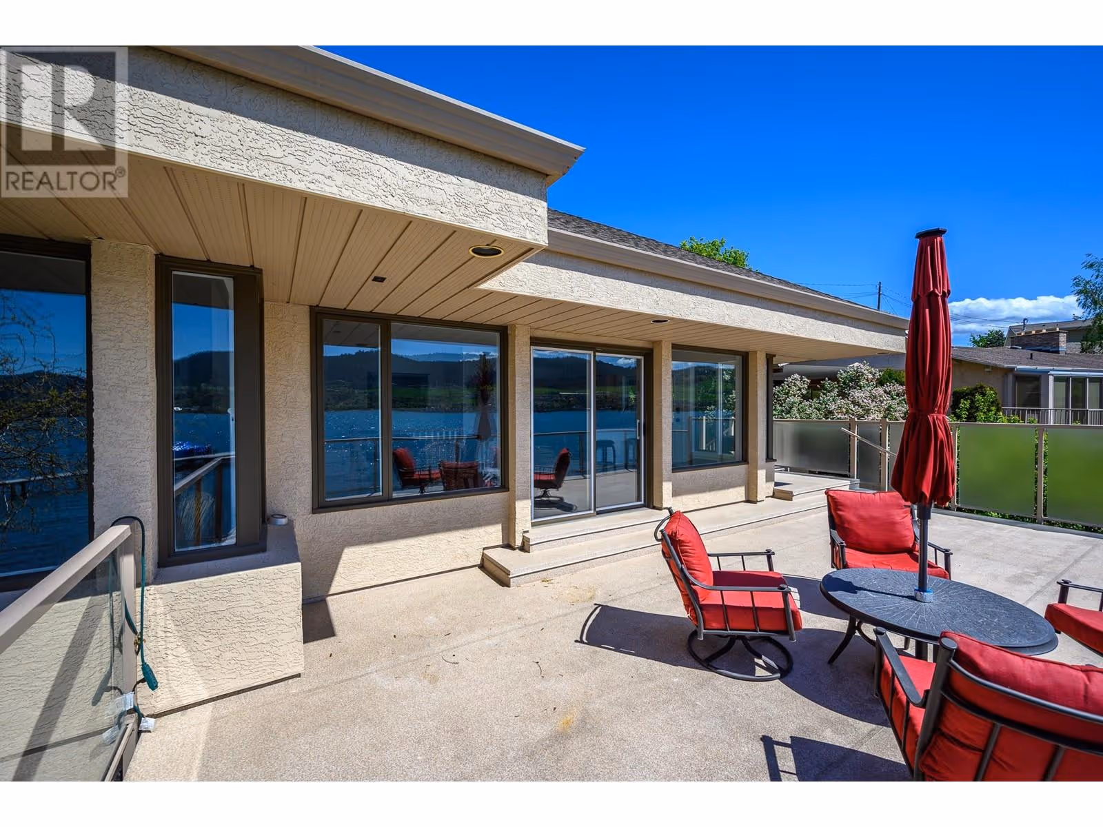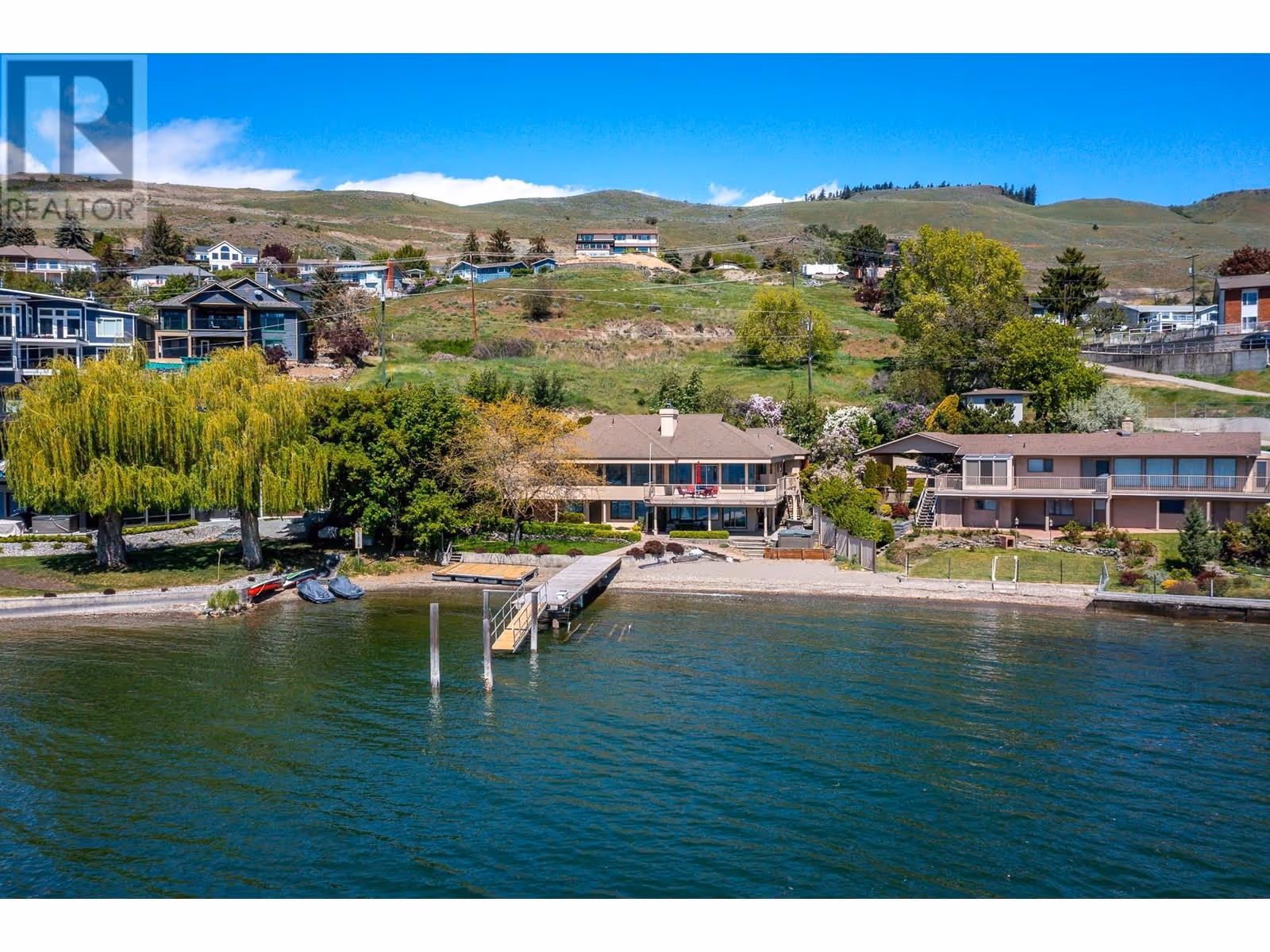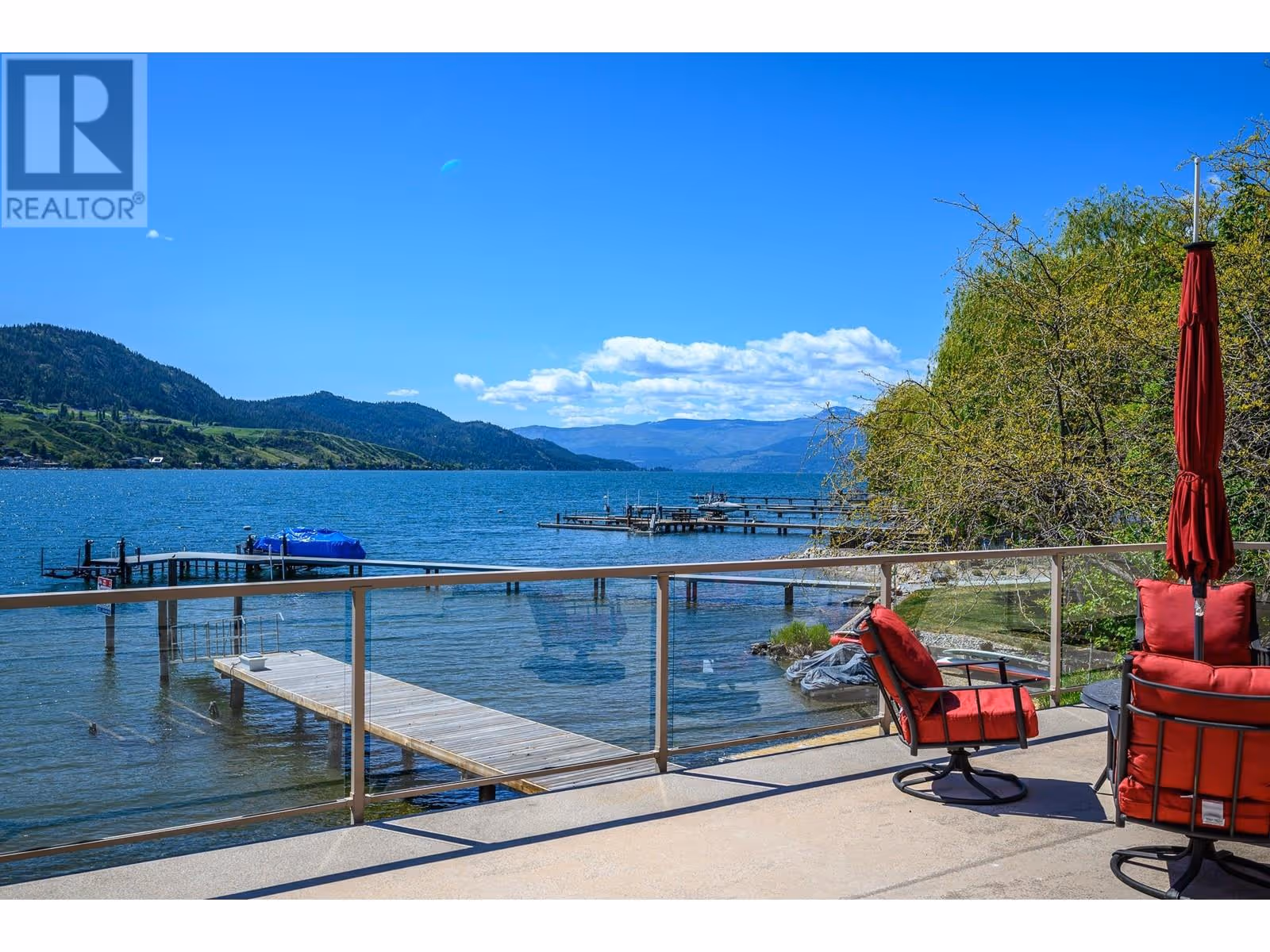 Dreaming how you can have that ultimate Okanagan Lakefront lifestyle? This property makes it happen! The 2 bedroom suite in the walk-out lower level can be a desirable rental and will avoid the BC speculation and vacancy tax if the main home is your vacation retreat. Or make this a family group purchase and share the space! There is a super family room that divides or connects the two living spaces - perfect for shared gatherings! Follow the sun or shade on the generous decks and patios, complete with hot tub and outside bar area. Lawns flow to the 95f ft of level, sandy, swimmable waterfront! Excellent dock with solar powered boat lift. Privacy gates open to double driveway, generous level parking and the double garage. BONUS - the potential to subdivide the upper portion of the lot or build a carriage home! Impeccably maintained, this home has walls of windows on both levels to maximize that spectacular south-facing lake view! The level entry main offers 2 bedrooms, office, 2 1/2 ; baths, laundry, updated oak kitchen with center island, newer appliances and Dekton counters. The living and dining areas are separated by see-thru fireplace. The walk-out lower level offers the connecting family room plus mega storage and a bath with convenient access to the outdoors and lake! The suite enjoys a private entrance, full kitchen, laundry and 2 bedrooms! Bring your family and feel the dream! (id:58842)