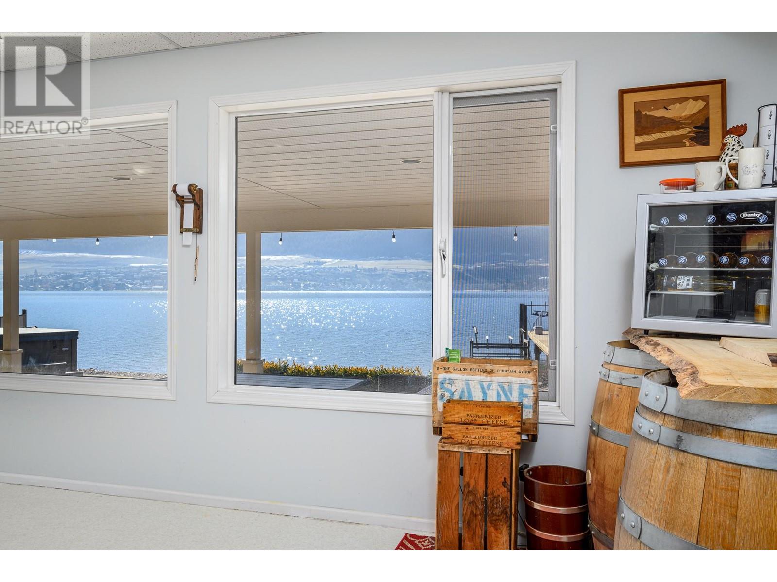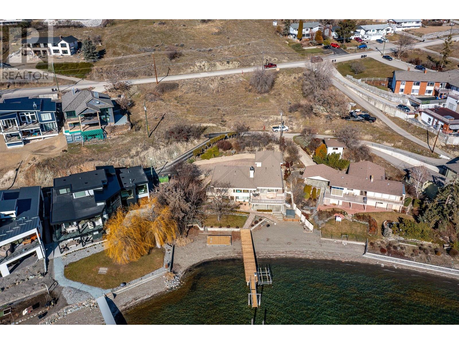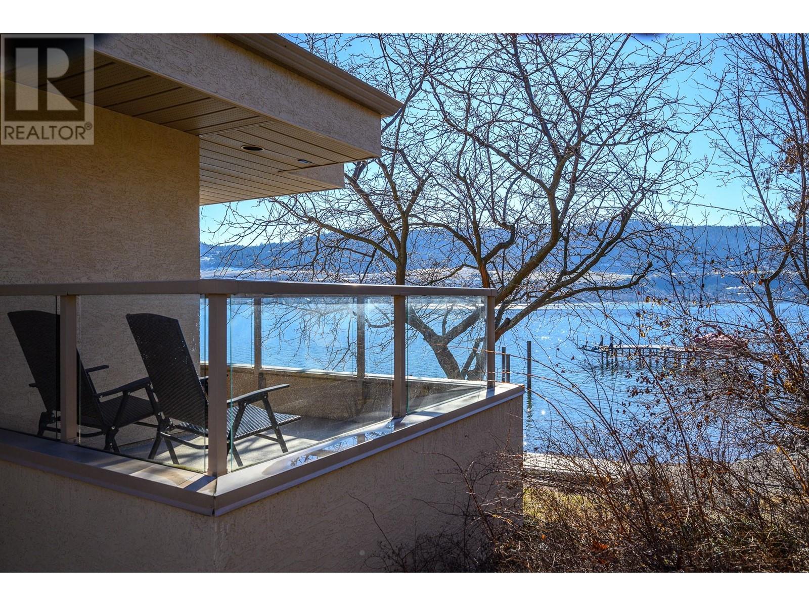 Dreaming how you can have that ultimate Okanagan Lakefront lifestyle? This property makes it happen! The 2 bedroom suite in the walk-out lower level can be a desirable rental and will avoid the BC speculation and vacancy tax if the main home is your vacation retreat. Or make this a family group purchase and share the space! There is a super family room that divides or connects the two living spaces - perfect for shared gatherings! Follow the sun or shade on the generous decks and patios, complete with hot tub and outside bar area. Lawns flow to the 95f ft of level, sandy, swimmable waterfront! Excellent dock with solar powered boat lift. Privacy gates open to double driveway, generous level parking and the double garage. BONUS - the potential to subdivide the upper portion of the lot or build a carriage home! Impeccably maintained, this home has walls of windows on both levels to maximize that spectacular south-facing lake view! The level entry main offers 2 bedrooms, office, 2 1/2 ; baths, laundry, updated oak kitchen with center island, newer appliances and Dekton counters. The living and dining areas are separated by see-thru fireplace. The walk-out lower level offers the connecting family room plus mega storage and a bath with convenient access to the outdoors and lake! The suite enjoys a private entrance, full kitchen, laundry and 2 bedrooms! Bring your family and feel the dream! (id:58842)