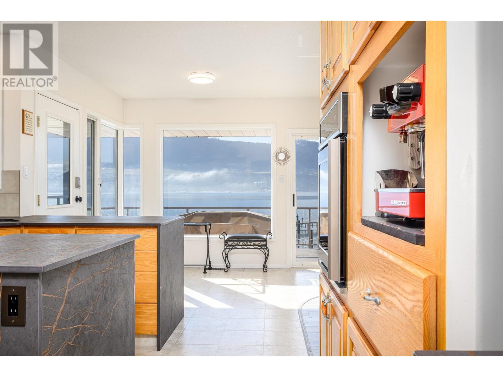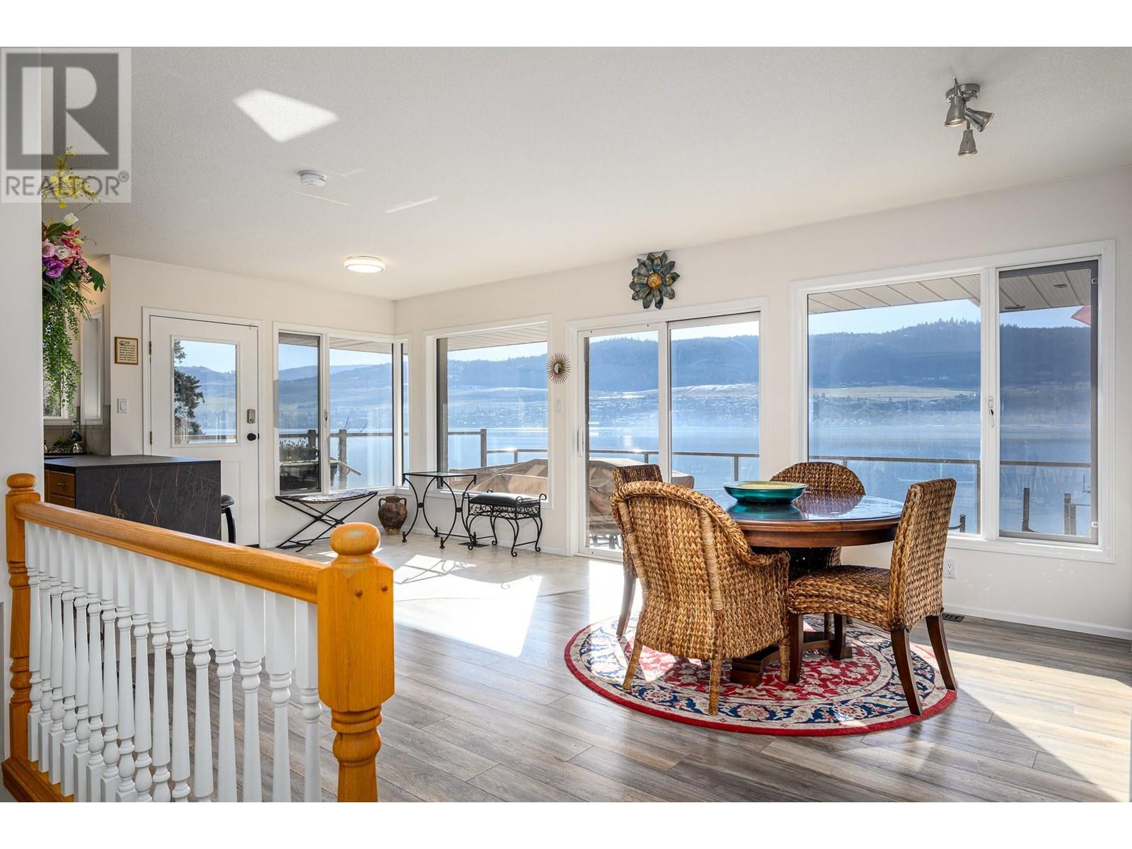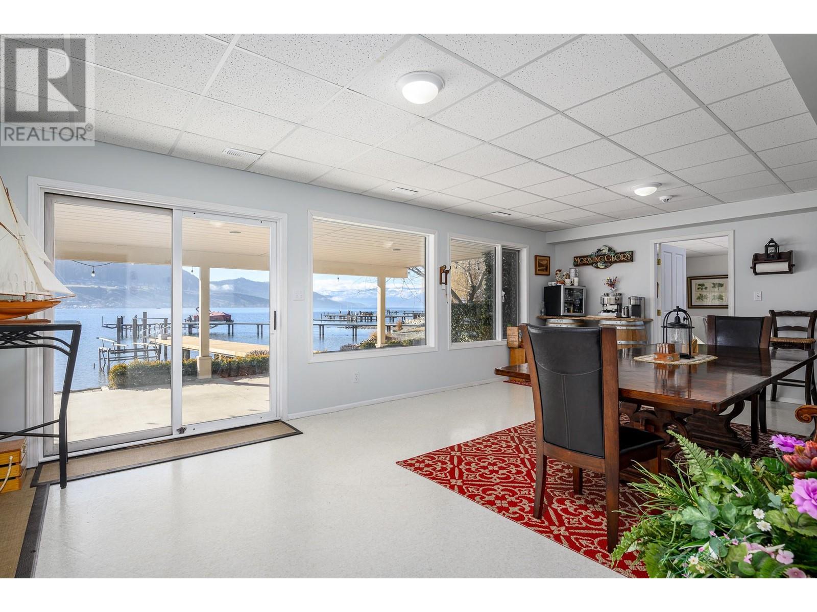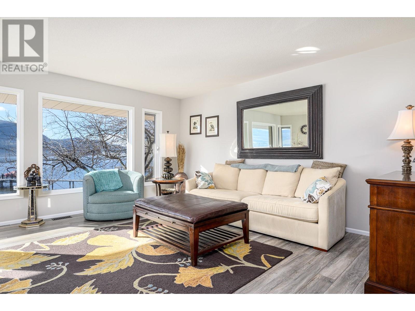 Dreaming how you can have that ultimate Okanagan Lakefront lifestyle? This property makes it happen! The 2 bedroom suite in the walk-out lower level can be a desirable rental and will avoid the BC speculation and vacancy tax if the main home is your vacation retreat. Or make this a family group purchase and share the space! There is a super family room that divides or connects the two living spaces - perfect for shared gatherings! Follow the sun or shade on the generous decks and patios, complete with hot tub and outside bar area. Lawns flow to the 95f ft of level, sandy, swimmable waterfront! Excellent dock with solar powered boat lift. Privacy gates open to double driveway, generous level parking and the double garage. BONUS - the potential to subdivide the upper portion of the lot or build a carriage home! Impeccably maintained, this home has walls of windows on both levels to maximize that spectacular south-facing lake view! The level entry main offers 2 bedrooms, office, 2 1/2 ; baths, laundry, updated oak kitchen with center island, newer appliances and Dekton counters. The living and dining areas are separated by see-thru fireplace. The walk-out lower level offers the connecting family room plus mega storage and a bath with convenient access to the outdoors and lake! The suite enjoys a private entrance, full kitchen, laundry and 2 bedrooms! Bring your family and feel the dream! (id:58842)