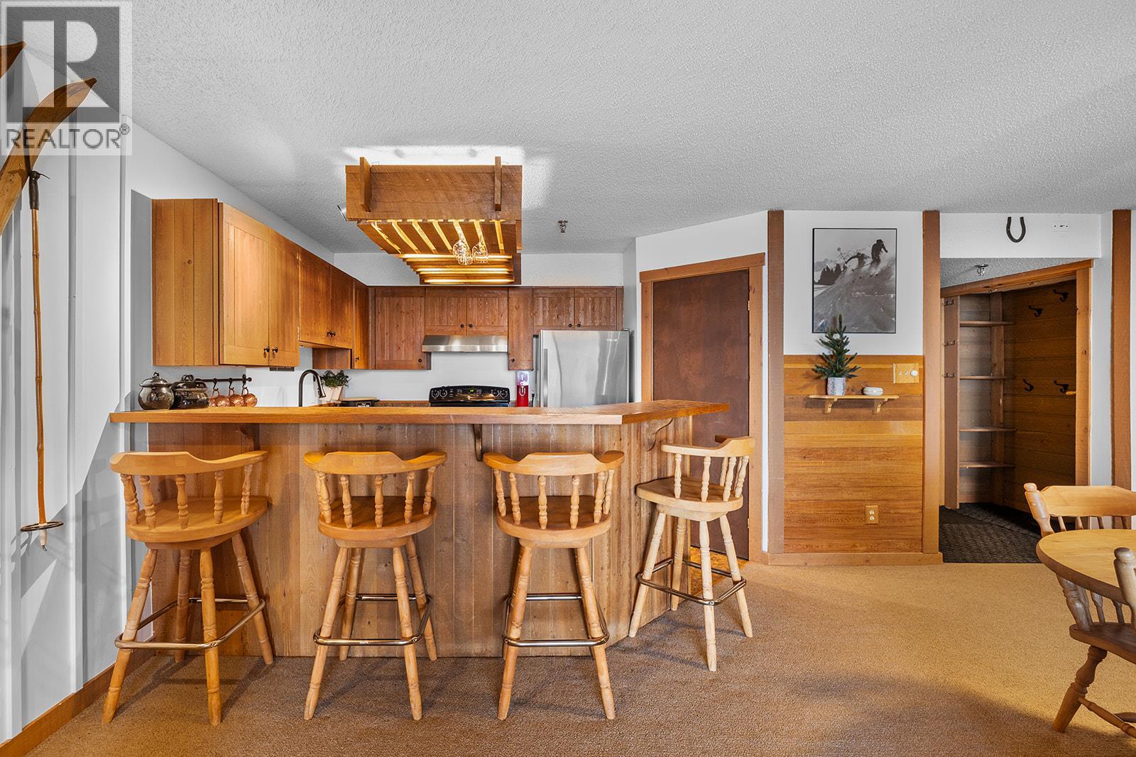 Perfect opportunity to own a ski-in, ski-out home away from home right in the heart of Big White Ski Resort!! This property is located in the recently updated 'The Moguls"" complex, right in the village. Inside you'll find the perfect blend of rustic pine, exposed beams and a rock fireplace complemented by modern design touches. This unique offering includes 2 strata titles but sold as a single package. Unit 804 is a 2 bedroom, 1 bathroom unit and 803 is a studio suite. You can combine them together for a spacious home for you and your guests or utilize them as 2 separate living spaces and keep one for yourself and generate income from the other. Unit 804 features a steam shower in the 3 piece bathroom. In suite laundry is conveniently located in the main unit, and the studio can access the building's shared laundry if used separately. Enjoy true ski-in, ski-out access, along with a hot tub and games room, all conveniently located on the same floor for quick access. Step out on your private patio to enjoy expansive mountain views, perfect for your morning coffee or for soaking in the sunset and fireworks after a day on the slopes. This property includes one underground parking space for Unit 804 and an outdoor space for Unit 803, with additional guest parking pass if needed. Each unit also comes with its own indoor storage locker. Rentals are permitted and pets are allowed with some restrictions (2 dogs or 2 cats OR 1 dog and 1 cat). Don't miss this chance to own a piece of paradise at Beautiful Big White! (id:58842)