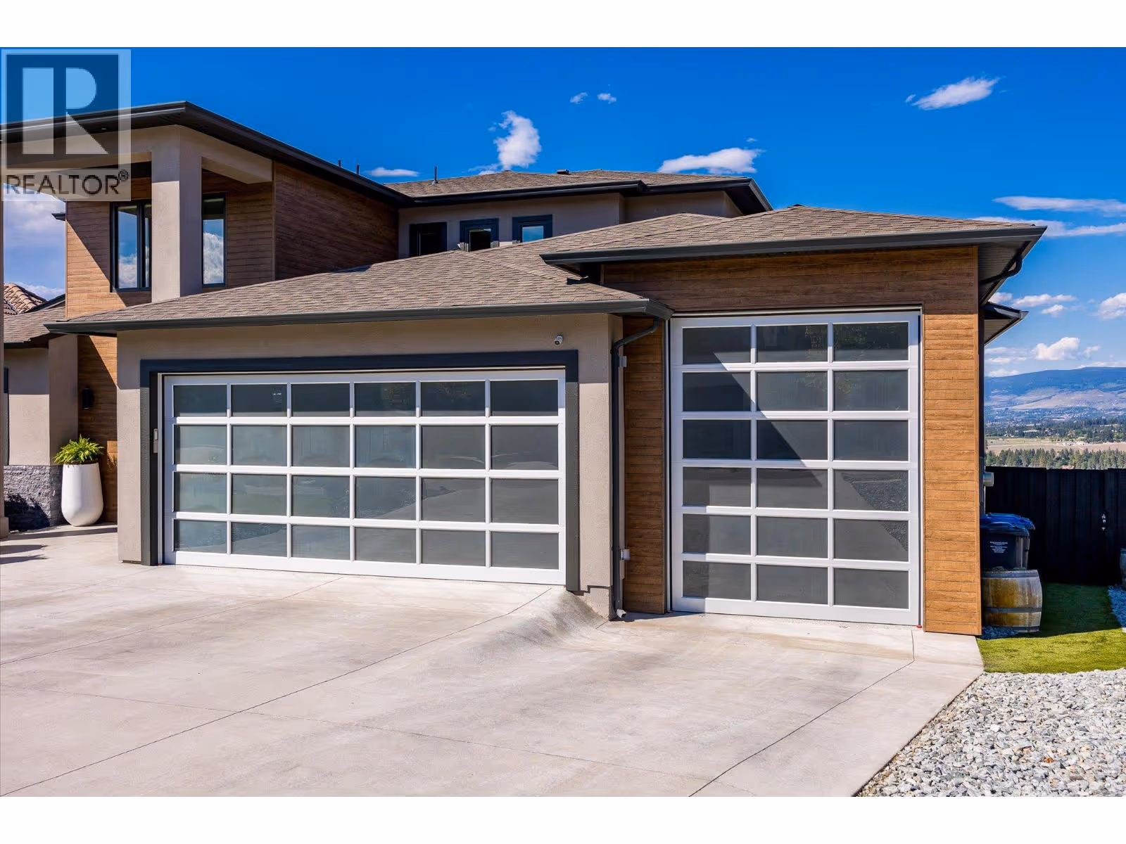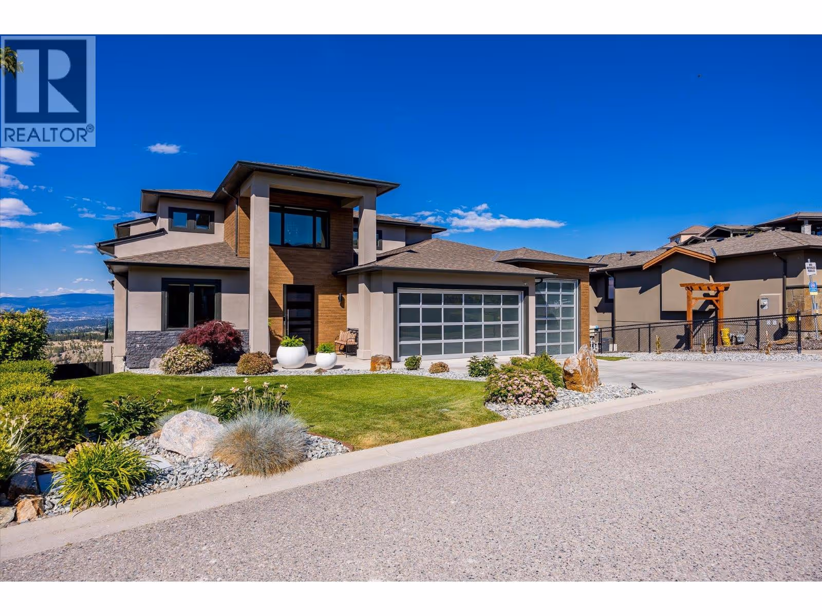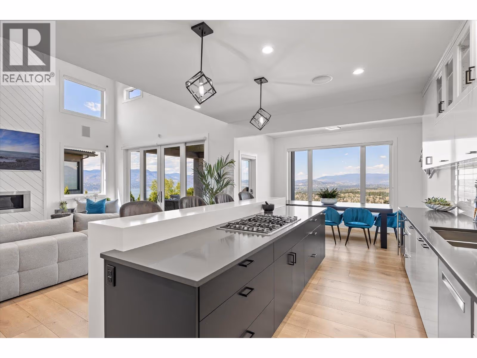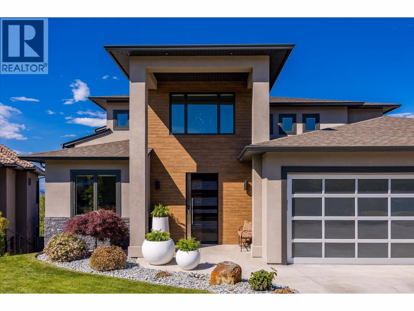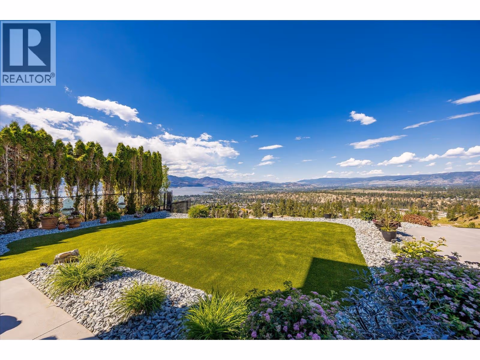 Welcome to this fully updated, exquisite 5 bedroom + den, 4 bathroom home, where no detail has been overlooked. As you step through the grand entrance, you are greeted by soaring vaulted ceilings and a chef's kitchen, complete with top-of-the line appliances and a butler's pantry. The heart of this home showcases breathtaking 180-degree vistas, seeing all of Kelowna, creating a mesmerizing backdrop for everyday living. The opulent primary suite is tucked away in a private corner of the main floor, offering a tranquil sanctuary with stunning lake views and a spa- like ensuite. Two additional generously sized bedrooms are located upstairs, providing ample space and privacy for family and guests. The lower walk-out level is an entertainer's paradise, featuring a sophisticated whiskey tasting room, an exquisite wine cellar, a stylish bar, a spacious rec room, and a state-of-the-art theatre room. This level seamlessly transitions to a private backyard and pool area, where the panoramic views are simply unmatched. Completing this magnificent property are four garage spots, including a double garage and a tandem garage, equipped with EV charging and ample space for a boat or RV. With plenty of parking, convenience and luxury are ensured at every turn. This home combines elegance, functionality, and breathtaking scenery, making it a true masterpiece. (id:58842)