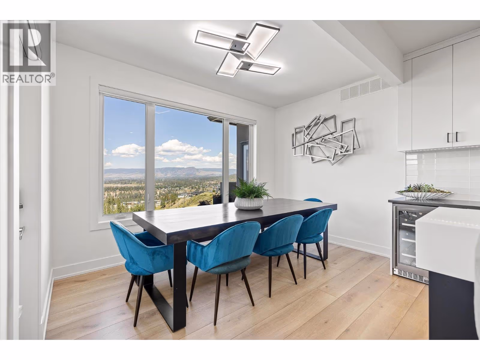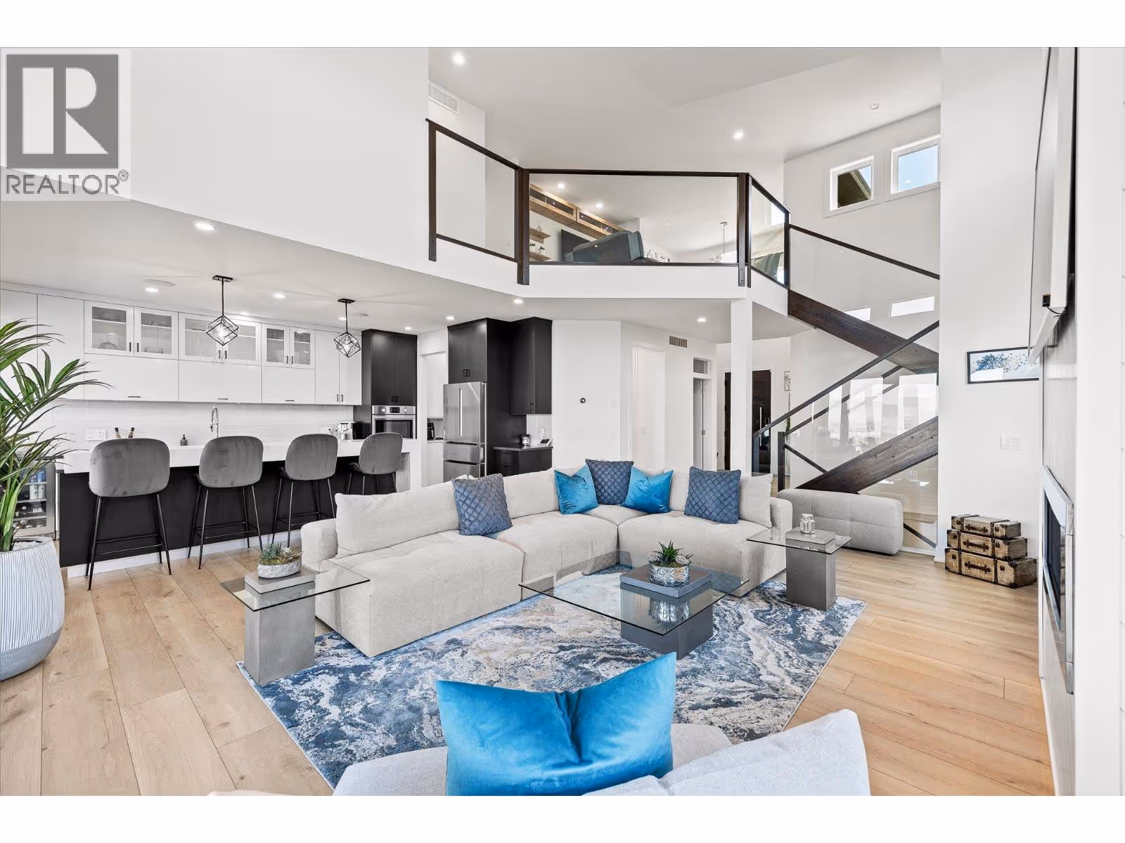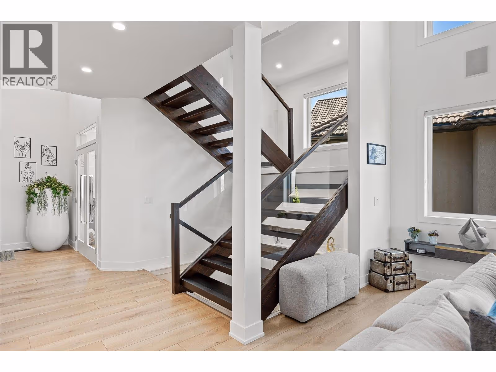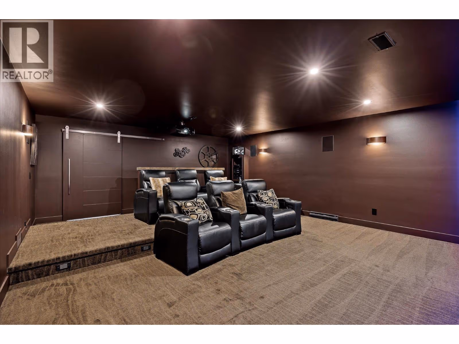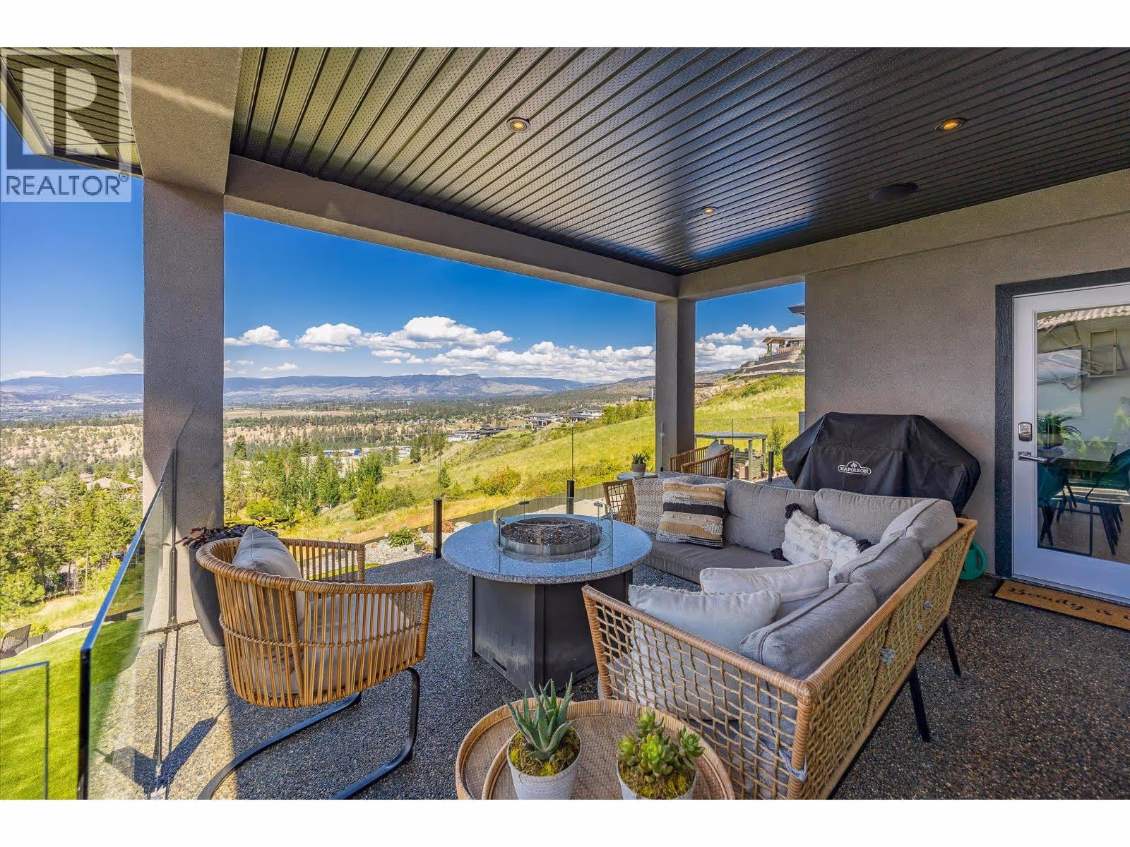 Welcome to this fully updated, exquisite 5 bedroom + den, 4 bathroom home, where no detail has been overlooked. As you step through the grand entrance, you are greeted by soaring vaulted ceilings and a chef's kitchen, complete with top-of-the line appliances and a butler's pantry. The heart of this home showcases breathtaking 180-degree vistas, seeing all of Kelowna, creating a mesmerizing backdrop for everyday living. The opulent primary suite is tucked away in a private corner of the main floor, offering a tranquil sanctuary with stunning lake views and a spa- like ensuite. Two additional generously sized bedrooms are located upstairs, providing ample space and privacy for family and guests. The lower walk-out level is an entertainer's paradise, featuring a sophisticated whiskey tasting room, an exquisite wine cellar, a stylish bar, a spacious rec room, and a state-of-the-art theatre room. This level seamlessly transitions to a private backyard and pool area, where the panoramic views are simply unmatched. Completing this magnificent property are four garage spots, including a double garage and a tandem garage, equipped with EV charging and ample space for a boat or RV. With plenty of parking, convenience and luxury are ensured at every turn. This home combines elegance, functionality, and breathtaking scenery, making it a true masterpiece. (id:58842)