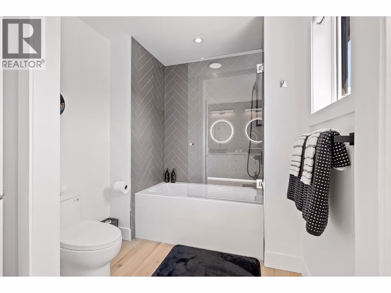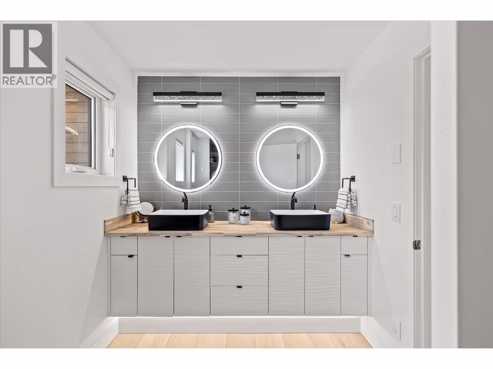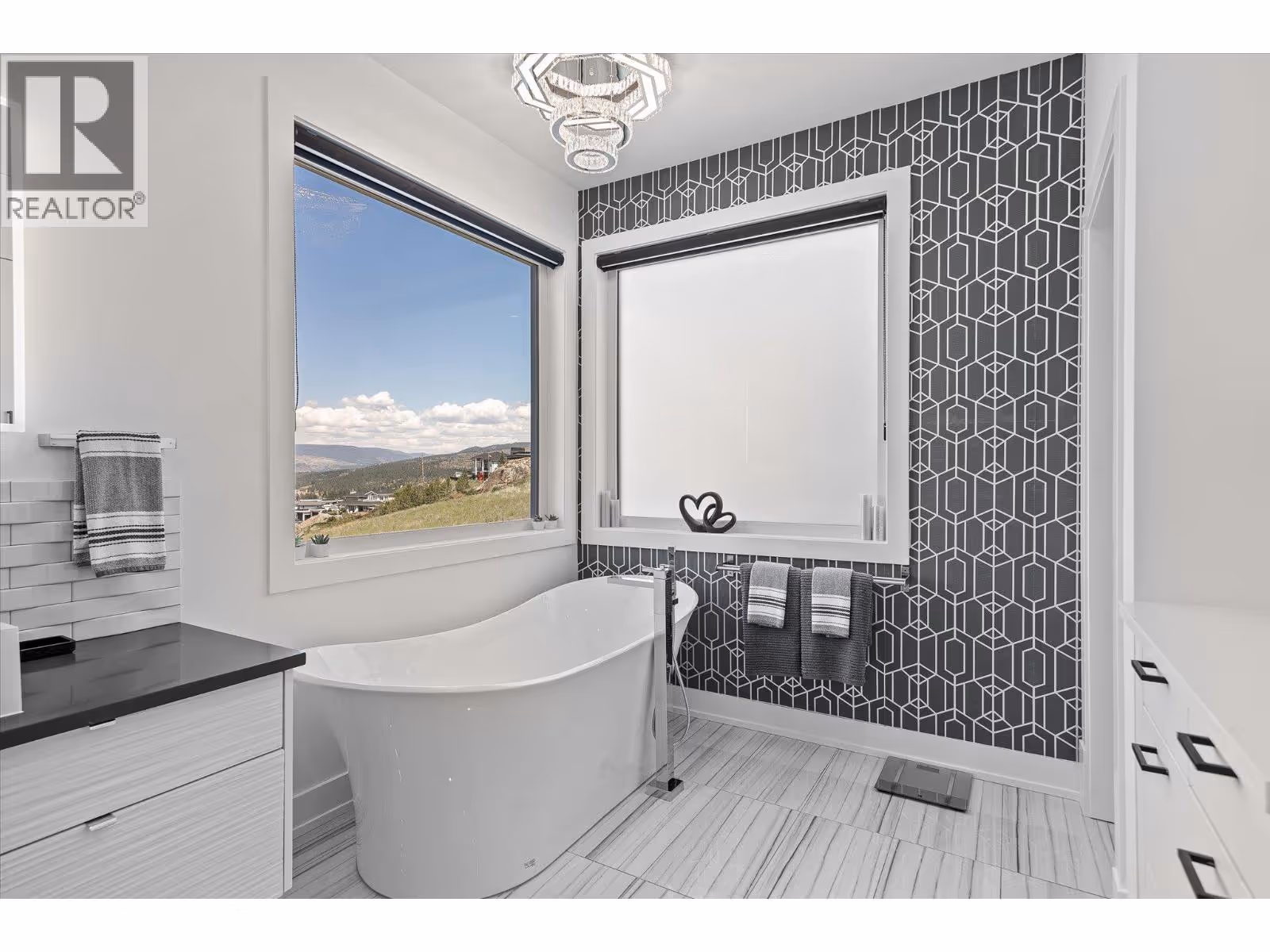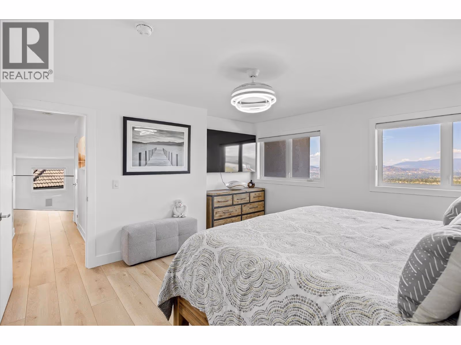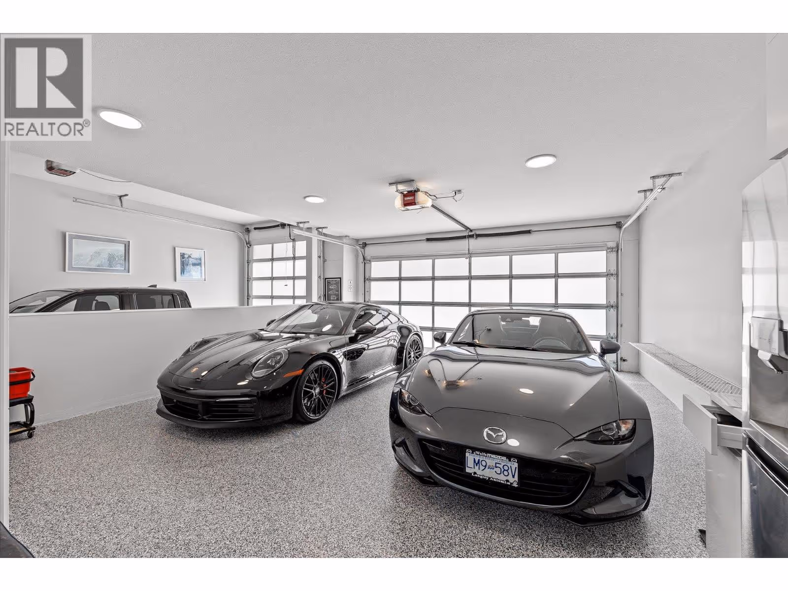 Welcome to this fully updated, exquisite 5 bedroom + den, 4 bathroom home, where no detail has been overlooked. As you step through the grand entrance, you are greeted by soaring vaulted ceilings and a chef's kitchen, complete with top-of-the line appliances and a butler's pantry. The heart of this home showcases breathtaking 180-degree vistas, seeing all of Kelowna, creating a mesmerizing backdrop for everyday living. The opulent primary suite is tucked away in a private corner of the main floor, offering a tranquil sanctuary with stunning lake views and a spa- like ensuite. Two additional generously sized bedrooms are located upstairs, providing ample space and privacy for family and guests. The lower walk-out level is an entertainer's paradise, featuring a sophisticated whiskey tasting room, an exquisite wine cellar, a stylish bar, a spacious rec room, and a state-of-the-art theatre room. This level seamlessly transitions to a private backyard and pool area, where the panoramic views are simply unmatched. Completing this magnificent property are four garage spots, including a double garage and a tandem garage, equipped with EV charging and ample space for a boat or RV. With plenty of parking, convenience and luxury are ensured at every turn. This home combines elegance, functionality, and breathtaking scenery, making it a true masterpiece. (id:58842)