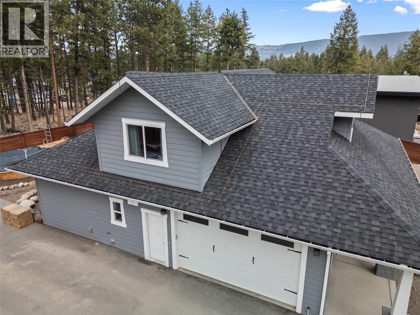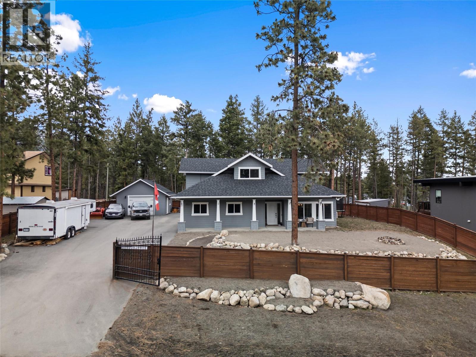 Tucked into the hills above Fintry Provincial Park and minutes from Okanagan Lake, this private Upper Fintry retreat blends tranquility, recreation, and community. Fully gated and fenced, the property offers a calm, safe, and nature immersed Okanagan lifestyle, surrounded by great neighbours and stunning scenery. Set on a generous one third acre lot, this bright West Coast modern home features warm wood accents, vaulted ceilings, skylights, and expansive windows that fill the space with natural light. The open concept living area flows from the kitchen to the living room, where a stand alone wood pellet stove adds warmth and character. The kitchen boasts stainless steel appliances, granite countertops, modern lighting, a walk in pantry, and easy access to the covered patio and outdoor entertaining areas. With three bedrooms plus a den used as a fourth bedroom, a loft, and an additional family room, the layout is flexible for families or guests. The main floor primary suite includes a walk in closet and three piece ensuite, with a reno underway to add a new tiled steam shower, double vanities, and backyard access. Step outside to your private semi inground pool, sauna, and cold plunge. An oversized double garage and separate heated shop provide room for vehicles, toys, or workspace, and a property-wide fire suppression system can soak the entire property in just 20 minutes for added peace of mind. Over 300 kilometres of trails behind Upper Fintry offer year round hiking, biking, and outdoor adventure. The beach and boat launch are nearby, while Save-On-Foods grocery delivery adds convenience. La Casa Lakeside Resort offers dining and entertainment close to home. Approximately 30 minutes from Vernon and Kelowna, this property lets you escape city life without sacrificing amenities. Welcome Home! https://youtu.be/-KzKacmnnFM?si=2TvV1rrideD5Nfdj (id:58842)