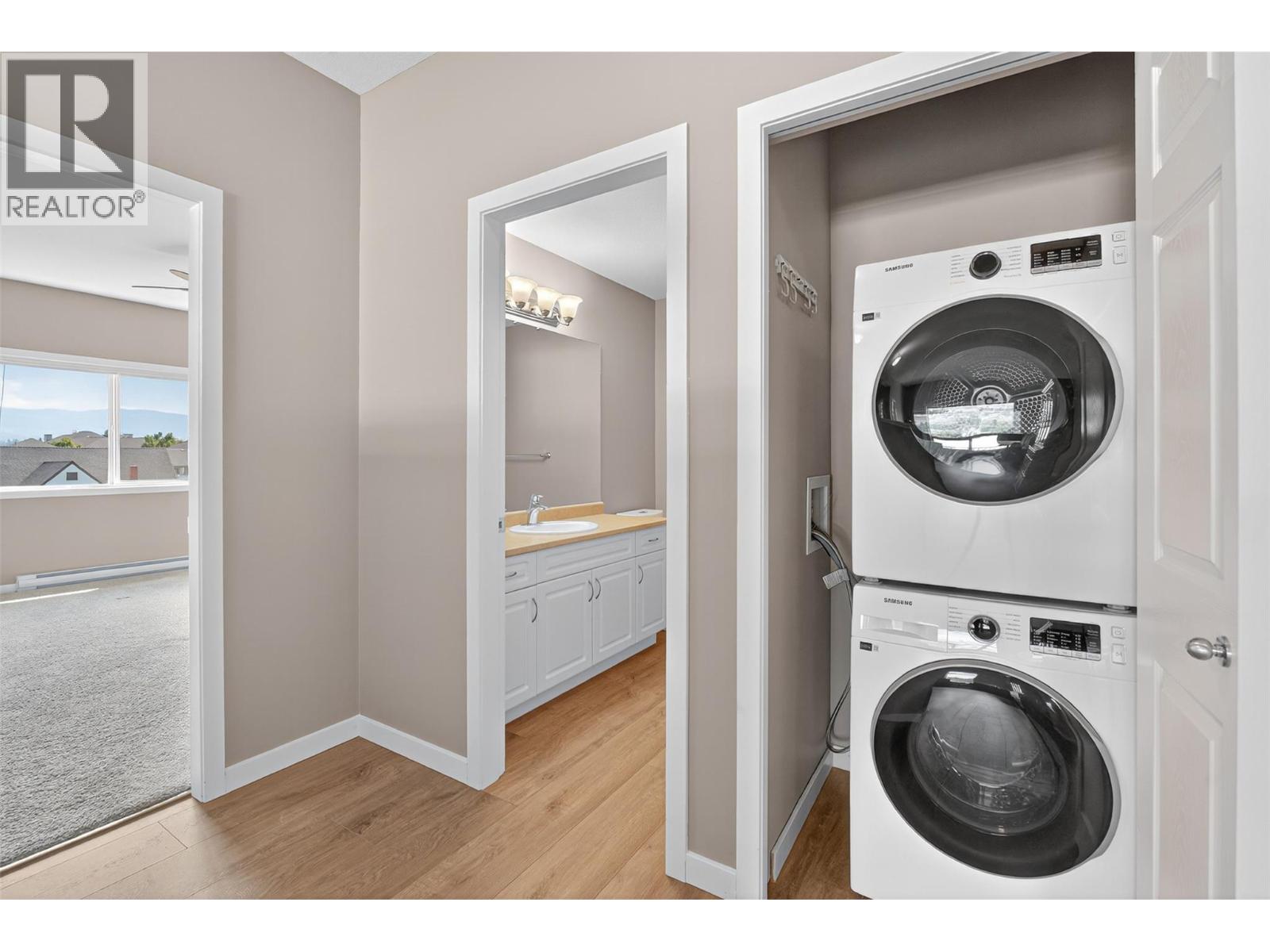 Welcome to Legacy 2, where you'll find this beautiful top-floor corner unit that offers a tranquil escape. This bright and spacious 2-bed, 2-bath condo boasts an open-concept layout, with tons of natural light. The well-appointed kitchen features a wrap around counter that connects to the dining and living areas, making it perfect for entertaining. Step outside onto your large, tree-shaded, corner balcony, a private retreat where you can enjoy the serene surroundings and a lovely eastern-mountain view. The split bedroom floor plan provides ultimate privacy for all. The primary bedroom includes a 3-piece ensuite, and the second bedroom has convenient access to the other full bathroom. In-suite laundry with a full-sized washer and dryer, air conditioning, and plenty of storage make this unit an ideal home for students, young families, or downsizers. This complex offers lush green spaces, a playground, secure underground parking, and convenient access to your storage locker right across the hall. The location is a major highlight, with Willow Park Centre, Plaza 33 + all groceries, restaurants, coffee shops and amenities just a 10-minute drive away, grade schools across the street and the YMCA center within walking distance! You're also perfectly positioned for easy access to UBCO, Kelowna International Airport, Big White Ski Resort, and downtown Kelowna. This is a fantastic investment and a wonderful place to call home and be in the heart of the Okanagan! (id:58842)