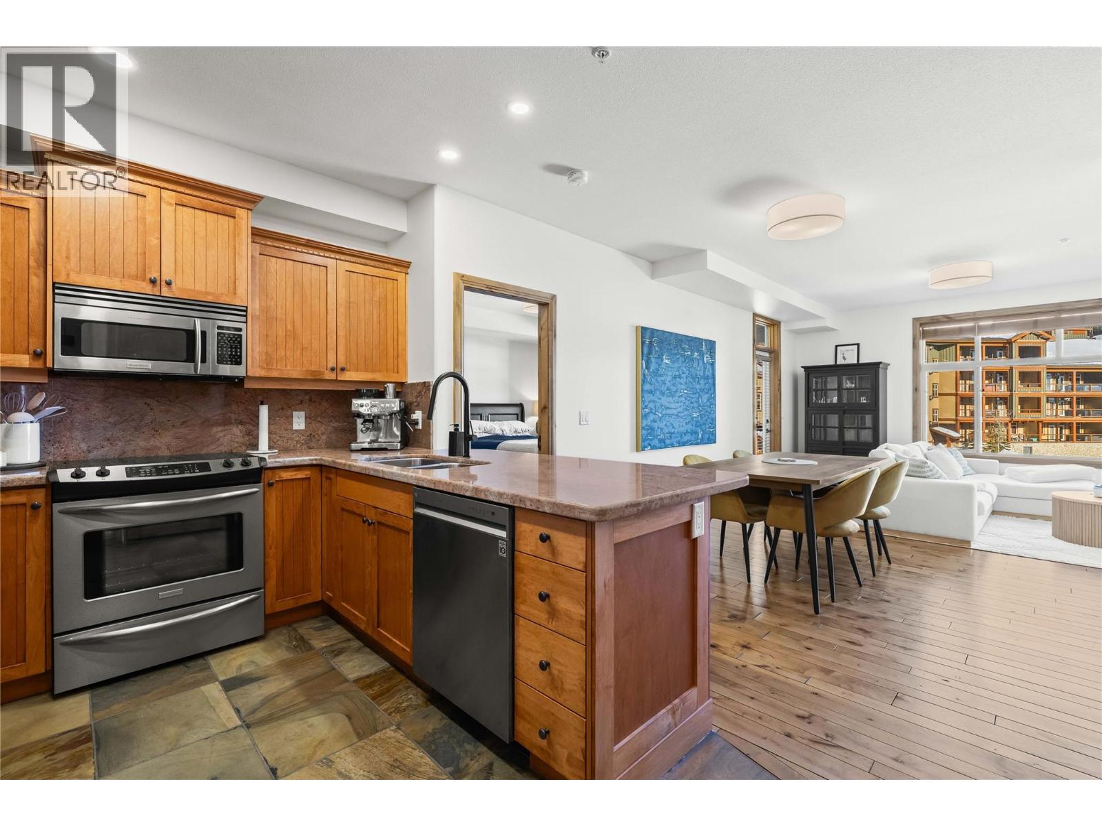 Own your piece of the Big White Ski Resort dream with true ski-in, ski-out access to five major lifts and unforgettable mountain views that never get old. From the moment you arrive, the heated slate entry welcomes you into a space where luxury meets warmth, highlighted by distressed hardwood floors, a dramatic floor-to-ceiling stone fireplace, and expansive windows that pull the outdoors in. The kitchen is designed for gathering after long ski days, featuring polished granite countertops, top-quality stainless steel professional appliances, and timeless maple shaker cabinetry. Step out onto the decks where crisp mountain air, space for a bubbling hot tub and BBQ, and the quiet of the alpine surroundings set the stage for legendary après-ski and summer evenings. Thoughtful and unique design details throughout, private ski lockers, and a completely turn-key offering make ownership effortless in the coveted Aspens building. With no rental restrictions and the ease of direct flights into Kelowna International Airport from major cities, this is not just a property — it’s a lifestyle, an investment, and your front-row seat to everything Big White has to offer. Exempt from the Foreign Buyer Ban, foreign buyer tax, speculation tax, empty homes tax, and short-term rental restrictions, this property offers exceptional value and flexibility. With newly expanded access to Big White via direct flights from Los Angeles, Toronto, and Montreal, and located just one hour from YLW, this is a rare opportunity to live where you play. (id:58842)