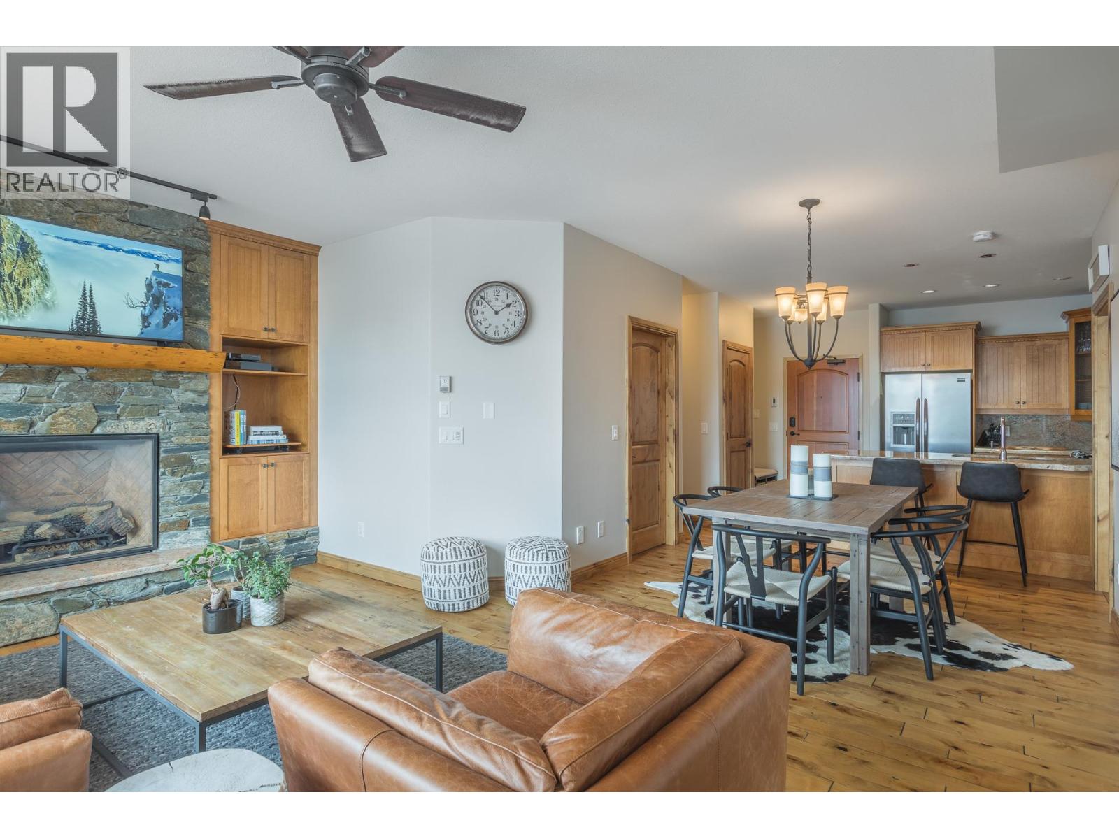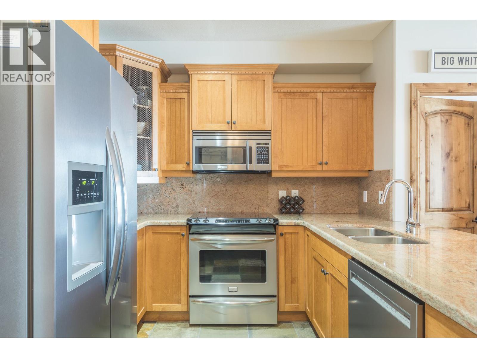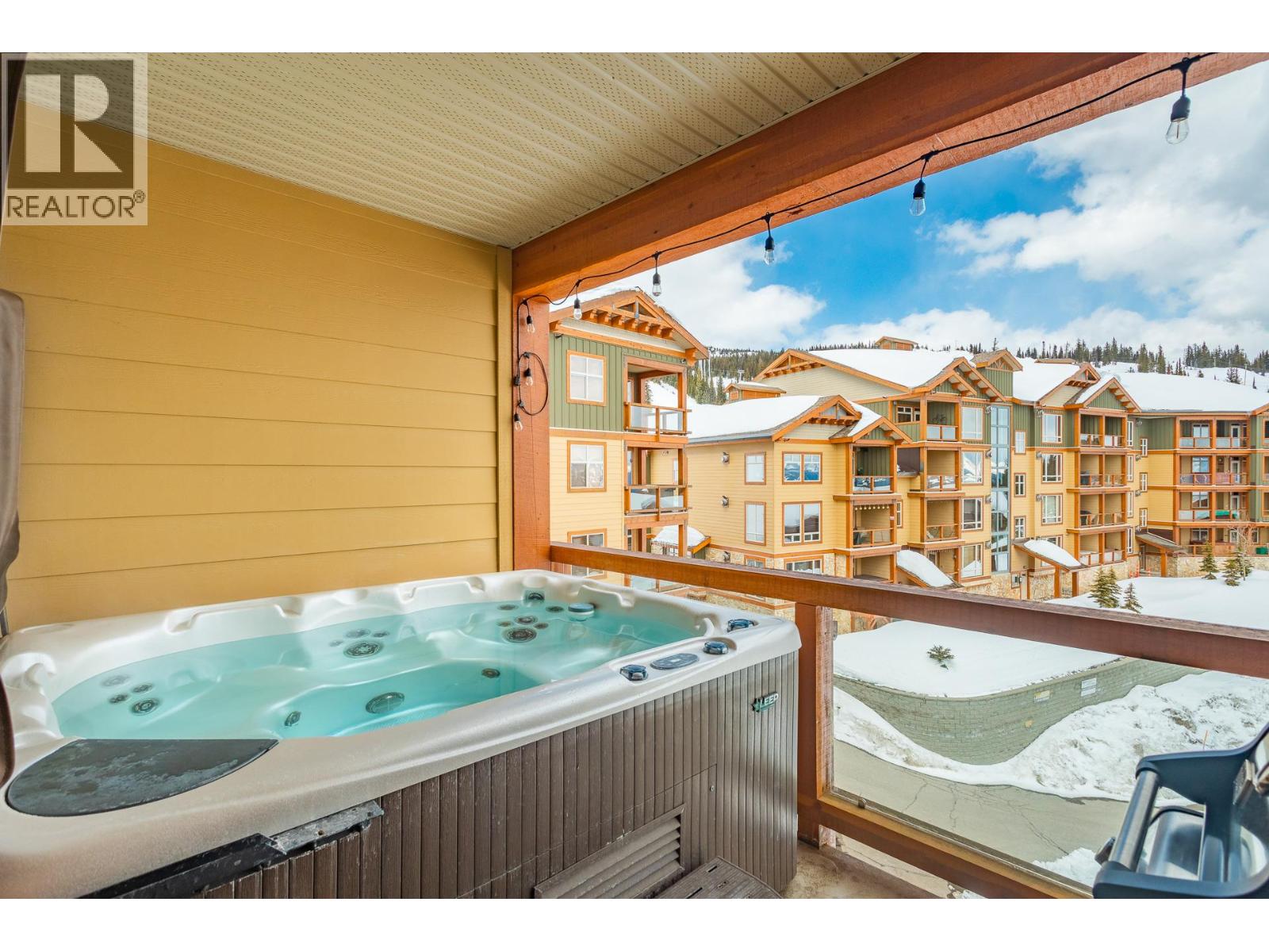 Welcome to your very own TOP FLOOR alpine retreat at Big White Ski Resort with your own PRIVATE HOT TUB! This 2 bedroom, 2 bathroom condo blends chalet charm with investor-friendly benefits, the Aspens offers true ski in/out access and sweeping mountain views that create a serene year round backdrop. The bright and welcoming open kitchen with excellent storage has granite counters and a sit up bar for entertaining. This leads into the dining and spacious living room anchored by a stone faced gas fireplace with built in storage and a large window that pours in natural light. A private balcony off the living room features a dedicated hot tub, a true highlight and perfect for apres ski soaks and Summer nights under the stars that extend your living space outdoors. The generously sized primary and second bedroom, sit on opposite ends of the unit for privacy, and the ensuite offers a glass door shower and ample storage, while the overall layout keeps entertaining and everyday living effortless. There is in-suite stacked laundry and a dedicated ski locker that keeps gear ready for the next run, with easy access to village restaurants shopping & The Market. There is NO GST on this home, short term rentals are permitted and Big White is exempt from foreign buyer and spec taxes, offering flexibility and peace of mind. Enjoy a lifestyle retreat that also performs as an income ready investment for ski enthusiasts and investors. (id:58842)