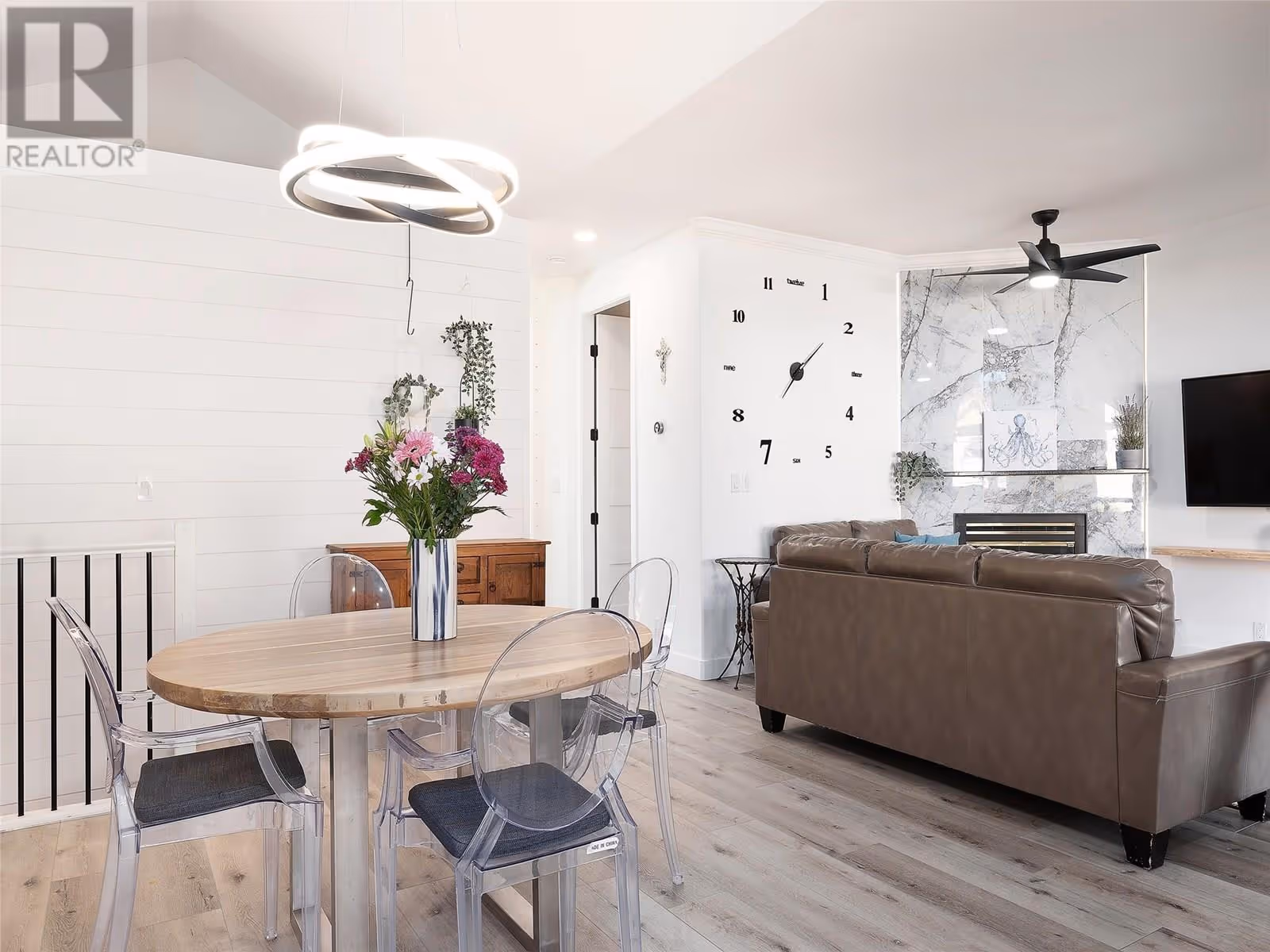 Located on the quiet, sunny side of Silverton on the Lake, this beautifully updated three-bedroom townhome includes a coveted 35-foot boat slip, a rare and valuable feature for lakefront living. Set within a peaceful, well-maintained community, this home offers a thoughtful mix of modern upgrades, functional design, and serene outdoor space. The open-concept main floor is ideal for entertaining, with a seamless flow between kitchen, dining, and living areas. Vaulted ceilings enhance the space, and updated 8-foot interior doors add a refined touch. Modern lighting includes recessed pot lights, ceiling fans, and powered roller shades for comfort and style. Tasteful finishes include custom-built closets with shiplap detail, new stair carpeting, and vinyl plank flooring throughout. Two tiled gas fireplaces provide cozy ambiance in the main living area and the third bedroom, currently used as a family room with access to the upgraded patio. The kitchen features quartz countertops, and the custom-tiled ensuite includes a spacious dressing room. Step outside to your private deck with new awning, ideal for BBQs. The Zen-inspired backyard includes lush plantings, a pergola over a 2 cm patio, and grassy area. A double garage and two extra parking spaces offer ample parking. Forced air heating and AC provide year-round comfort. Silverton is pet and rental friendly (with restrictions), making this a fantastic investment or full-time lakeside home. Two and a half bathrooms. (id:58842)