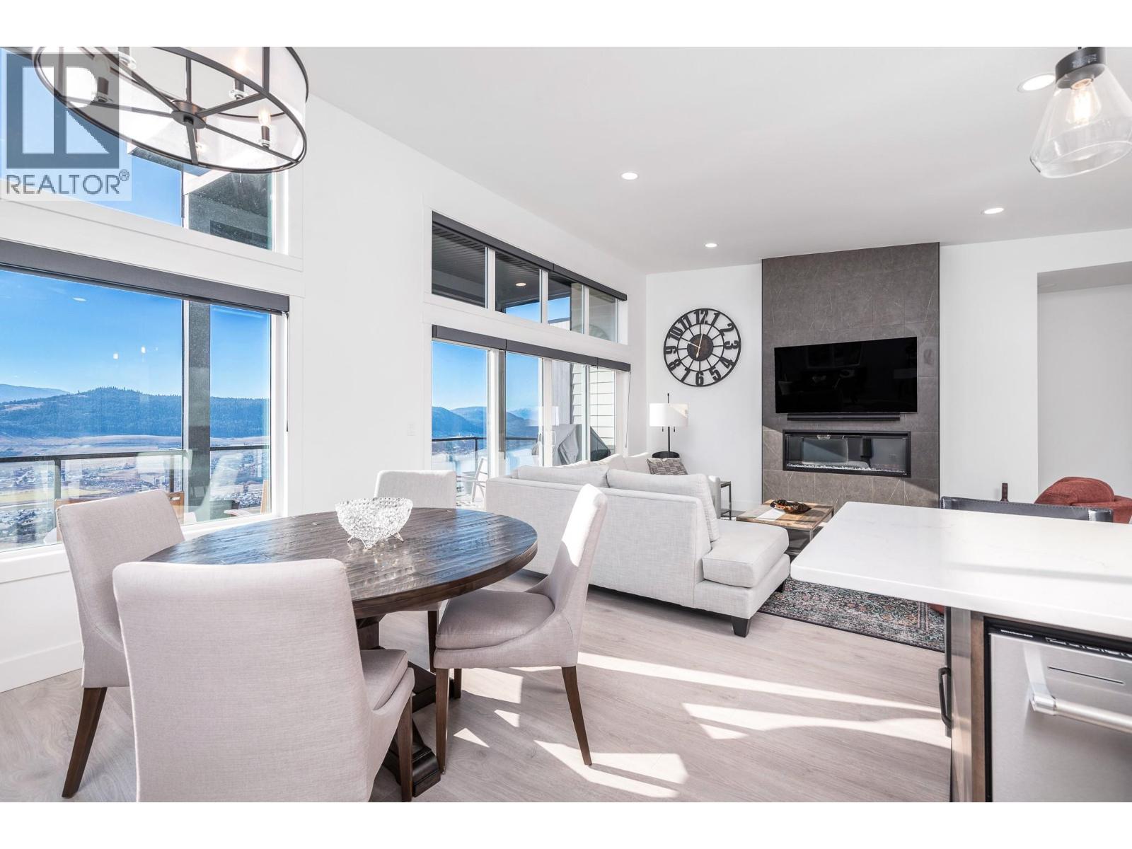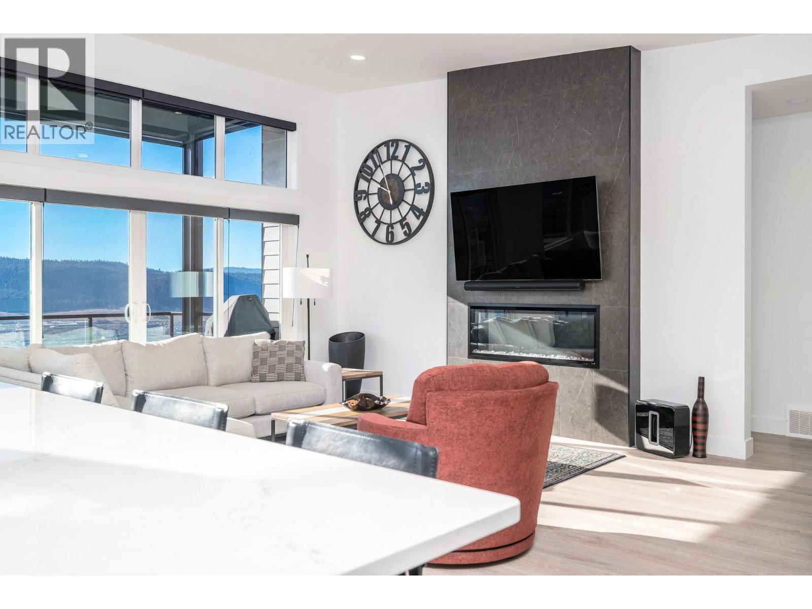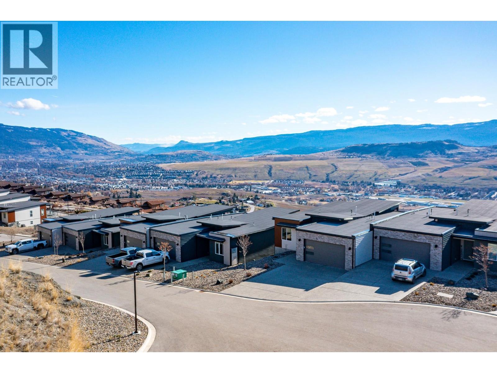 Spectacular 24-hour view! Panoramic valley and Okanagan Lake during the day and mesmerizing City of Vernon lights glittering at night. Located on a quiet cul-de-sac of only 10 homes, this townhome unit is perfect for an effortless lifestyle whether you are downsizing or just busy! The level entry main floor is designed for everyday convenience including open floor plan, primary suite & ensuite with heated floors plus second bedroom and bath and laundry! The great room includes a fabulous kitchen with quartz counters, huge island, butler’s pantry and high-end appliances! The walk-out lower offers 2 generous bedrooms, full bath, family room and loads of storage – perfect for family or guests! Nearly brand new with many thoughtful custom features through out! Soft white palette throughout enhances the view from the walls of windows and lofty ceilings on both levels! Full length, partially covered deck with automatic solar screens for sun and breezes. Full length covered patio that flows to the private greenscaped back yard. Many custom features! Vinyl flooring, all quartz counters, quality lighting, automated custom window blinds, hot water on demand, deep driveway and garage that will fit your truck! Scoot up to the Rise Golf Course and stop at The Edge restaurant for happy hour! (id:58842)