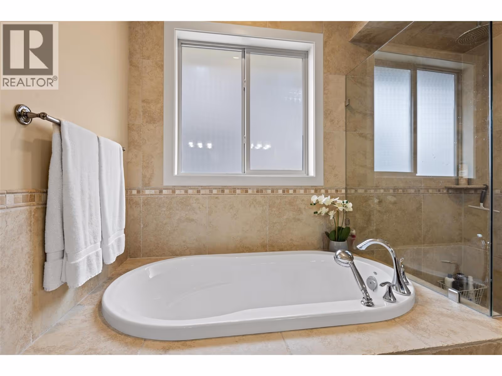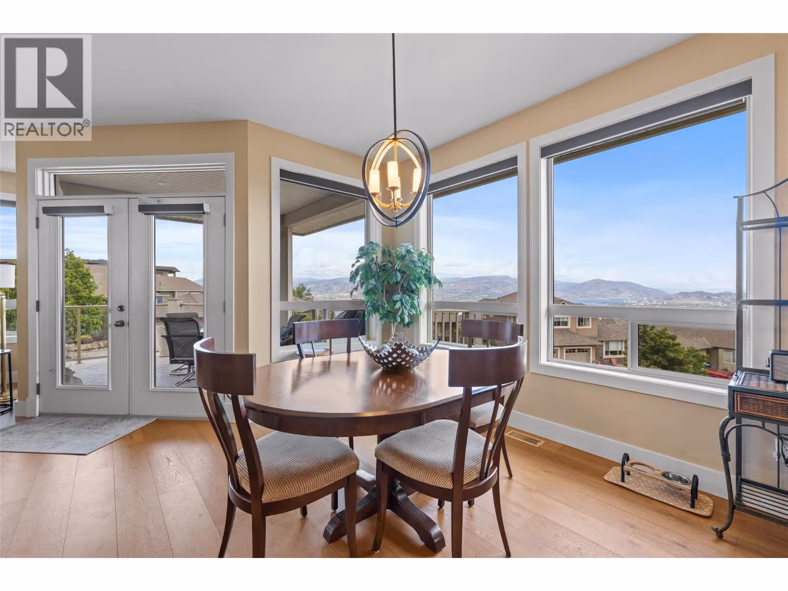 Amazing value in the Upper Mission! $100,000 below assessed! With sweeping 180-degree views of Okanagan Lake and the city skyline, this residence offers a perfect blend of craftsmanship, elegance, and modern comfort. The gourmet kitchen is a chef’s dream, featuring custom maple cabinetry, granite countertops, stainless steel appliances, a breakfast bar, and a spacious walk-in pantry, opening seamlessly to an expansive living area with marble entry, gas fireplace, and wall-to-wall windows framing the breathtaking vistas. The luxurious primary suite is a private retreat with a spa-inspired ensuite boasting a deep soaker tub, glass-enclosed shower, heated tile floors, dual sinks, and a generous walk-in closet. The lower level, which has suite potential, is designed for entertaining with a home-theatre-ready family room complete with surround sound and built-in speakers, a stylish wet bar with granite counters and beverage fridge, and a bonus room opening through French doors to a private patio. Three additional bedrooms, a well-appointed bathroom, high-efficiency furnace with heat pump, built-in vacuum, and security wiring add to the home’s functionality. Outdoors, enjoy over 400 square feet of wraparound decking, a double garage, and fully landscaped grounds with underground sprinklers, creating a serene and prestigious Okanagan retreat. (id:58842)