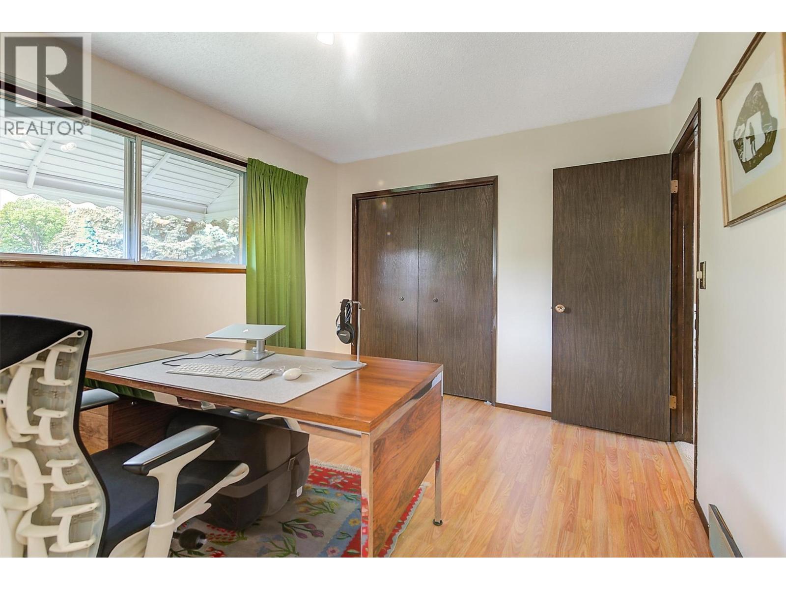 IMMACULATE! Character, charm, location, and future potential—this Rutland South original has it all. Selling on the MLS for the first time, this lovingly maintained 3-bedroom (all on one floor) plus den, 2-bathroom home is full of warmth and pride of ownership. Tucked on a peaceful, tree-lined street, enjoy a quiet established neighborhood close to schools, parks, Mission Creek Regional Park, shopping, and transit all ideal for couples, families and investors too. Inside, a bright, functional layout is filled with natural light, perfect for everyday living and entertaining. Cozy up by the gas fireplace or step outside to your private backyard retreat with covered deck/sunroom, mature trees, and a spacious, level yard, making it a haven for gardening, BBQs, and family fun. Features include water softener and RO system, attached garage, workshop, tool shed, and meticulously landscaped front and back yards. The versatile floor plan offers 3 bedrooms up and an office down. Bonus: Basement has excellent potential for a separate suite ~ great for extended family or a mortgage helper. This classic Rutland beauty is ready for its next chapter. Note: Listing Photos were taken in season. (id:58842)