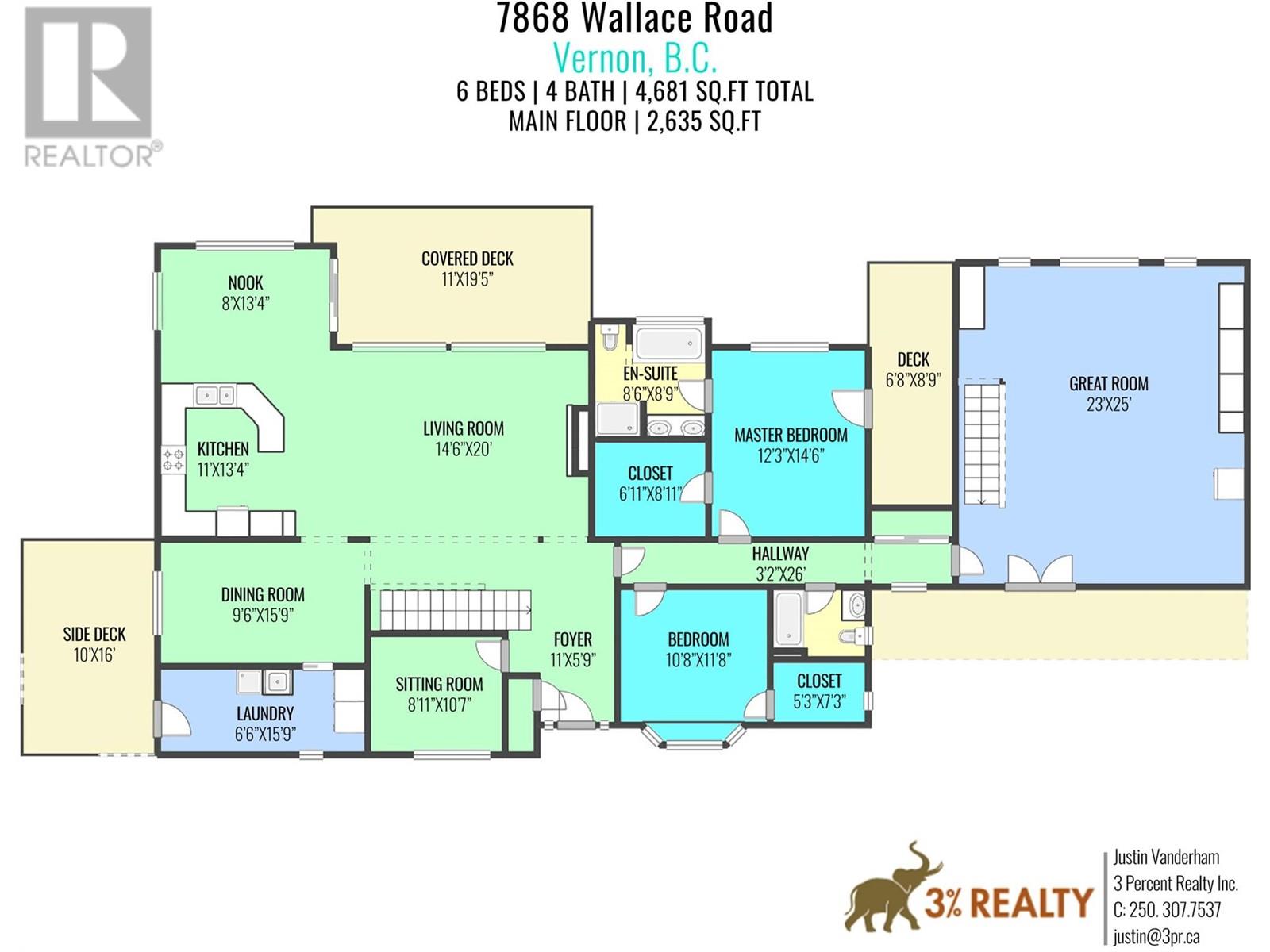 Nestled on 6.14 acres, 7868 Wallace Road is your amazing opportunity to own beauty in this expansive 7-bedroom, 4-bath home. Just like some private retreat it is just 15 minutes to Silverstar Ski Resort and 10 minutes to Village Green Mall. The main 4681 sq/ft home has been extensively renovated, with a new foundation (2012) and fully updated interior. The main floor features a chef’s kitchen with custom cabinetry, a cozy wood insert (zero clearance) fireplace, and stunning views of the backyard and Kalamalka Lake. Upstairs, the master suite includes a 5-piece ensuite, large walk-in closet, and clear lake views. The home offers 3 bedrooms up and 4 down, plus a large recreation room and a custom kids’ playroom with tree fort. High-end mechanical systems include radiant floor heating, a natural gas furnace, and a boiler for hot water. A high-end septic system handles all living units. For extra income or family space, the isolated 1-bedroom suite (358 sq/ft) with a separate entrance rent. Above the suite is a 23’ x 25’ room, perfect for a studio, bike/ATV storage, or other ideas. BONUS! A cozy, clean 552 sq/ft cottage/cabin with TnG walls, loft deck. The property offers a stunning backyard with kids fort & with winding wooded trails. With 2 lane ways and the perfect gentle slope, you could build a stunning multi door garage with a drive through design and maybe walkout area for toys and tools. This home is move-in ready and offers endless potential! Welcome Home!! (id:58842)