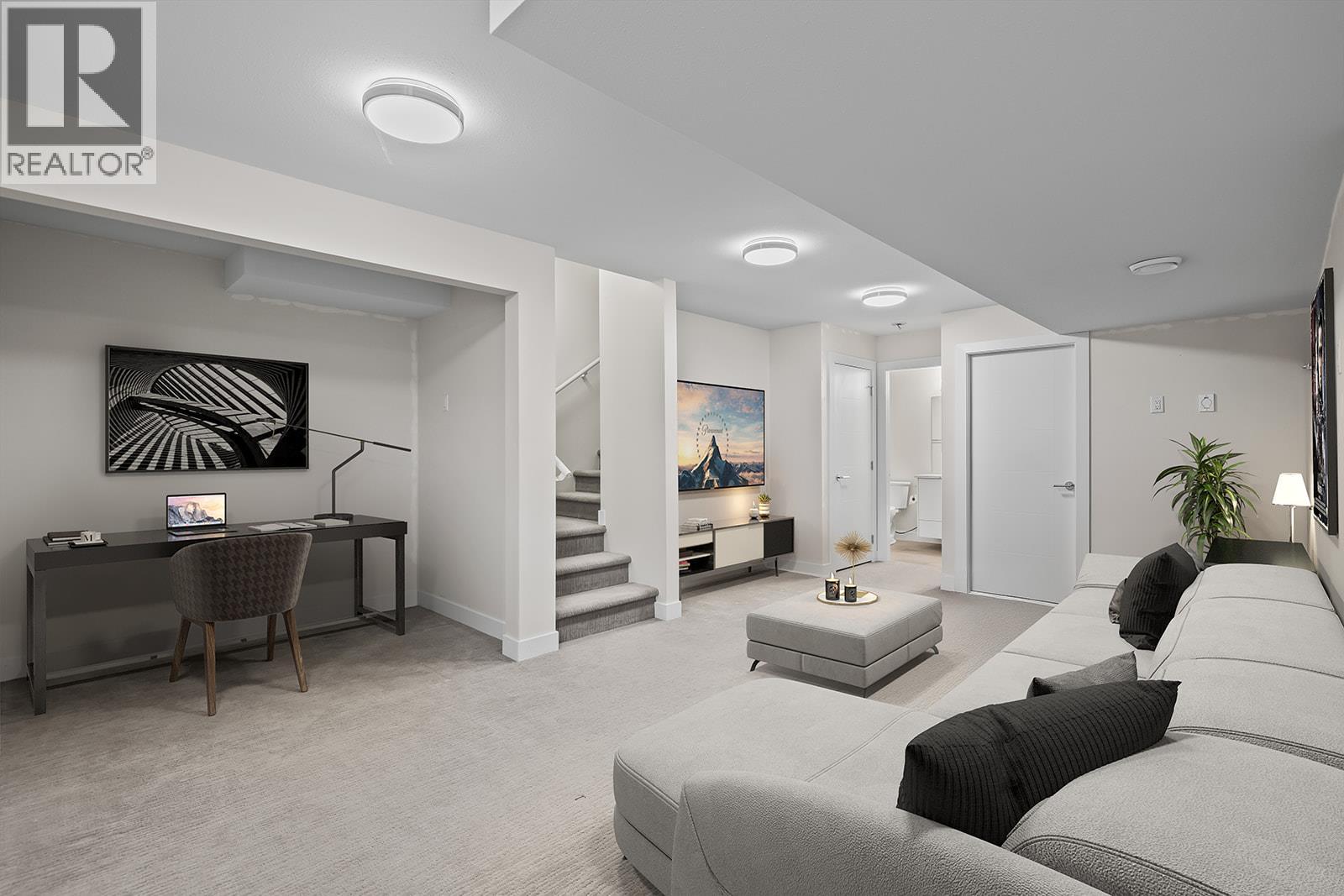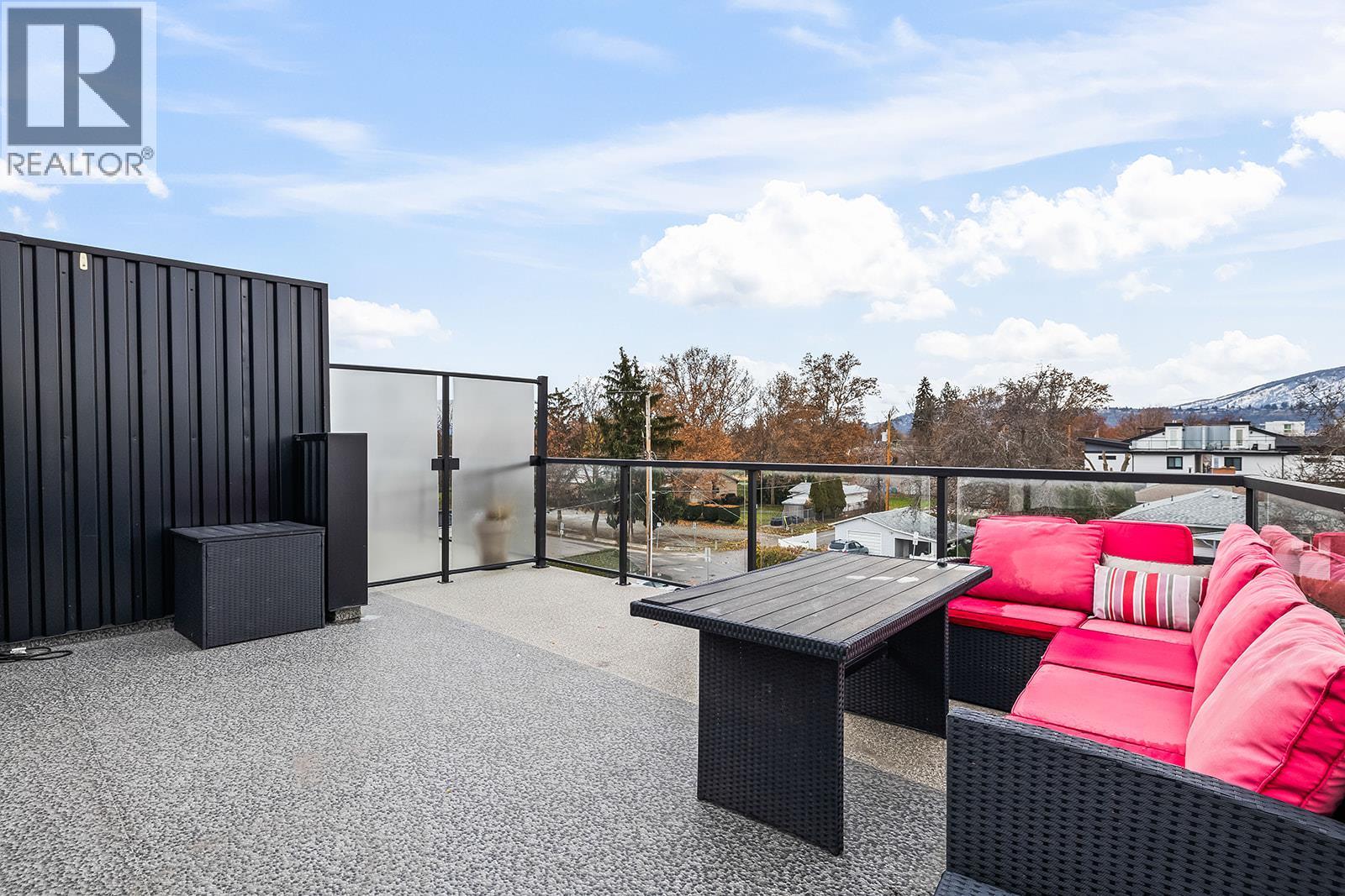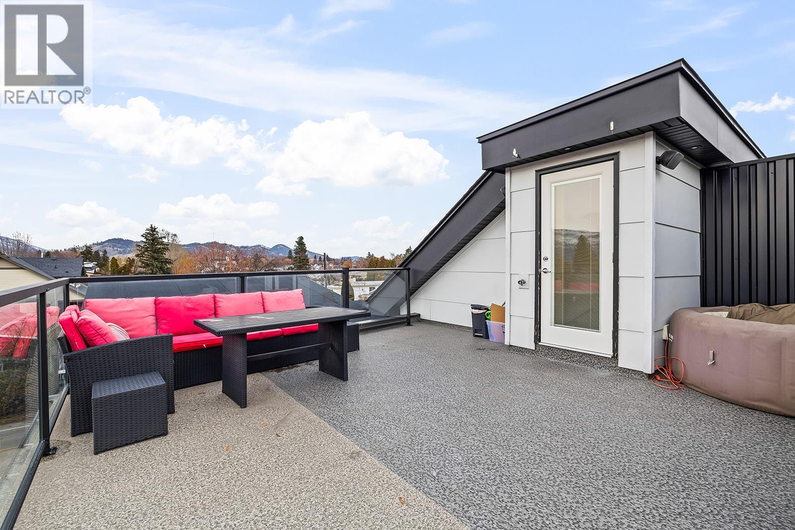 Stunning contemporary style townhome located in desirable South Kelowna - just a short walk to the beach, hospital, and South Pandosy shopping. 4-plex design with low strata fees & high-end finishings. Fantastic outdoor space featuring private roof top deck which is engineered for a hot-tub and plumbed for gas barbeque, plus there is a main floor side yard deck. 2 storey design unit with 2 beds, 2 baths and laundry on the 2nd floor. Open main floor with oak hardwood floors, built-in dining room bar with wine fridge, island kitchen with high quality stainless steel appliances including 5 burner gas range, plus half bath. Lower level consists of a large rec room which could be converted into a den plus a flex room. This level also features a full bathroom. Quality upgrades include quartz counter-tops, engineered hardwood floors, 3 zone home audio system, tank-less hot water heating frame-less glass shower, epoxy garage floor with glass/aluminum garage door. No rental or pet restrictions & low strata fees! Fantastic location, gorgeous designs and high-end finishings! (id:58842)