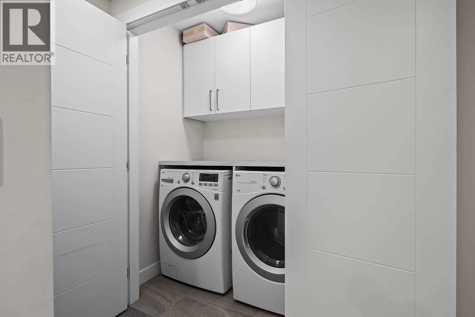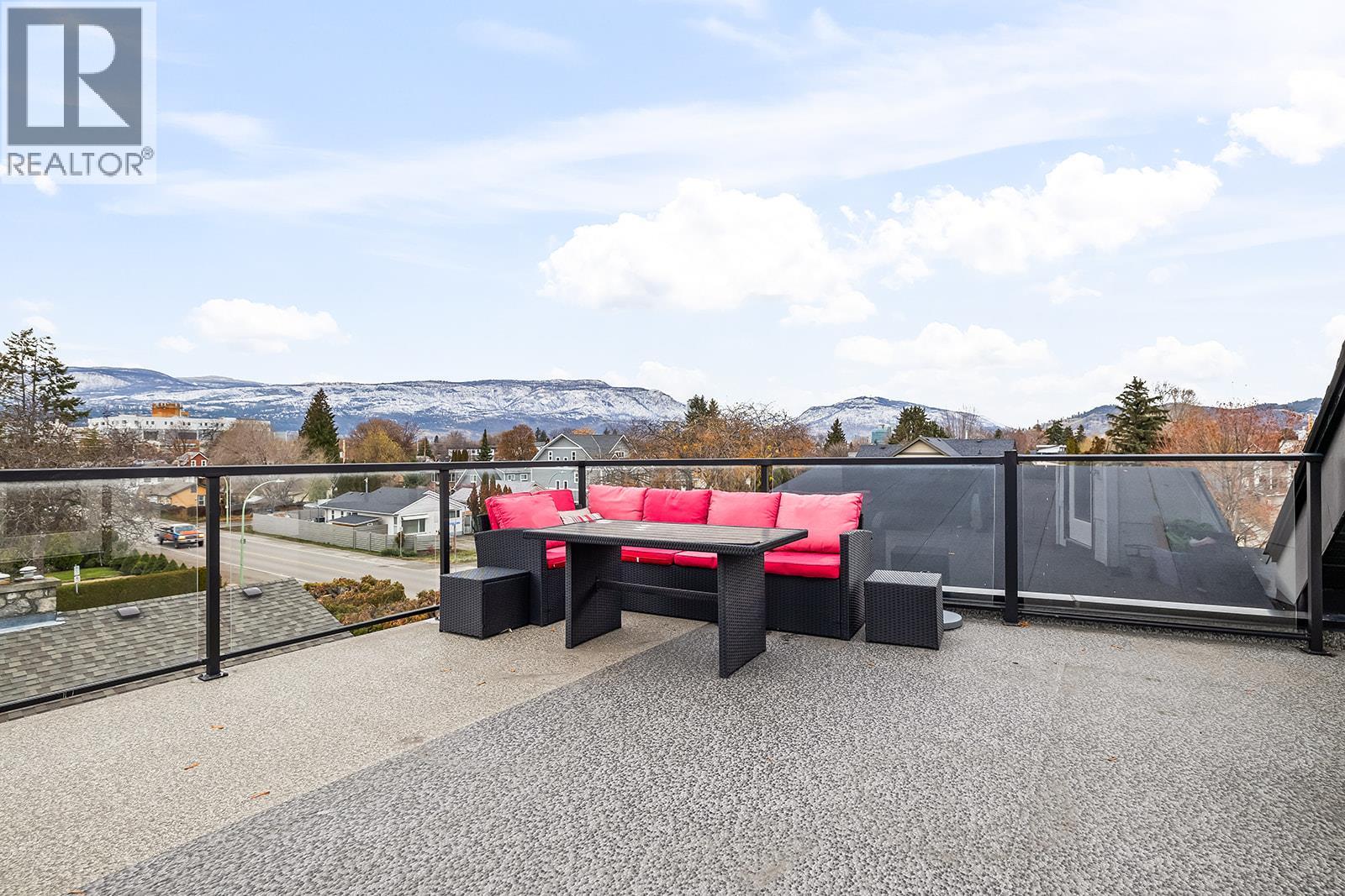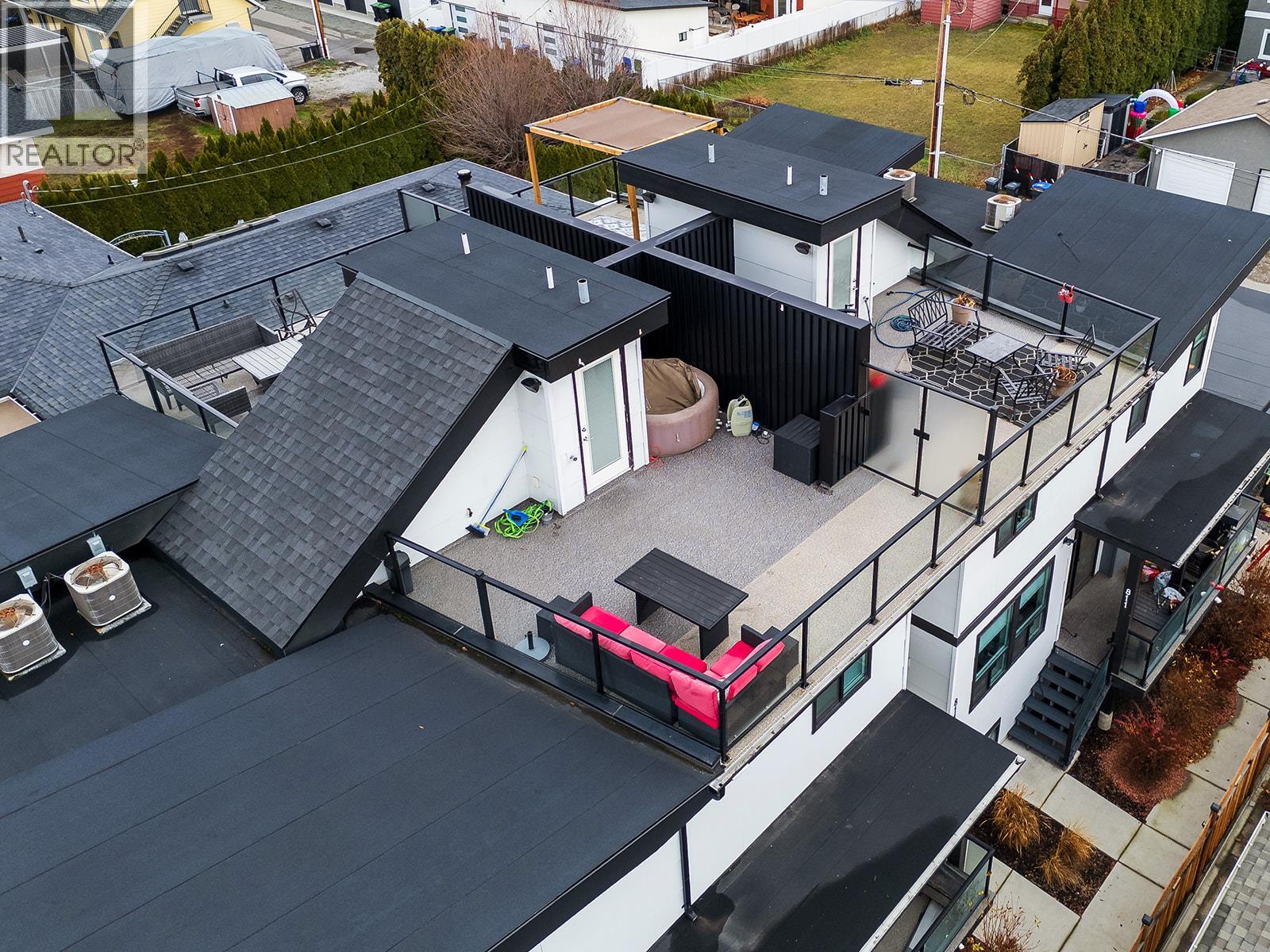 Stunning contemporary style townhome located in desirable South Kelowna - just a short walk to the beach, hospital, and South Pandosy shopping. 4-plex design with low strata fees & high-end finishings. Fantastic outdoor space featuring private roof top deck which is engineered for a hot-tub and plumbed for gas barbeque, plus there is a main floor side yard deck. 2 storey design unit with 2 beds, 2 baths and laundry on the 2nd floor. Open main floor with oak hardwood floors, built-in dining room bar with wine fridge, island kitchen with high quality stainless steel appliances including 5 burner gas range, plus half bath. Lower level consists of a large rec room which could be converted into a den plus a flex room. This level also features a full bathroom. Quality upgrades include quartz counter-tops, engineered hardwood floors, 3 zone home audio system, tank-less hot water heating frame-less glass shower, epoxy garage floor with glass/aluminum garage door. No rental or pet restrictions & low strata fees! Fantastic location, gorgeous designs and high-end finishings! (id:58842)