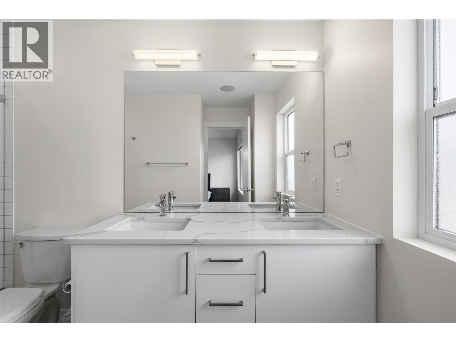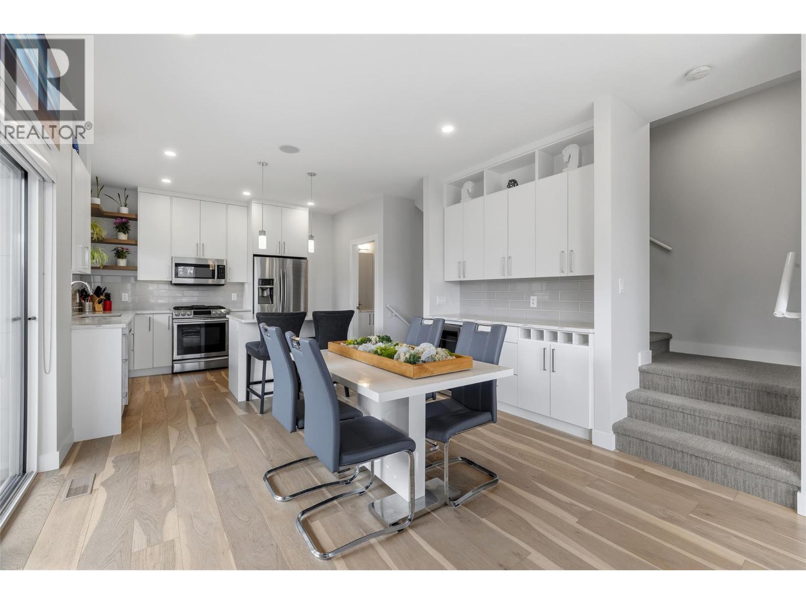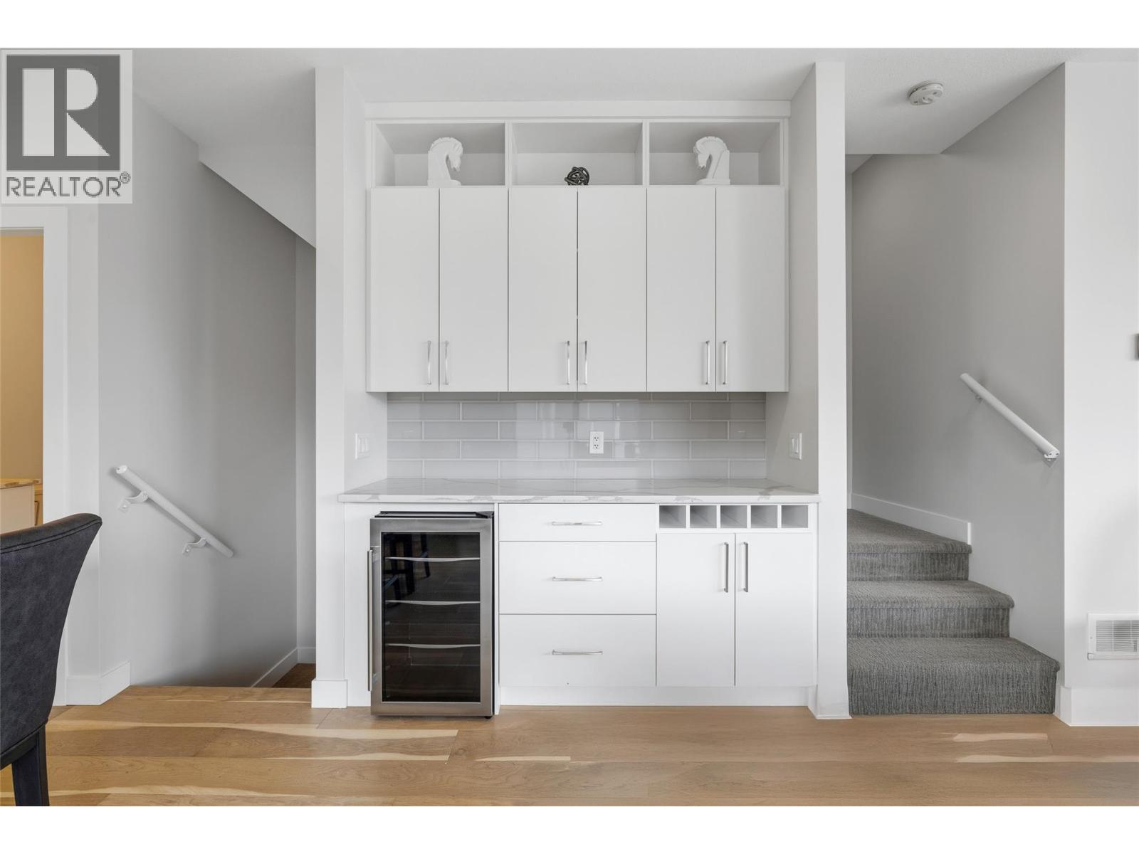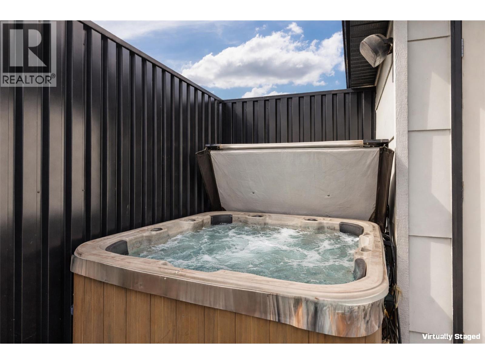 Situated in sought after KELOWNA SOUTH, close to the amenity rich SOUTH PANDOSY (""SOPA"") neighbourhood, you'll love the convenience of this INCREDIBLE LOCATION and the brilliance of this PERFECT HOME. This home ""checks all the boxes"" as it includes a PRIVATE ROOFTOP DECK (with hot-tub), a SECURE GARAGE, an AMENITY RICH LOCATION and a PERFECT FLOOR PLAN. Inside you'll love the open concept design, modern paint colors (freshly painted) and high end finishings. The kitchen is stunning; offering lots of cabinet & counter space (quartz counter-tops), stainless steel appliances, plus beautiful hardware and backsplash. A built-in dining room bar (with wine fridge) and an oversize living room provide an ideal space for entertaining. Easily accessed from the kitchen is an oversize deck, ideal for BBQing or a morning coffee. The second floor offers 2 bedrooms and 2 bathrooms, plus laundry. The primary bedroom retreat includes a walk in closet and a gorgeous ensuite. Go up a few stairs and you're sure to be impressed by the private rooftop deck. The rooftop deck provides great views, is plumbed with gas (for bbq), includes a hot-tub, and offers room for most any patio furniture set. Downstairs, the lower level provides a FULL WASHROOM plus a huge and open space offering lots of options (media room, games room, or perhaps you add a 3rd bedroom). Extras include brand new paint, tankless hot water heater, quartz counters throughout, no pet restrictions and a low monthly $100 strata fee. (id:58842)