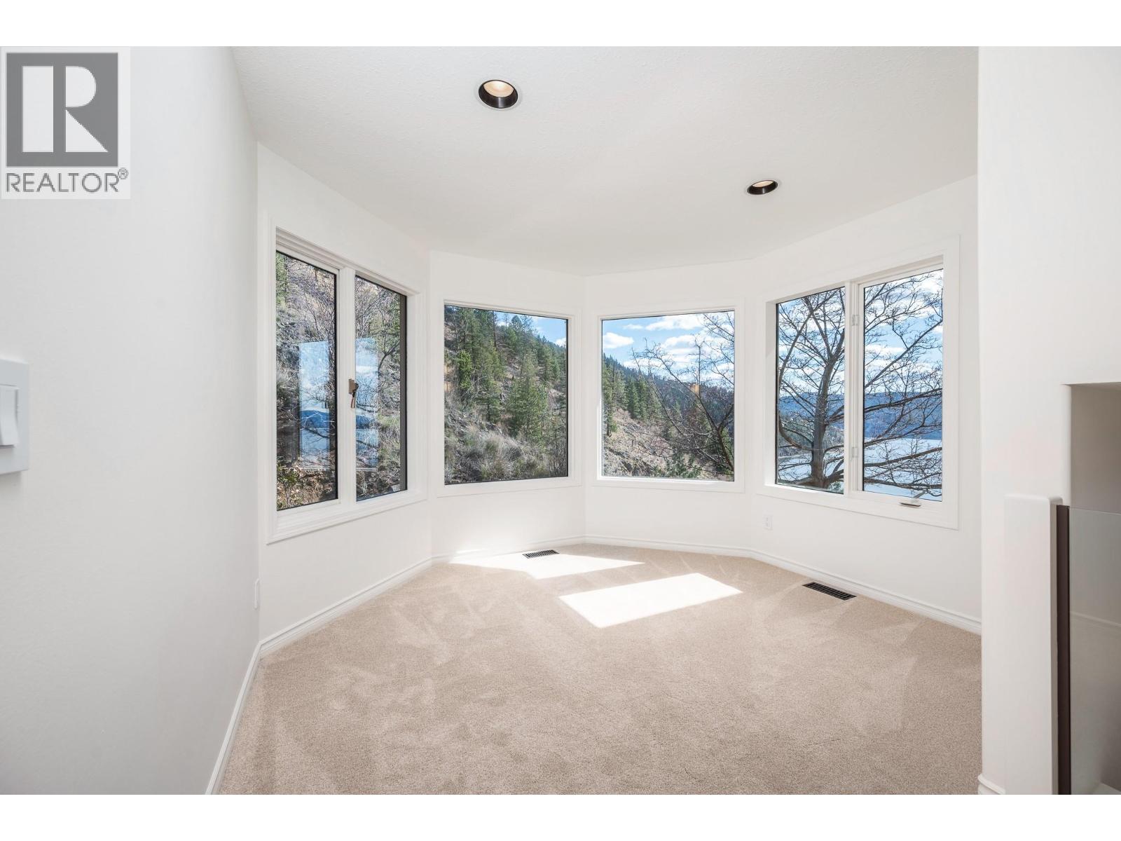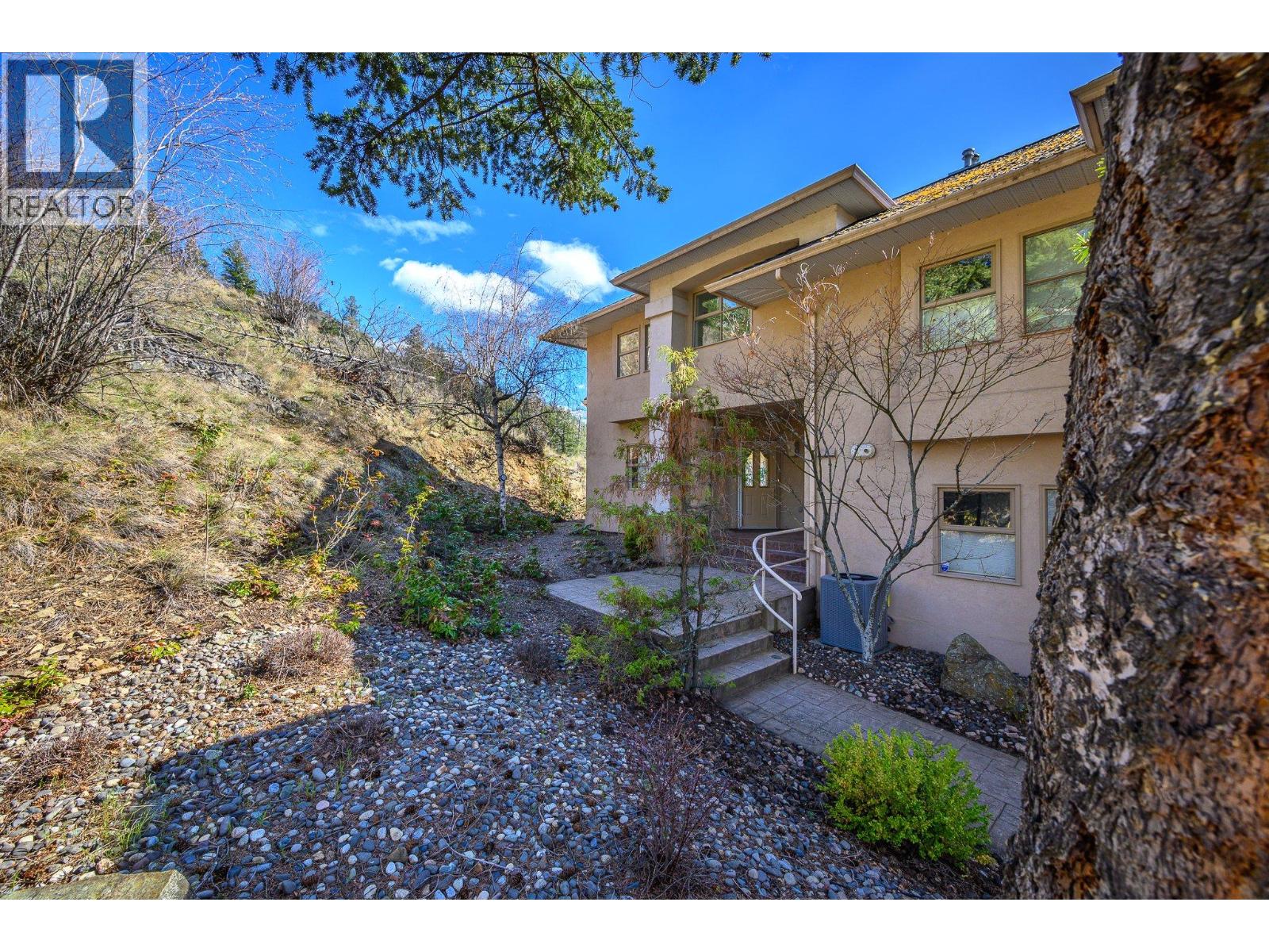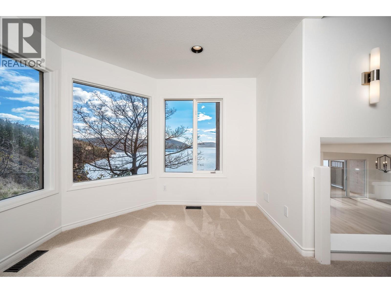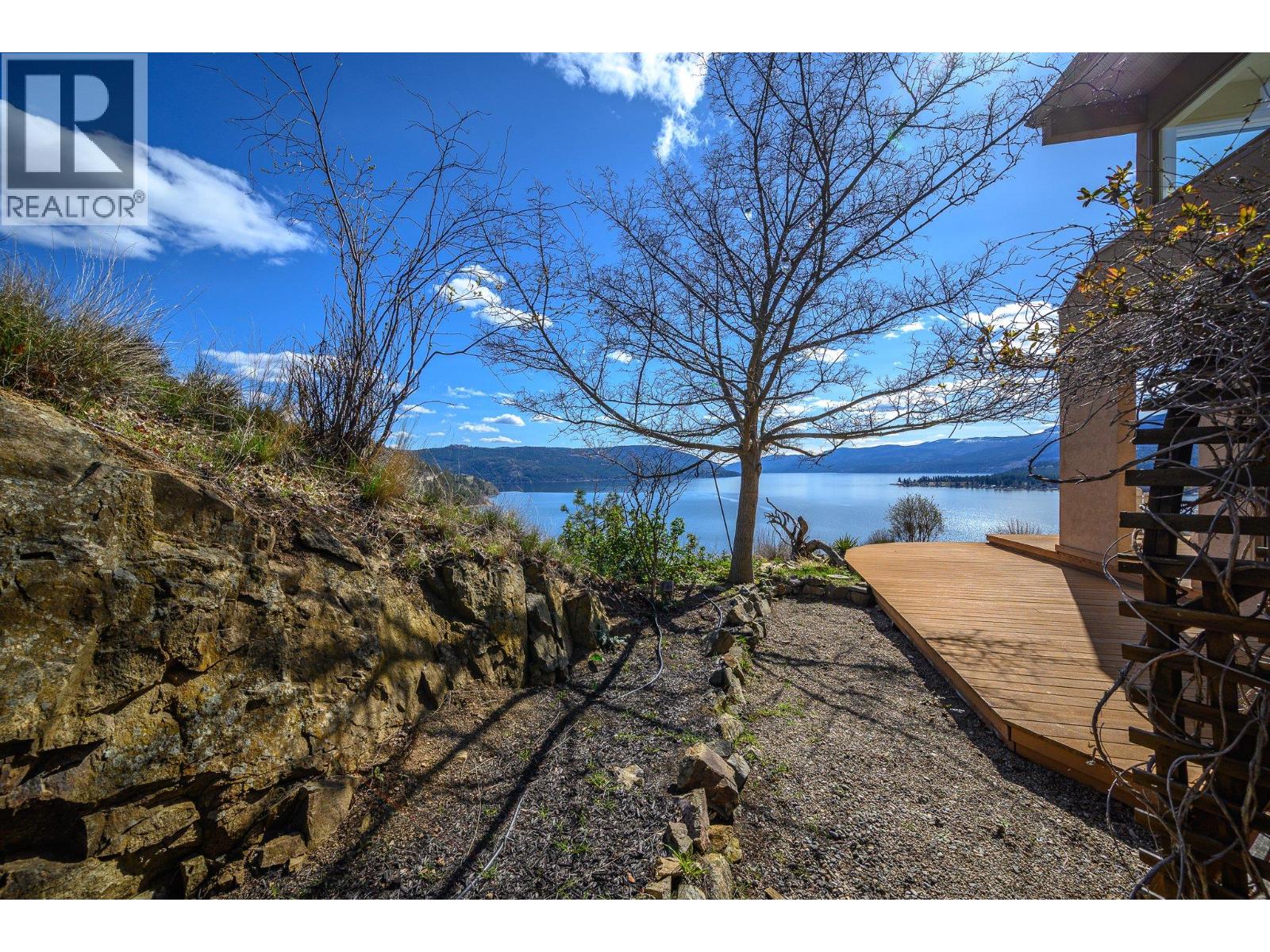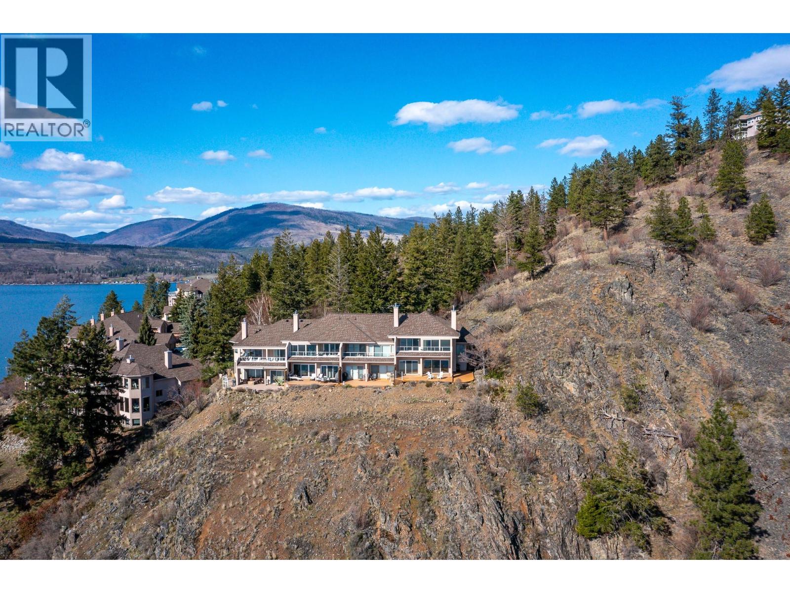 Perched on the bluffs of Okanagan Lake, this stunning end-unit townhouse offers 3 bedrooms + den, 2 bathrooms, and sweeping lake views from almost every room. With no neighbors on one side, this home feels completely private, surrounded by nature and panoramic vistas that set it apart in Peregrine Point Estates. Offering lock-and-leave convenience, year-round living, or a recreational retreat, this beautifully updated home - on the market for the first time ever - has it all! Bright living, dining, and kitchen areas feature a gas fireplace and abundant natural light, perfect for entertaining or relaxing. Upstairs the massive primary bedroom captures the incredible lake view and opens onto a balcony for sunrise and sunset views plus a private ensuite and walk in closet, The large second bedroom also enjoys balcony access and a gas fireplace. A smaller third bedroom, versatile den/sunroom, a convenient storage room + crawl space add functionality and practicality. Many thoughtful updates include fresh paint, new flooring and carpet, lighting, updated plumbing, and a new hot water tank (plus more), offering peace of mind. Residents enjoy a gated, pet-friendly community with over 500’ of private beachfront, dock, swimming, boat launch, walking paths, tennis/pickleball courts, picnic areas, and a charming gazebo. Parking includes a single garage, an extra outdoor stall, and ample guest spaces. This is a truly turnkey lakefront lifestyle opportunity. Don't miss the virtual tour! (id:58842)