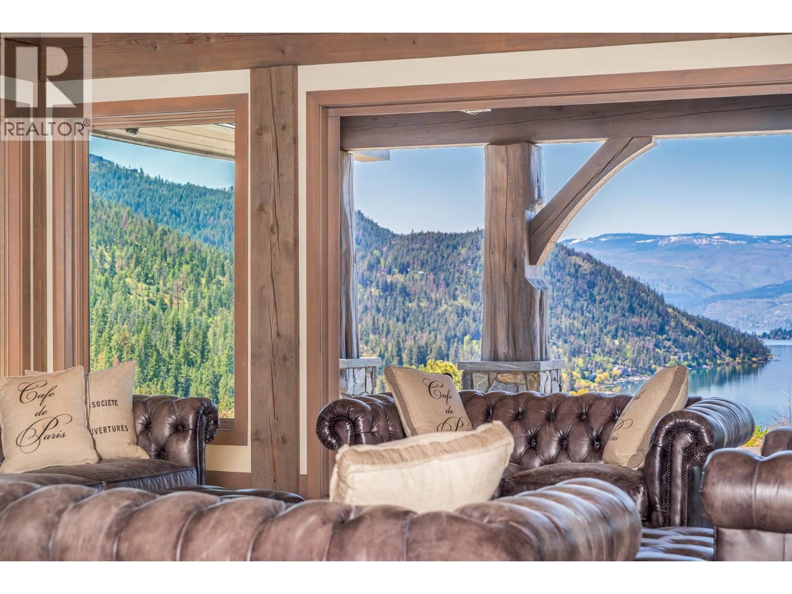 OKANAGAN RANCH - A once in a Lifetime Trophy Estate Property. A rare opportunity to own a breathtaking estate at the end of Bench Row Road. Gated and private, this gently rolling 25.65-acres is fenced and cross-fenced in solid 2x8 fir plank fencing. Irrigation ready for connection. Just picture your horses or future vineyard here! Perched on the knoll to take command of the 180 degree; south-facing views of Okanagan Lake, this custom Timber Frame ranch-style home blends seamlessly with the landscape. This Heartwood Homes masterpiece, offers over 4,100 sqft on each level with a showpiece custom spiral staircase connecting the two. Impressive timbers, natural stone, walls of glass and hardwood floors set the stage for exquisite lighting, custom kitchen with Wolfe and Subzero appliances, and stunning RH chandeliers and fixtures. Five bedrooms, 4 full and 3 half baths, amazing custom office, media room, wet bars, sauna, and massive games/entertainment spaces. Heated floors, security, every convenience! Plans for future lakeview pool off the massive patio! The 3 bay- 60x40’ fully loaded deluxe drive-through shop features 50-amp RV hookups, full bath, laundry, office, custom cabinetry, surround sound, cameras and security. You will always know where Dad is! Second matching shop for outdoor storage too! From this serenity, you are mere minutes to the yacht club, beaches, parks, rail trail, world-class golf, wellness retreat, Silver Star Ski Resort, and Kelowna International Airport. (id:58842)