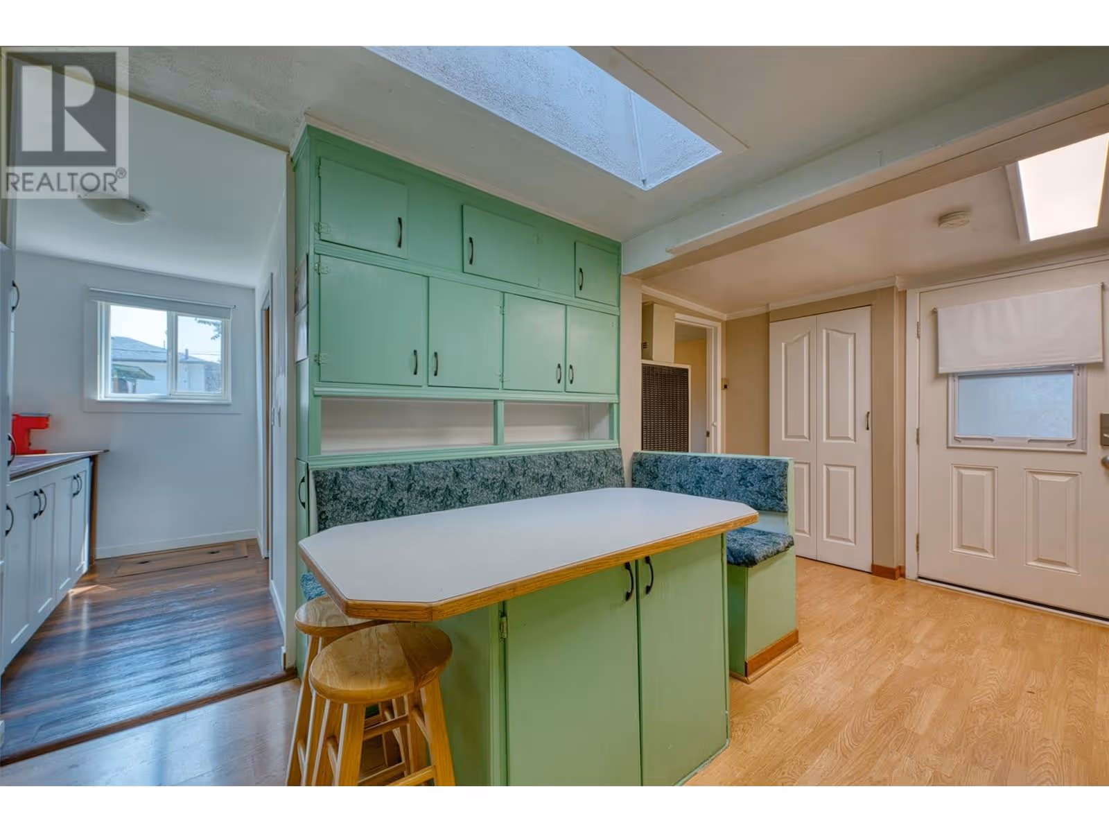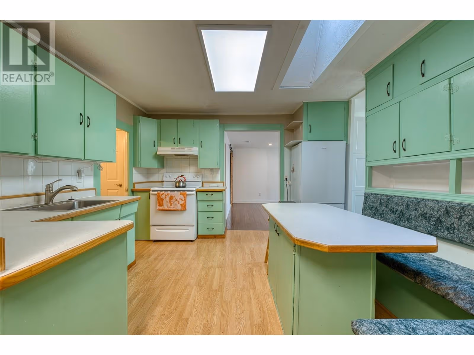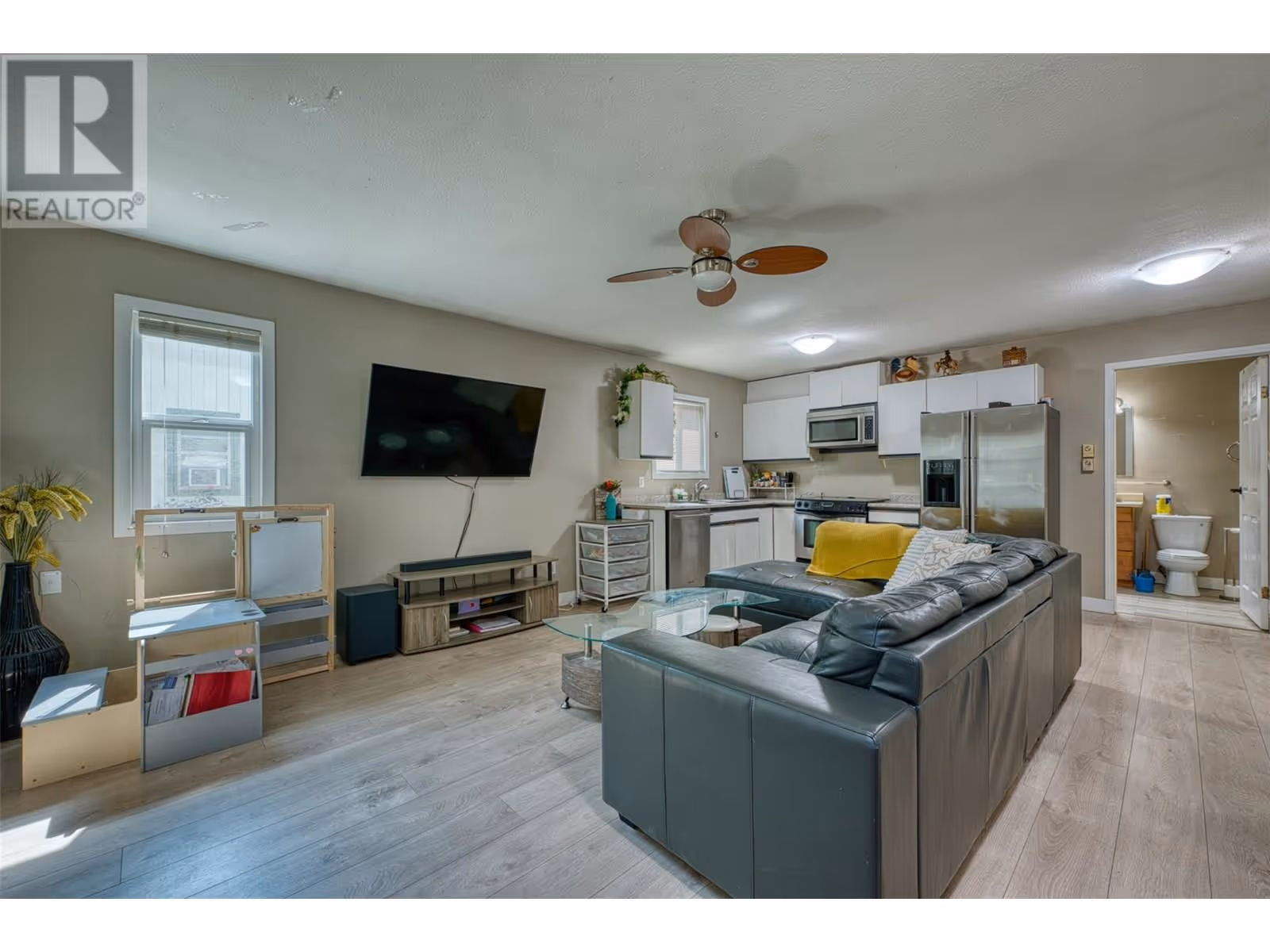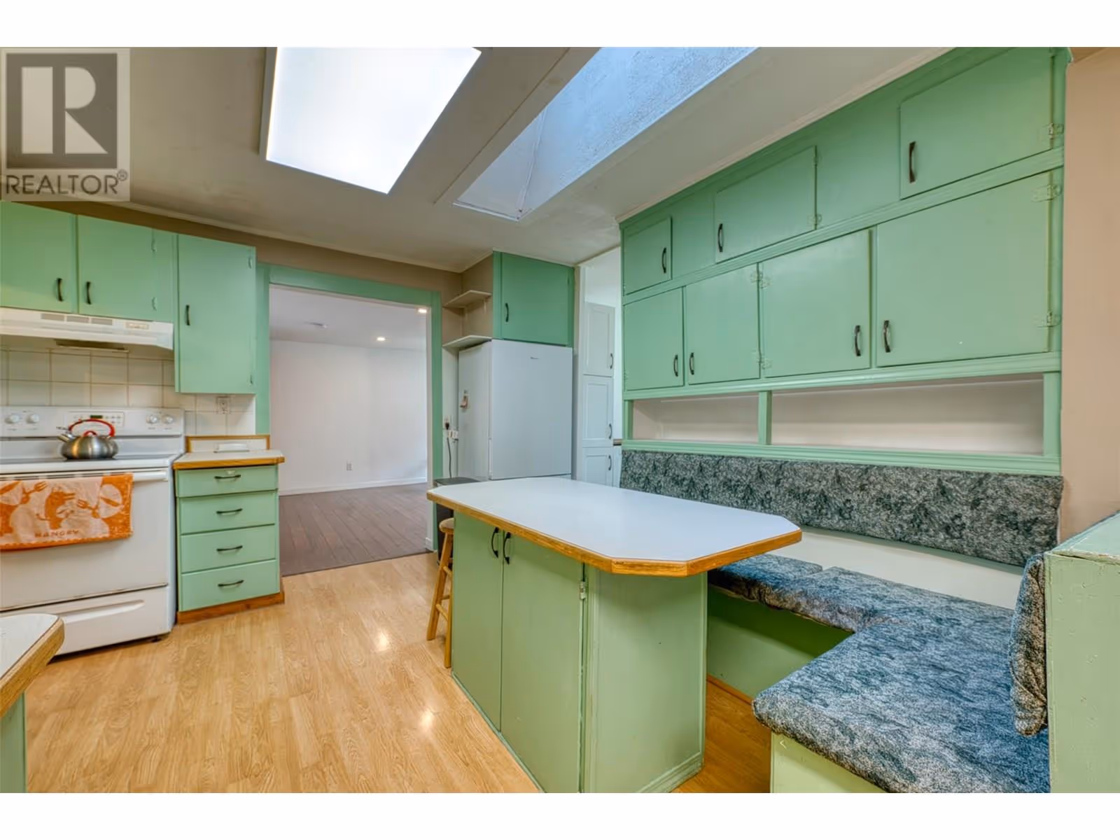 Two Fully Self-Contained Suites – 5 Beds, 3 Baths, Income Potential! Rare opportunity to own a full duplex-style property with two independent suites, each with private entrances, separate yards, and parking. Ideally located just a 10-minute walk to the lake, 35 minutes to Knox Mountain, and biking distance to KGH. Suite A (entrance off alley): 3 bedrooms including a bright corner primary with 3-piece ensuite and high-efficiency windows throughout. Main bath has been updated and features a tub. Character-filled kitchen with built-in dining nook and pantry/storage area. Living room warmed by an updated gas fireplace—very efficient. Fenced yard with dog run, storage shed, shop with covered patio, and underground sprinklers. 3 parking stalls off alley plus street parking. Suite B (entrance off Lawson Ave): 2 bedrooms with large closets, 1 full bath with tub, vanity, and extra storage cabinet. Laundry room (behind closet doors) with washer/dryer, hot water tank (replaced May 2025), and shut-off valves. Kitchen will be updated. Fully fenced yard, 2 storage sheds, 2 parking stalls, and street parking (city permits available). Includes portable A/C, underground sprinklers, and high-efficiency windows. Electric baseboard heat. Updated plumbing in 2017. Great investment, multi-gen living, or live in one suite and rent the other! (id:58842)