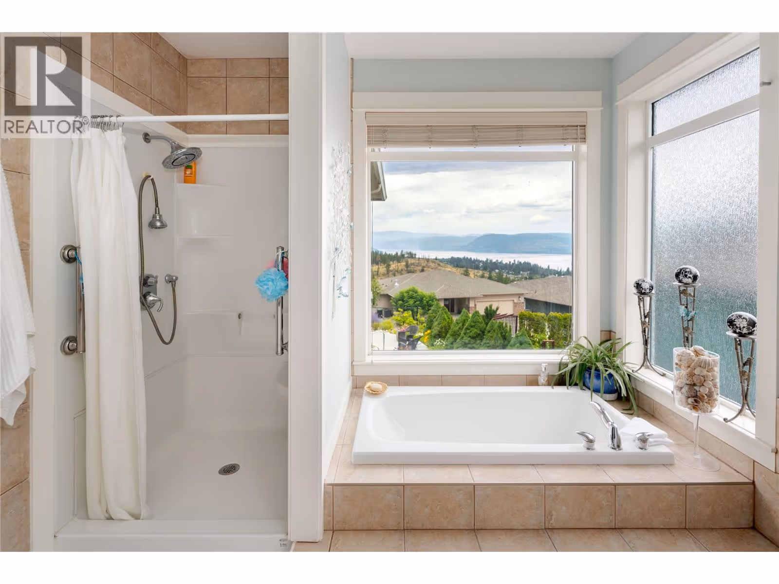 Welcome to 860 Kuipers Crescent! Located in one of the most desirable and sought after areas in the Upper Mission – known for its stunning panoramic views, family friendly atmosphere, and access to the outdoors – this immaculate 4-bedroom, 2.5-bathroom home is situated on a 0.20-acre lot and includes 3063 sq. Ft of living space with a huge oversized balcony offering breathtaking views of Okanagan Lake, and the heated in-ground pool below. The main level features a modern design with vaulted ceilings, bright open living spaces, and calming neutral colours throughout. The kitchen is equipped with solid wood cabinetry, granite countertops, and stainless-steel appliances, including gas range. The primary bedroom offers a luxurious 5-piece ensuite with a large soaker tub perfectly positioned to take in the stunning views. This level also includes a second bedroom (ideal as an office or den), a powder room, and a spacious mudroom/laundry area. The lower level features a second kitchen and huge recreation room with direct access to the pool deck. The lower level is finished with two additional bedrooms, bathroom and mechanical room. Located in the Upper Mission, this home is just a short drive from the newly built Mission Village at the Ponds, home to a range of convenient amenities like Save-On-Foods, Shoppers Drug Mart and Starbucks. Enjoy nearby world-class wineries as well, including CedarCreek Estate Winery and Martin’s Lane Winery. New carpets throughout. (id:58842)
