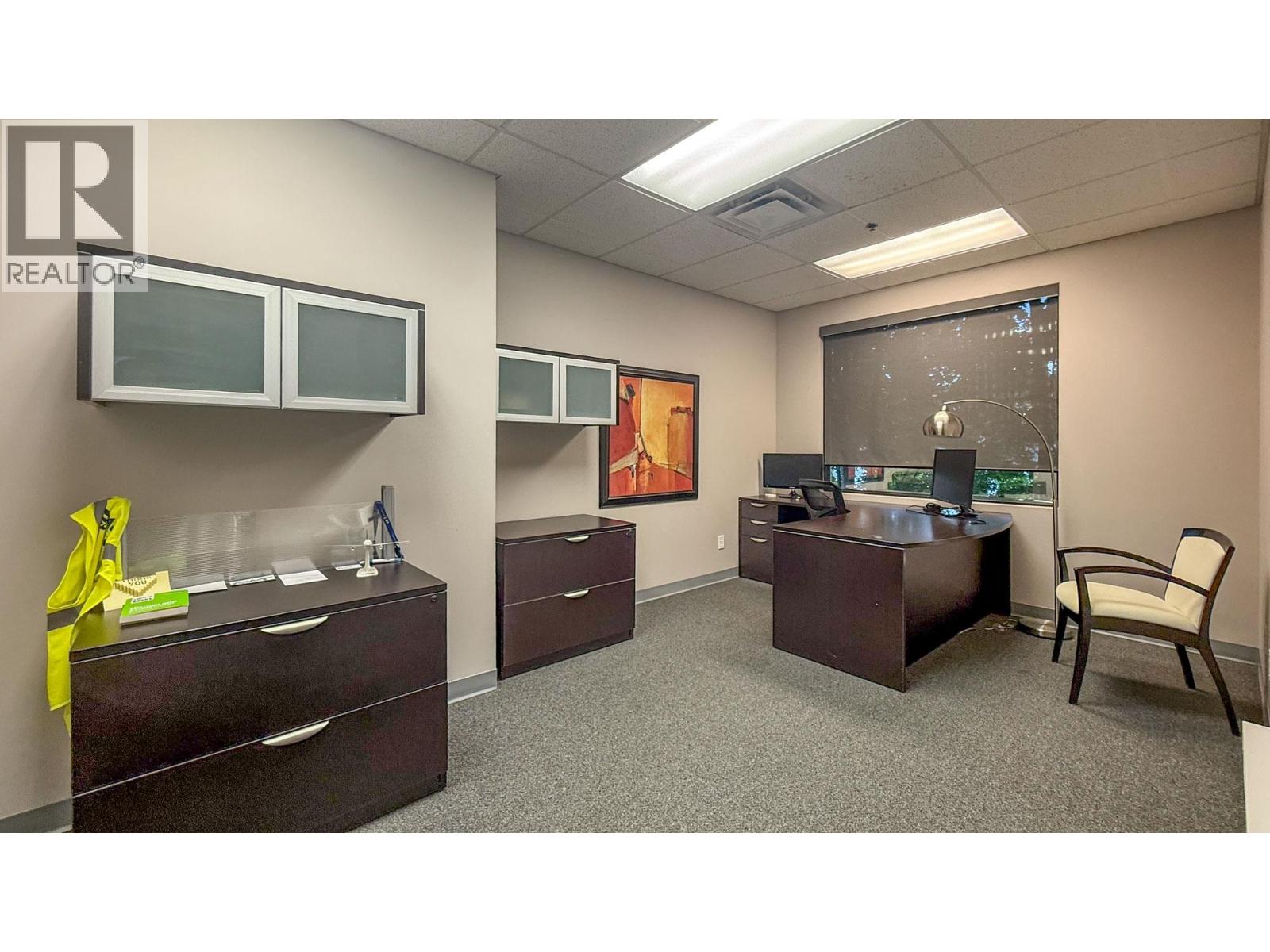 Great opportunity to lease 2nd floor office space in the McCurdy Commercial Area of Kelowna. Unit totals approx. 2,457 SF of well-appointed office space, with 4 individual offices, boardroom, large open work area and a reception area. Dedicated washrooms (one with a shower), lunchroom with a small kitchenette, and large storage area are located on the second-floor mezzanine level just outside the main entrance to the office area. This is a walk-up, second-floor office space as there are no elevators in the building. Large windows throughout allow for abundant natural light. Common, shared building parking and abundant street parking in the area. (id:58842)