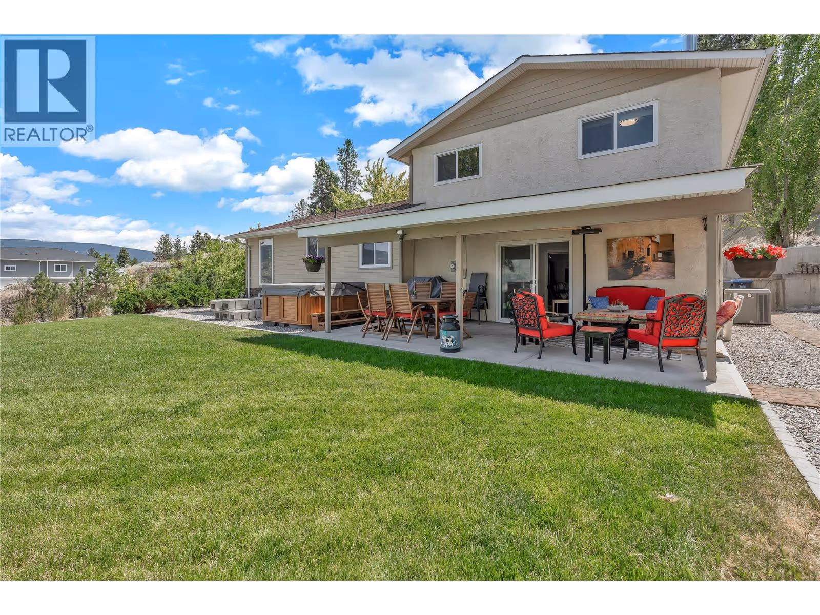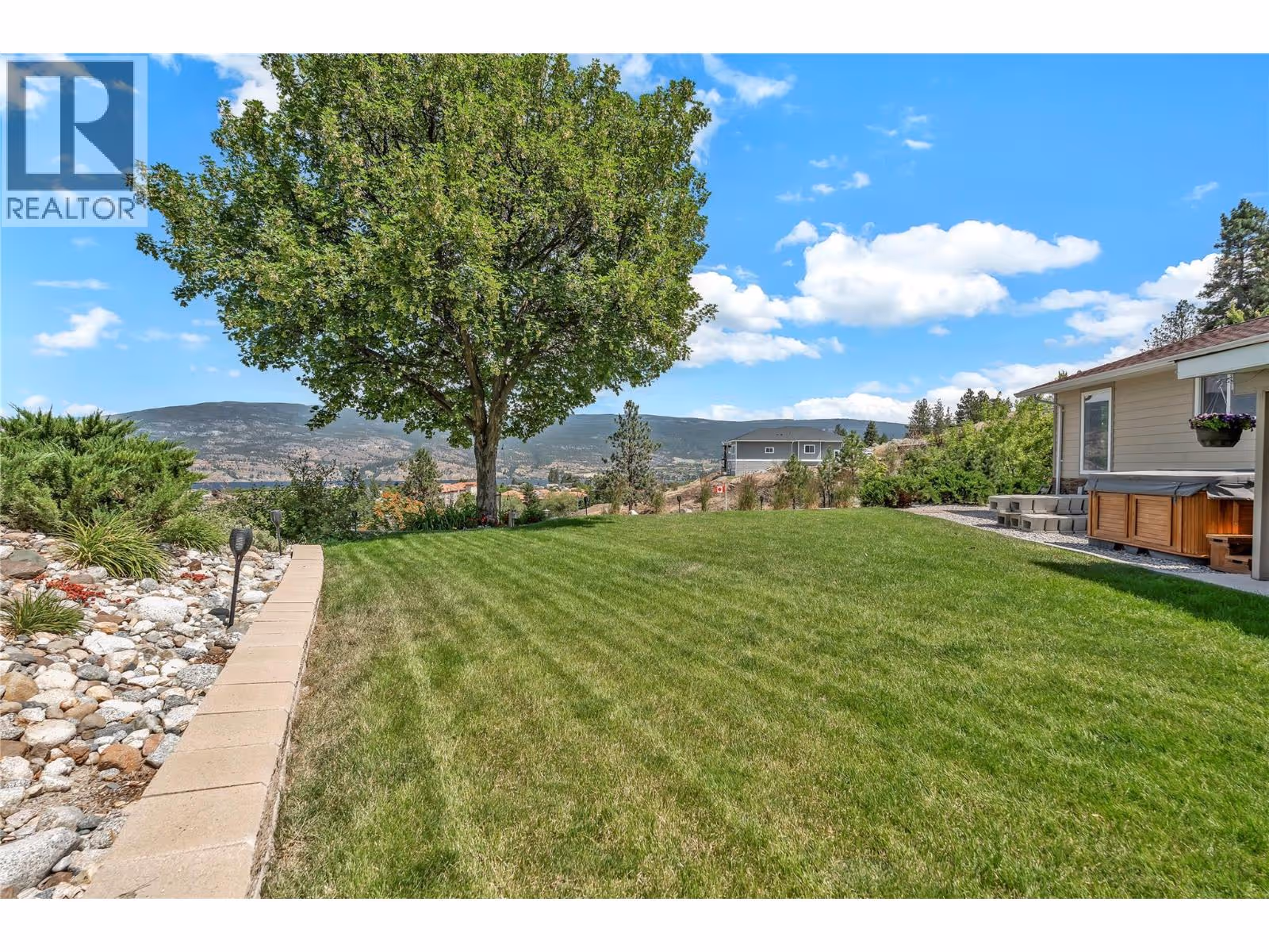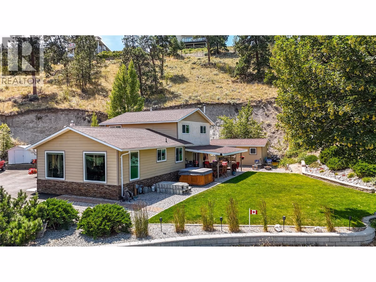Welcome to 8704 Kuroda Place — Your Private Oasis with Stunning Lake Views Experience peace and tranquility at the end of a quiet cul-de-sac in this move-in-ready home, perfectly positioned to capture unobstructed views of Okanagan Lake. Perched above the neighboring homes, this property offers year-round enjoyment of its breathtaking surroundings. The low-maintenance, fully irrigated yard includes a covered patio equipped with a gas BBQ hookup and a relaxing hot tub — ideal for soaking in the panoramic lake views. Designed for both entertaining and everyday living, this spacious home accommodates families of all sizes with a versatile layout. The upper level features two bedrooms and a full bathroom, plus a primary bedroom complete with a private 3-piece ensuite. On the main level, enjoy lake views from the formal dining room, living room, and kitchen, which seamlessly connect to a cozy sunken TV room that leads to the covered patio. You'll also find a fourth bedroom, powder room, and laundry area with convenient access to the backyard. The garage offers ample storage, while a powered flex space in the backyard adds even more functionality — perfect for a workshop, studio, or hobby room. Car enthusiasts will appreciate the abundant parking and workspace options. If you're seeking a quiet and peaceful retreat with stunning lake views, versatile living spaces, and room to grow, 8704 Kuroda Place is calling you home. (id:58842)