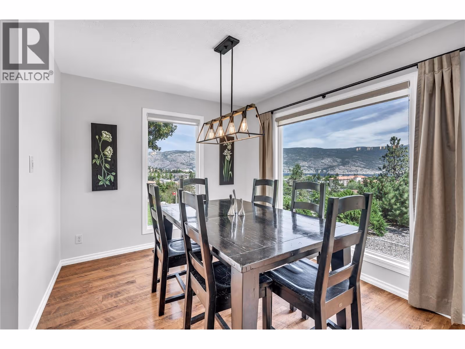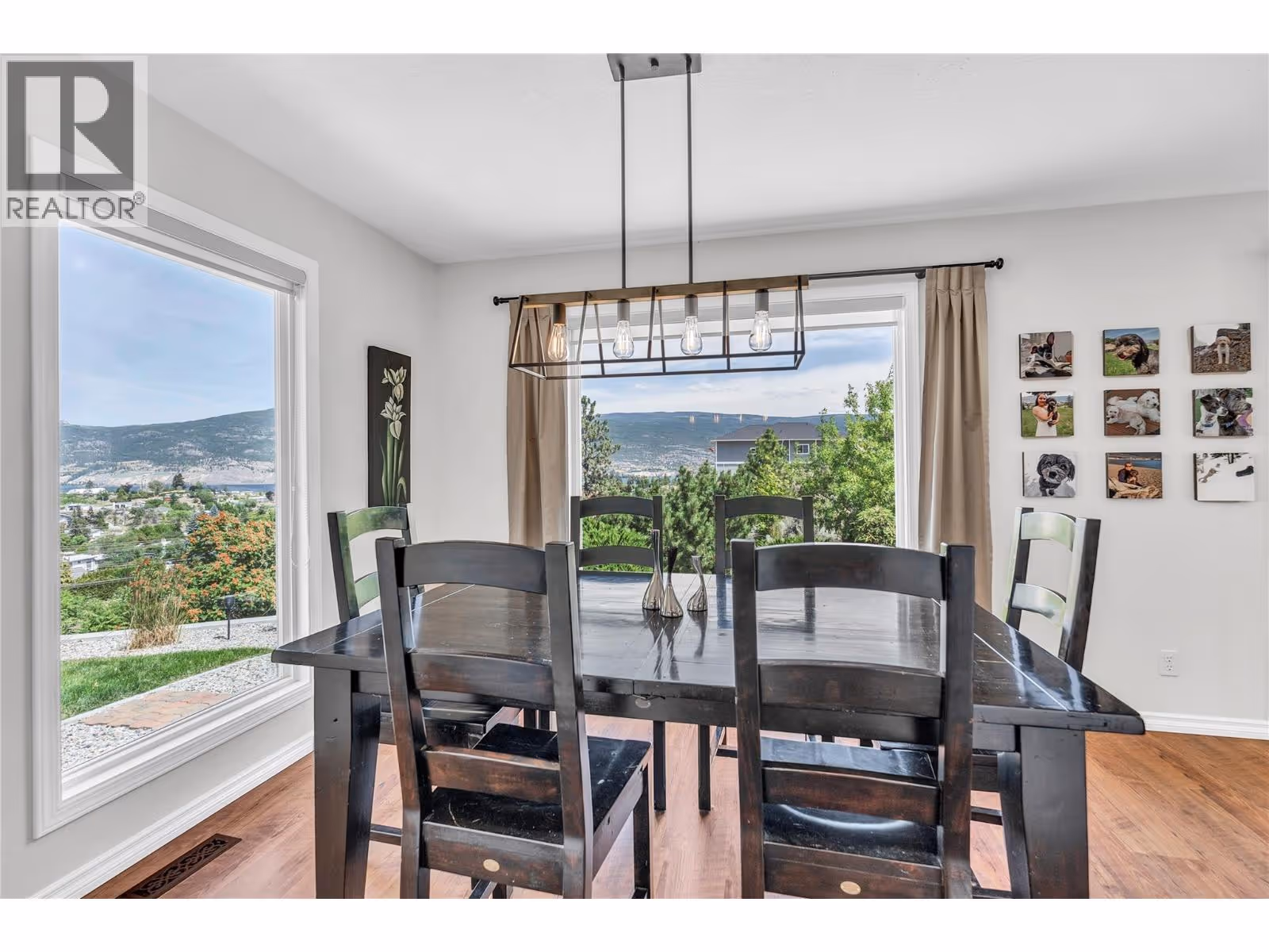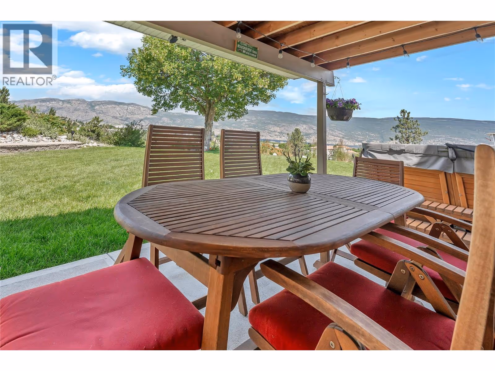 Welcome to 8704 Kuroda Place — Your Private Oasis with Stunning Lake Views Experience peace and tranquility at the end of a quiet cul-de-sac in this move-in-ready home, perfectly positioned to capture unobstructed views of Okanagan Lake. Perched above the neighboring homes, this property offers year-round enjoyment of its breathtaking surroundings. The low-maintenance, fully irrigated yard includes a covered patio equipped with a gas BBQ hookup and a relaxing hot tub — ideal for soaking in the panoramic lake views. Designed for both entertaining and everyday living, this spacious home accommodates families of all sizes with a versatile layout. The upper level features two bedrooms and a full bathroom, plus a primary bedroom complete with a private 3-piece ensuite. On the main level, enjoy lake views from the formal dining room, living room, and kitchen, which seamlessly connect to a cozy sunken TV room that leads to the covered patio. You'll also find a fourth bedroom, powder room, and laundry area with convenient access to the backyard. The garage offers ample storage, while a powered flex space in the backyard adds even more functionality — perfect for a workshop, studio, or hobby room. Car enthusiasts will appreciate the abundant parking and workspace options. If you're seeking a quiet and peaceful retreat with stunning lake views, versatile living spaces, and room to grow, 8704 Kuroda Place is calling you home. (id:58842)