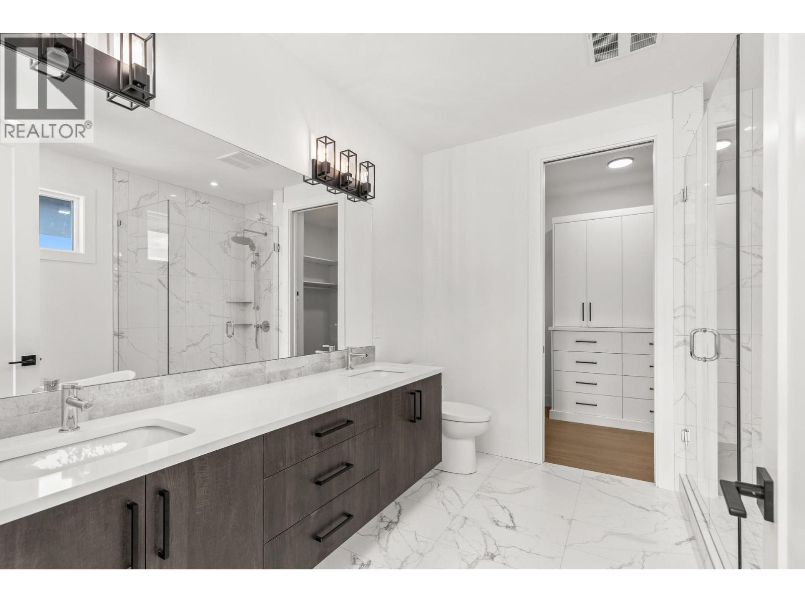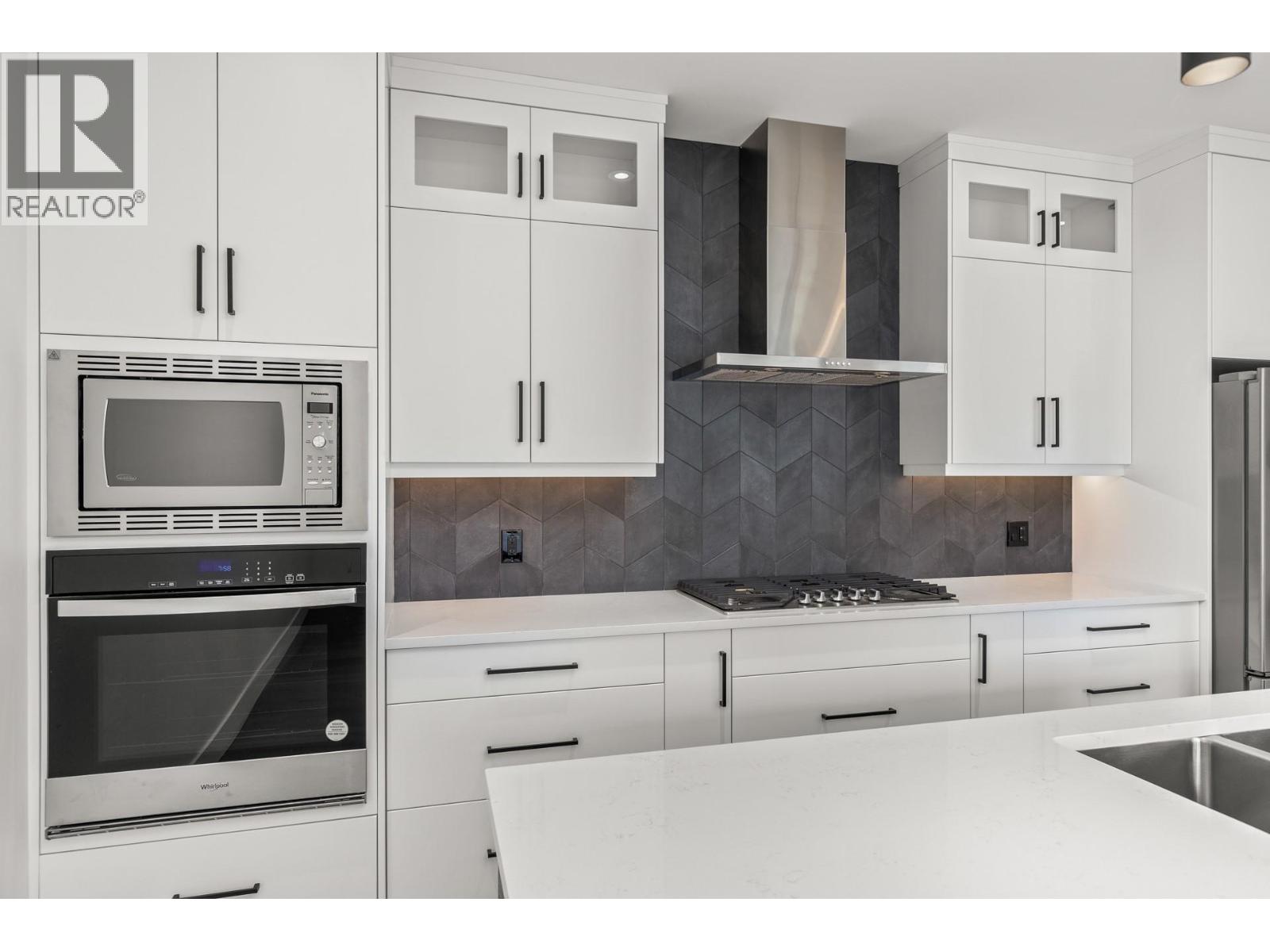 Brand New Walkout Rancher with Legal Suite! Welcome to this stunning new home offering sweeping valley and mountain views. Every detail has been thoughtfully designed — from the custom tile work and chic modern color palette to the smart, open-concept layout. The main floor features a gourmet island kitchen with a gas cooktop, overlooking the Great Room with a unique Hydra fireplace and floor-to-ceiling windows that flood the space with natural light. A spacious laundry room with abundant cabinetry adds everyday convenience. You’ll also find a second bedroom and a stylish powder room on this level, ideal for guests or family. The bright living and dining areas flow seamlessly onto a large covered deck, perfect for entertaining. The elegant primary suite enjoys a gorgeous outlook and features a luxurious ensuite with double sinks, a soaker tub, and an oversized glass and ceramic shower, plus a generous walk-in closet. The lower level includes two additional large bedrooms, a full 5-piece bath, a recreation room, and access to a covered patio. A self-contained legal one-bedroom suite offers flexible options for guests or rental income. Additional highlights include an oversized double garage with an extra-wide driveway, superior insulation and airtight construction, and Energy Step Code 3 compliance (R24 walls and R60 ceilings) for exceptional energy efficiency. Located just 20 minutes to downtown, and 30 minutes to Big White Ski Resort. 10-Year New Home Warranty (id:58842)