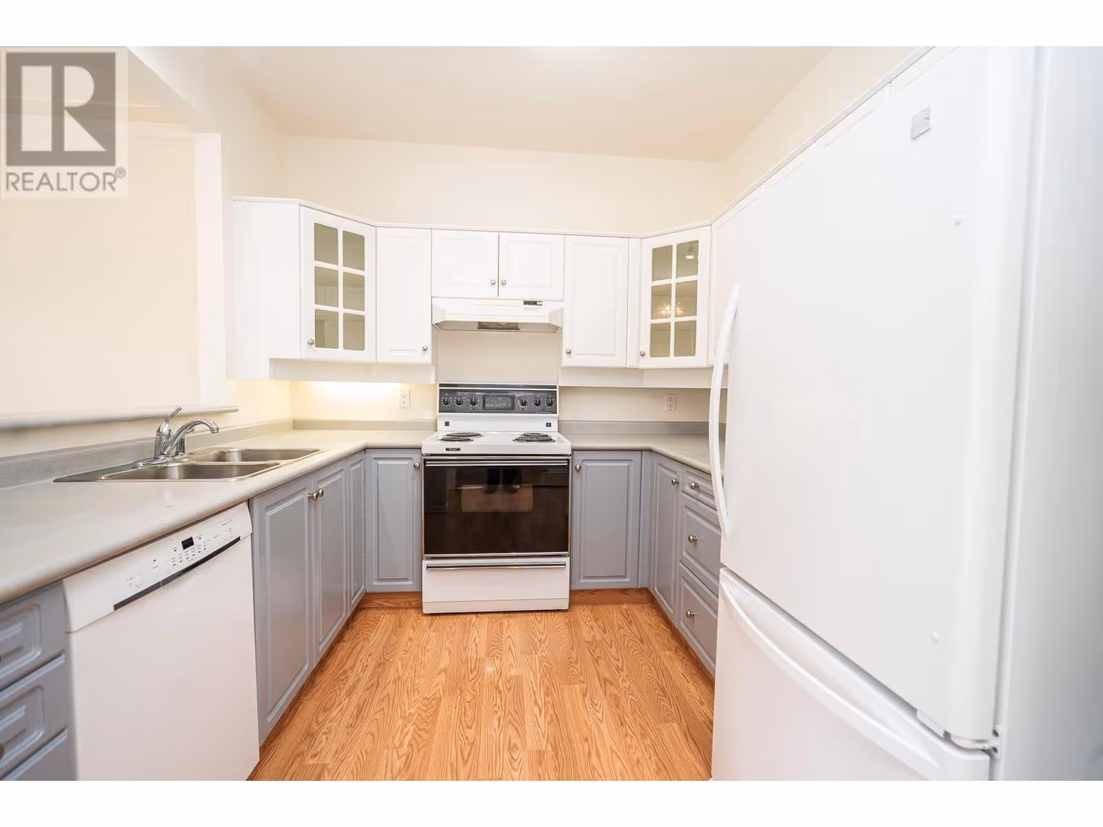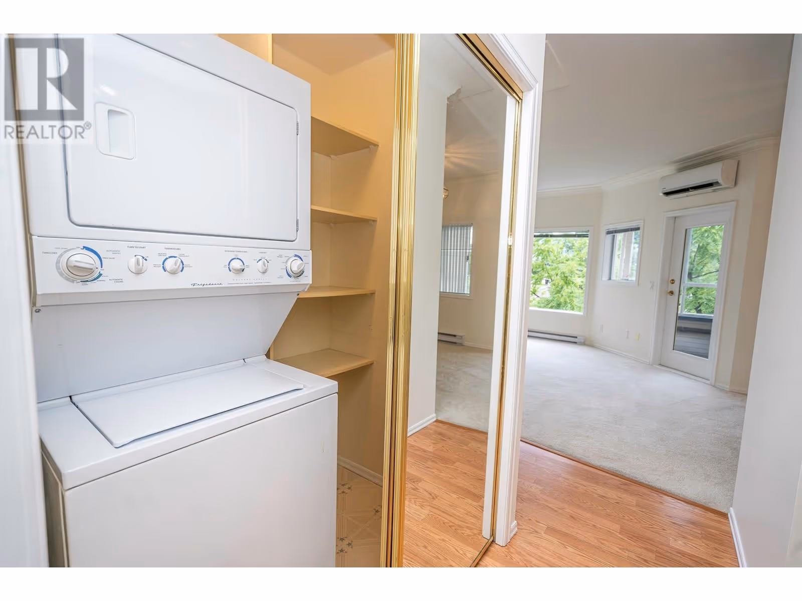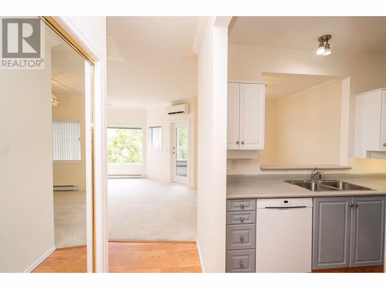Welcome to Hawthorn Park, a desirable 55+ community perfectly located near Mission Creek Shopping Centre! This bright and spacious south-facing corner unit offers 2 bedrooms, 2 bathrooms, and over 1,100 sqft of thoughtfully updated living space featuring crown moulding and laminate flooring. Enjoy mountain views from the open-concept living area and the comfort of a sunroom that backs onto the peaceful creek - perfect for year-round enjoyment. The updated U-shaped kitchen offers modern finishes and plenty of storage. The primary suite features a walk-through closet and a beautifully renovated ensuite with new flooring, a walk-in tile shower, and updated fixtures. The second bedroom is spacious and has mountain views as well! Additional highlights include in-unit laundry, a mini split heat pump to keep you cool all summer, fresh paint, and a storage locker conveniently located just across the hall. One secured underground parking stall and ample visitor parking complete this fantastic offering! (id:58842)