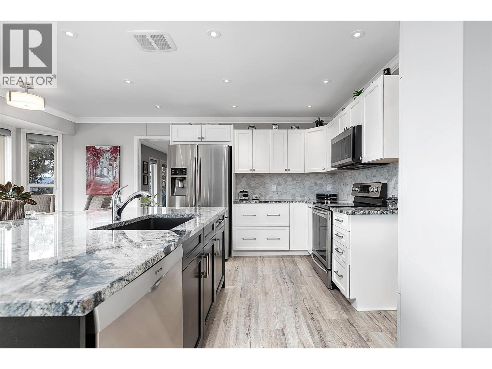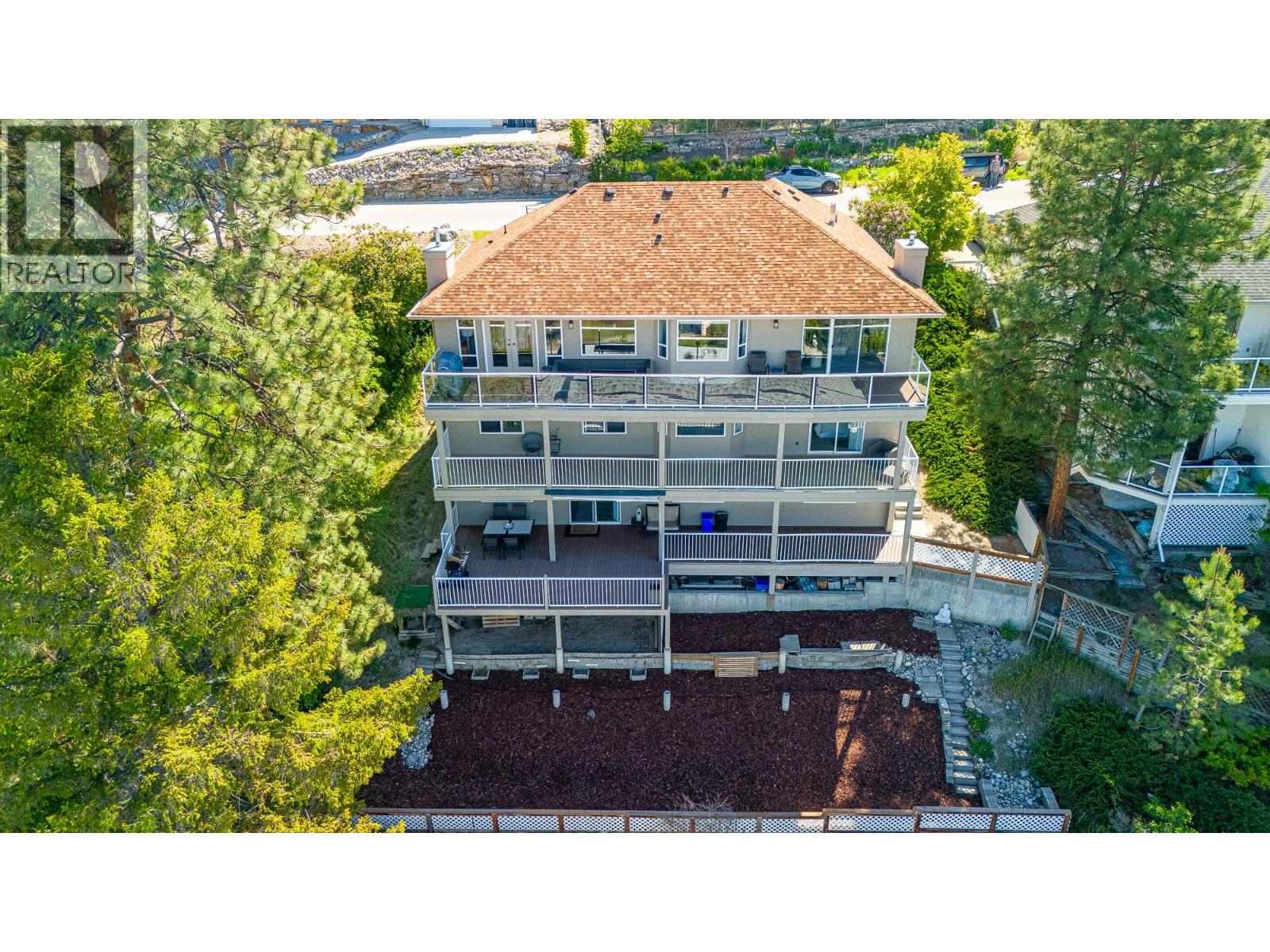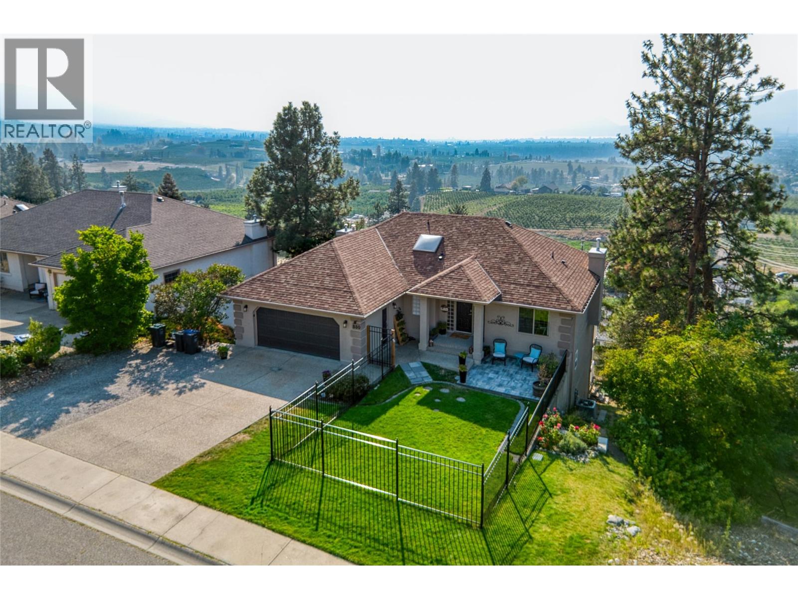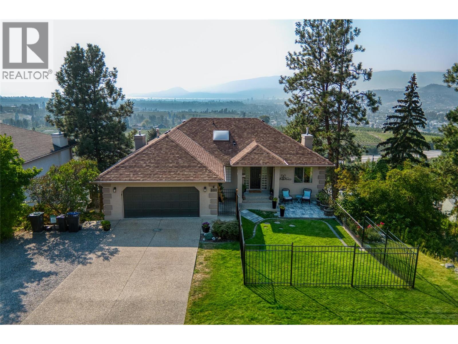 Welcome to 880 Ackerman Ct, where thoughtful design and sweeping Okanagan Lake views create the ultimate retreat. This 6bed 4bath home showcases upgrades inside and out, with unobstructed views from every window on all three levels. Set in a quiet court location with a level driveway, the property blends convenience with tranquility. The reimagined kitchen features custom Thomasville cabinetry, granite counters, a Blanco Silgranit sink, and high end SS appliances. Luxury vinyl plank flooring flows throughout, accented by crown molding, designer lighting, and custom window treatments. The primary suite includes a spa-like ensuite with a freestanding tub, dual vanities, and a glass enclosed shower. Other upgrades include a high-efficiency HVAC system, water heater, and Moen fixtures. Lower level offers a 2bed suite with kitchen, laundry, and private entry, ideal for family, guests, or income. A versatile flex space with family room, and storage adds more possibilities. Outside, enjoy a new irrigation system, retaining walls, fresh landscaping with a rose garden, and large patio for entertaining. The fenced front yard offers a patio for morning sun and afternoon shade, while the western facing backyard captures sunsets. Extra parking and garage storage make this property as functional as it is beautiful. Located in sought-after BM, just mins from BM Golf Club, schools, parks and trails, with quick access to YLW. Experience elevated Okanagan living—your next chapter starts here! (id:58842)