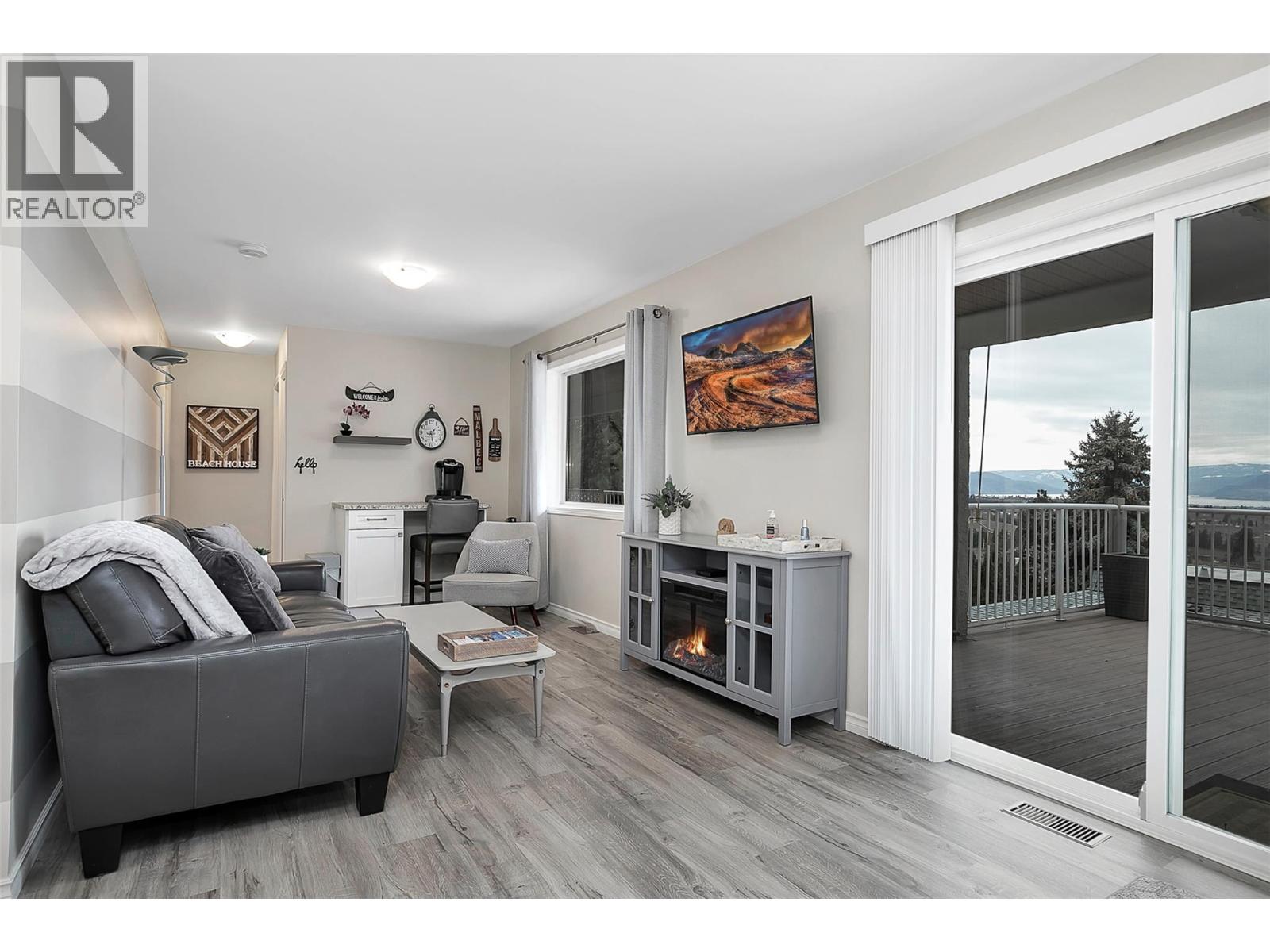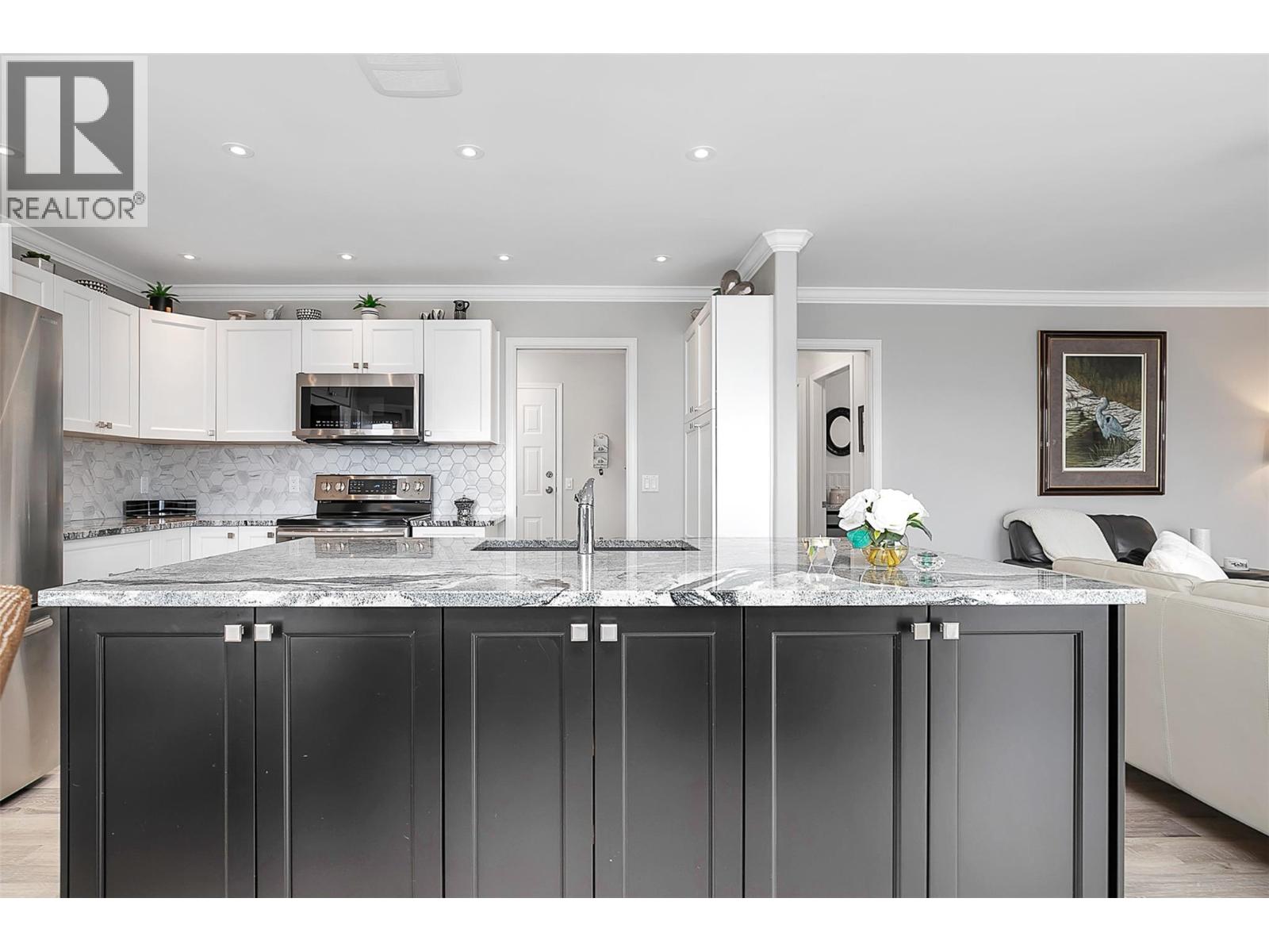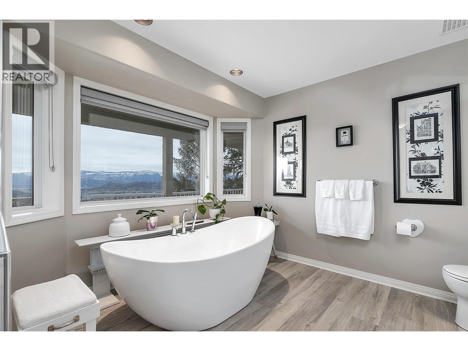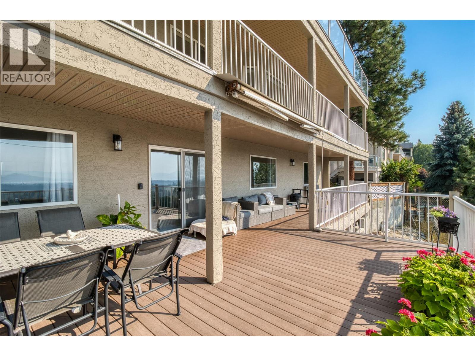 Welcome to 880 Ackerman Ct, where thoughtful design and sweeping Okanagan Lake views create the ultimate retreat. This 6bed 4bath home showcases upgrades inside and out, with unobstructed views from every window on all three levels. Set in a quiet court location with a level driveway, the property blends convenience with tranquility. The reimagined kitchen features custom Thomasville cabinetry, granite counters, a Blanco Silgranit sink, and high end SS appliances. Luxury vinyl plank flooring flows throughout, accented by crown molding, designer lighting, and custom window treatments. The primary suite includes a spa-like ensuite with a freestanding tub, dual vanities, and a glass enclosed shower. Other upgrades include a high-efficiency HVAC system, water heater, and Moen fixtures. Lower level offers a 2bed suite with kitchen, laundry, and private entry, ideal for family, guests, or income. A versatile flex space with family room, and storage adds more possibilities. Outside, enjoy a new irrigation system, retaining walls, fresh landscaping with a rose garden, and large patio for entertaining. The fenced front yard offers a patio for morning sun and afternoon shade, while the western facing backyard captures sunsets. Extra parking and garage storage make this property as functional as it is beautiful. Located in sought-after BM, just mins from BM Golf Club, schools, parks and trails, with quick access to YLW. Experience elevated Okanagan living—your next chapter starts here! (id:58842)