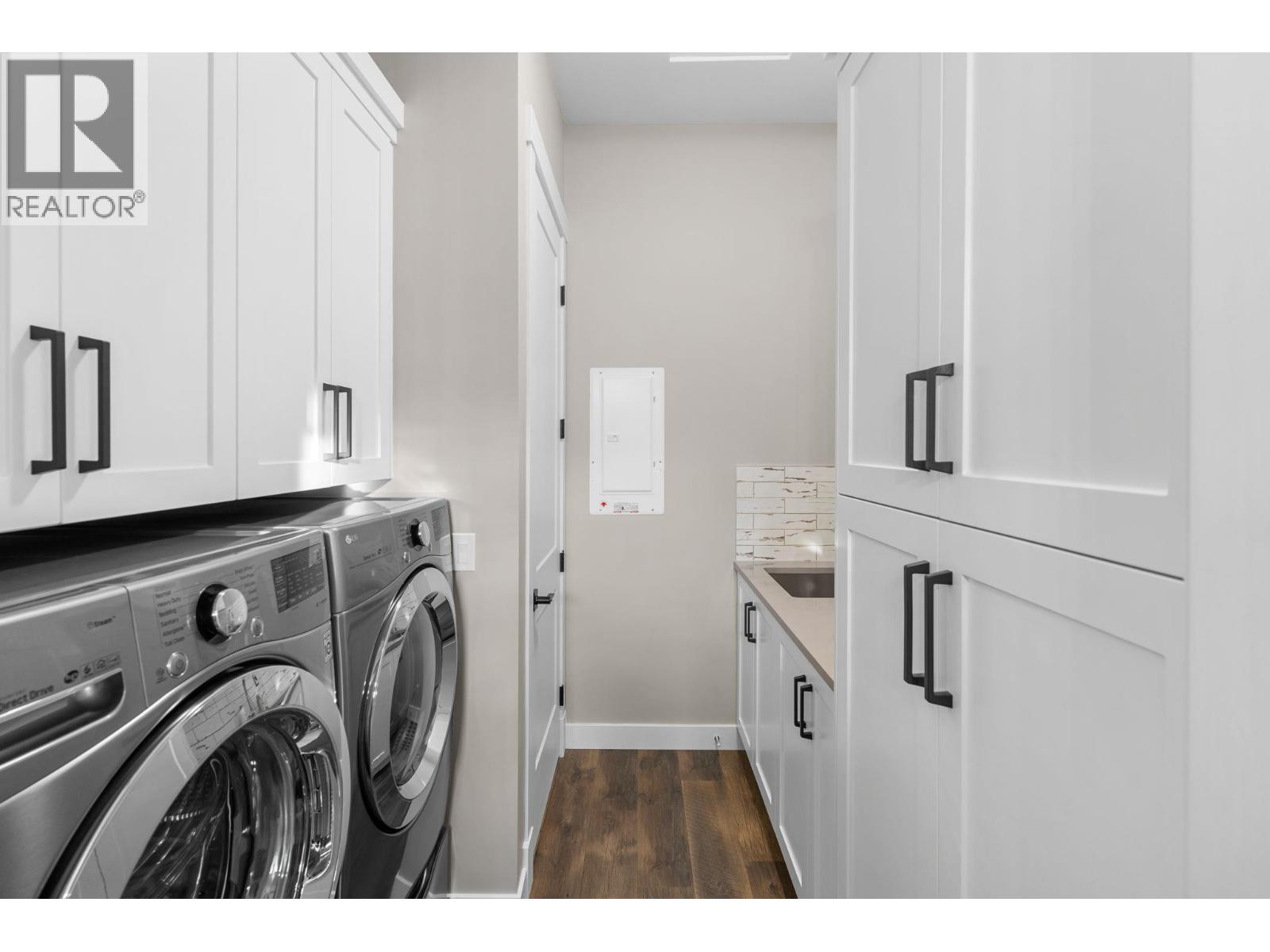 Welcome to this exquisite 2.7-acre estate nestled above Okanagan Lake in one of Vernon’s most sought-after communities. Set behind a solar-powered gate, this private, multi-family–zoned lot blends luxury, comfort, lifestyle, and versatility. Inside, the bright and airy home offers vaulted ceilings, a soaring fireplace, and floor-to-ceiling windows framing 270 degree lake views. The main floor features a gourmet kitchen with Miele appliances, a built-in espresso station, plus a prep kitchen, all flowing seamlessly to the living and dining areas. Step onto the 800+ square foot covered terrace, boasting topless glass railings and power shades for seamless indoor-outdoor living. The main level includes a powder room, office, and a primary suite with a double shower, soaker tub, and laundry. Downstairs, the daylight walkout basement hosts two more lakeview bedrooms with ensuites, a theater with 4K Dolby Atmos, a wet bar, wine cellar, and a games room. All enjoyed with in-floor heating throughout this level. Step outside to the private oasis with a saltwater pool (deck jets, auto cover, LED lighting), Michael Phelps spa, outdoor kitchen, TV, shower, and bathroom. This low maintenance estate with city utilities offers a three bay heated garage (polyaspartic floors), rough-ins for solar, EV charging, and an elevator. Room for a second residence, carriage house, shop, and/or pickleball court. Owners enjoy exclusive access to a private dock, beach, and sports courts—Adventure Bay living at its finest (id:58842)