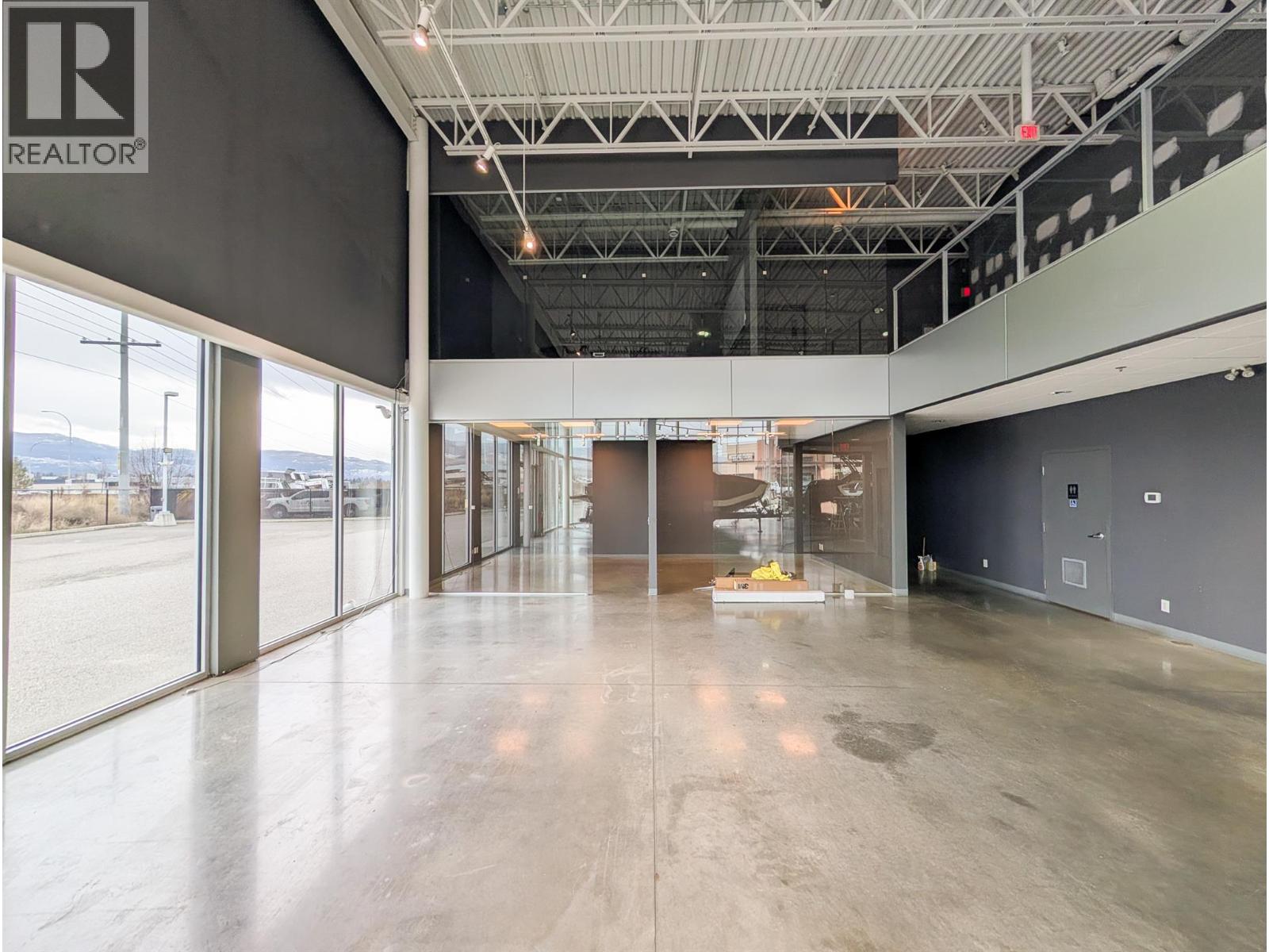 Rare opportunity to lease 14,468 sq. ft. of AAA showroom, shop, and office space, including a bonus 18,000+ sq. ft. Secured yard area. The property benefits from excellent exposure to Highway 97 and convenient access off McCurdy Road. The showroom features expansive glazing, a 16’ overhead door, and a large open layout adjacent to a reception area, three private offices, two washrooms, and a storage area. The mezzanine includes one private office, one boardroom, one washroom, an open work area, a staff room, and storage. The shop space on the west side of the building features three 14’ overhead doors and 22’ clear ceiling height. The additional shop space on the east side of the building includes three 10’ overhead doors with direct access to the secured yard. The property is available immediately. Estimated additional rent for 2026 is $5.06/sf. (id:58842)