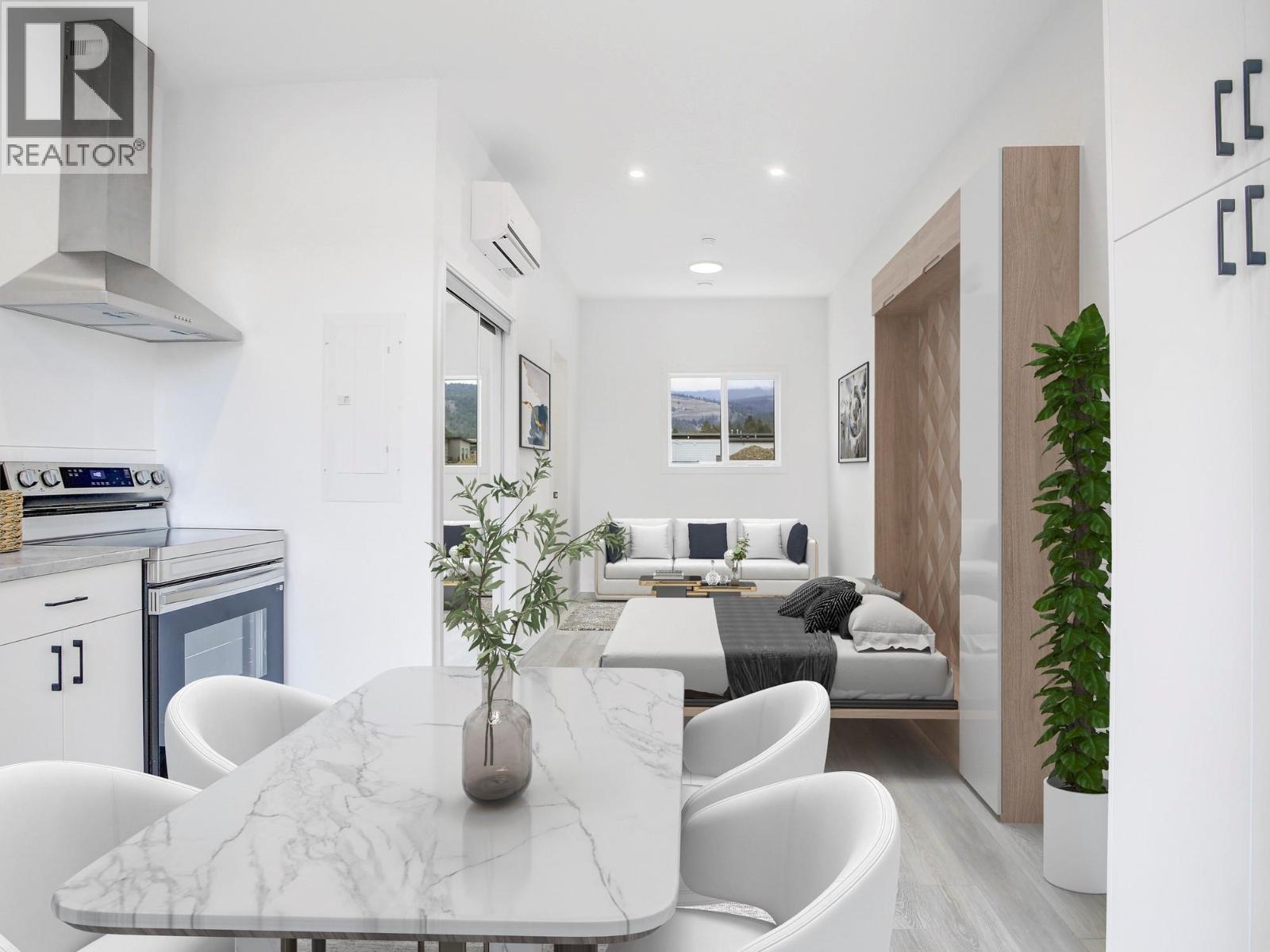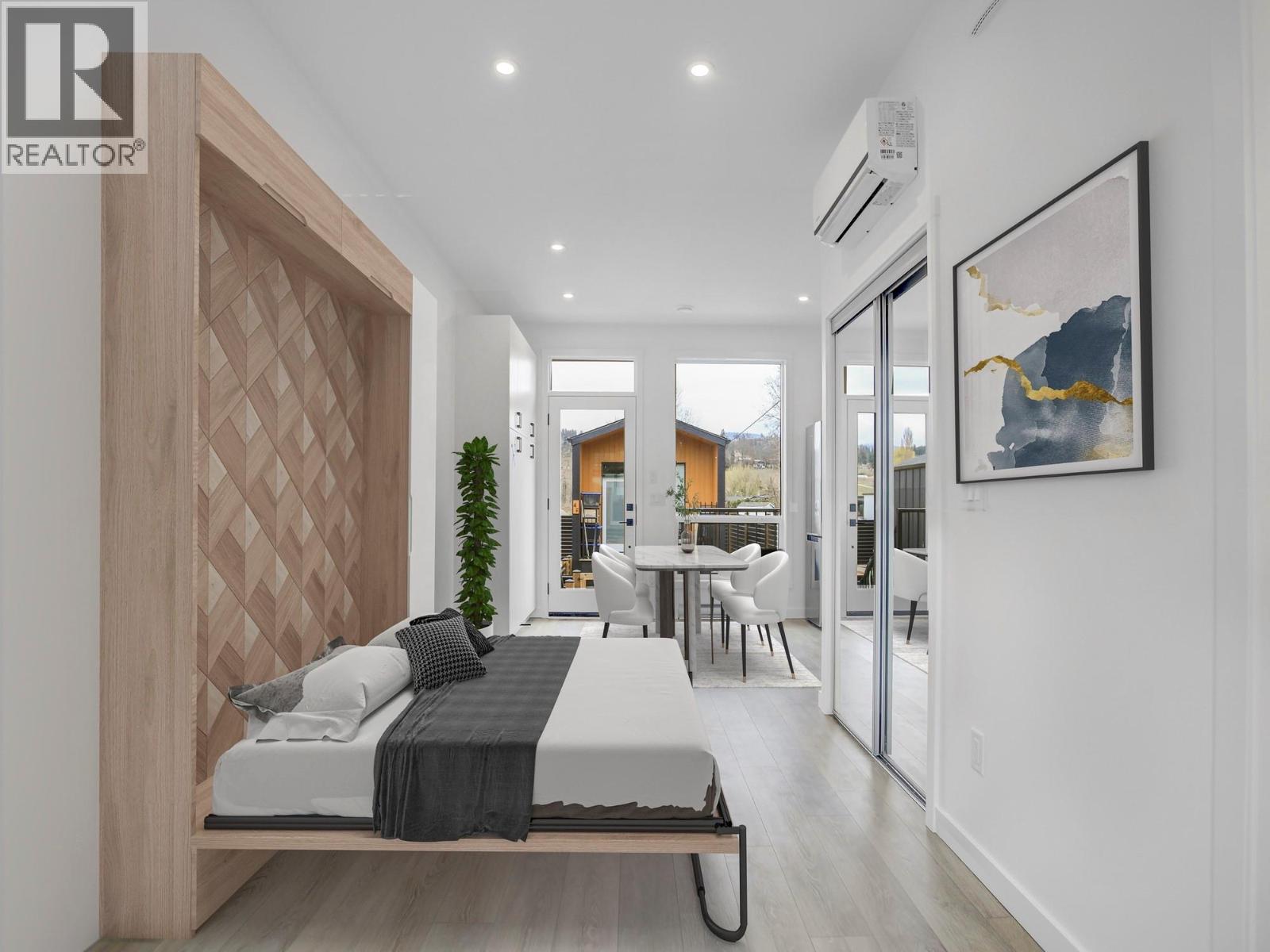 The Dragonfly is ideal for singles, couples, or students seeking functional, modern living in a compact space. With 350 square feet of thoughtfully optimized design, this home maximizes livability without sacrificing comfort. Clean lines, multi-use furniture options, and a seamless flow create a sense of spaciousness—perfect for those who value simplicity and efficiency. Located within a thoughtfully planned community, Dragonfly residents enjoy shared green spaces and a low-maintenance lifestyle. Features: Smart Space: 350 sq. ft. of highly efficient, open-concept living. Optional Built-in Murphy Bed: Instantly transforms your living area. Modern Kitchen: Stainless steel appliances and sleek cabinetry. Private Outdoor Space: Front patio with privacy wall. Designated Parking: One paved stall included. Community Perks: Landscaped pathways, communal green spaces, 2 racquetball courts, and a welcoming neighborhood atmosphere. Low Monthly Fee:$275/month maintenance & land use fee – includes water, septic, garbage, recycling, and common area upkeep. Optional Add-Ons: Ask about available upgrades and furniture packages. SHORT-TERM RENTALS PERMITTED. Close to the Okanagan Rail Trail, shopping, parks, and beaches— just minutes from UBCO and the Kelowna Airport. Book your appointment today! (id:58842)