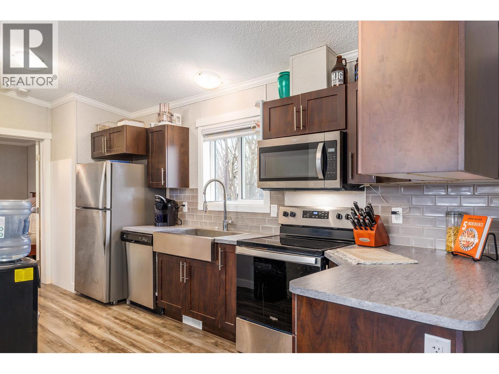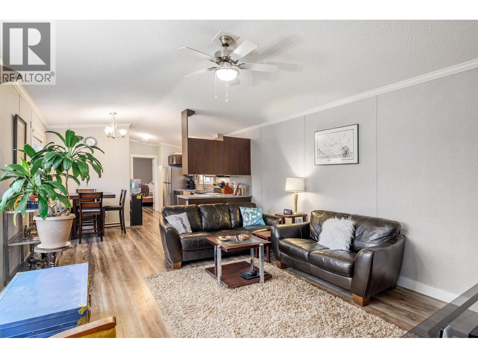 Stylish, modern living at Duck Lake Estates! Built in 2021, this beautiful 905 sq. ft. manufactured home offers 2 bedrooms and 2 bathrooms in a bright, open-concept layout. Cathedral ceilings enhance the spacious feel, while the thoughtfully designed floor plan places the bedrooms at opposite ends for optimal privacy. The stylish kitchen is the heart of the home, equipped with stainless steel appliances, an over-sized farm house sink, and ample work space. The primary bedroom includes a walk-in closet and a private ensuite with 5-ft walk-in shower. A convenient laundry/mud room provides exterior access in addition to the main front entry. Situated on a generous lot looking out over green space, this property includes a 7’x7’ shed and ample space to potentially add a carport or garage. Conveniently located just steps to the Okanagan Rail Trail - and minutes from the airport, UBCO, shopping, restaurants, and lakes. Two pets are permitted (no size restrictions). A perfect blend of comfort, style, and location, this home is move-in ready and waiting to welcome its next owners—book your private showing today. (id:58842)