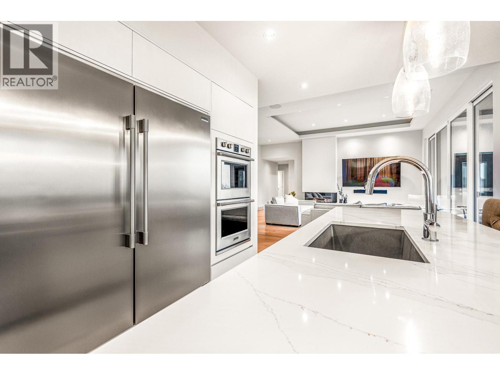A Rare Blend of Luxury, Lifestyle & Versatility - Set on one of Black Mountain’s most desirable streets, this stunning 6-bed, 4-bath home backs directly onto the golf course & offers breathtaking mountain & valley views. Designed with both elegance & function in mind, the main floor impresses with soaring 9’ & 11’ ceilings, wide-plank oak floors, & a striking 3-sided fireplace that anchors the open living space. Tall sliding glass doors extend the living area to a covered deck, seamlessly blending indoor & outdoor living. The chef’s kitchen is a true showpiece, featuring quartz countertops, premium appliances, a walk-in pantry, & a generous island perfect for entertaining. The private primary suite is a retreat of its own with an oak feature wall, floating nightstands, and a spa-inspired ensuite with heated floors, dual vanities, oversized shower, & a makeup station. Two additional bedrooms, a full bath & laundry complete the main floor. The lower level provides flexible living with an additional bedroom & ensuite for the main home plus a fully self-contained, legal 2-bedroom suite with its own entry, kitchen, utilities, & patio. Ideal for multigenerational living or rental income. With an oversized garage, extra parking, multiple patios, and beautifully landscaped grounds, this property offers refined living with unmatched versatility. Move-in ready, filled with natural light, and designed for today’s lifestyle, this home is one you don’t want to miss. Currently no tenant. (id:58842)
